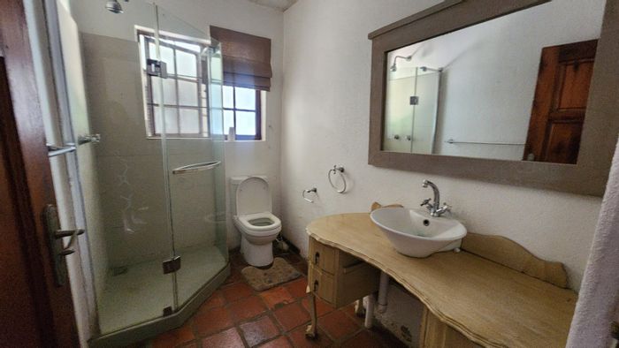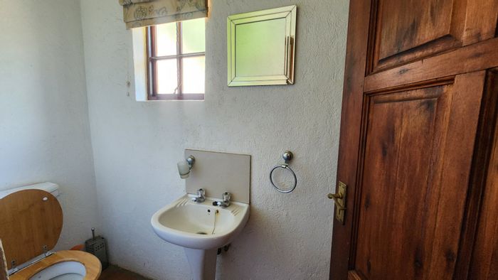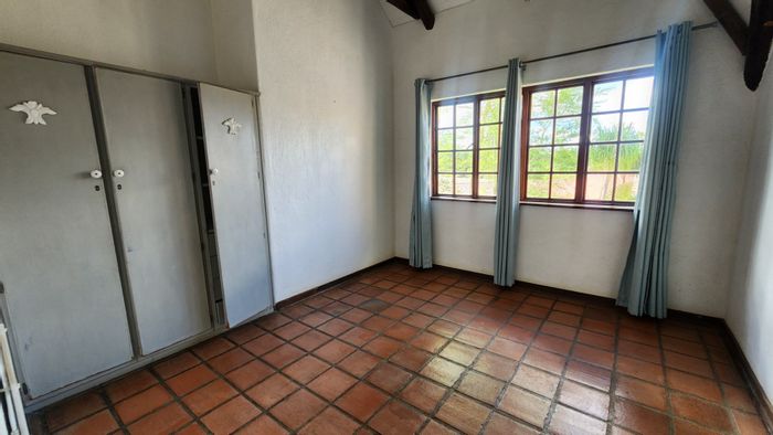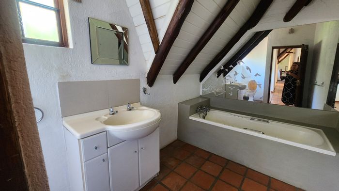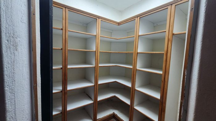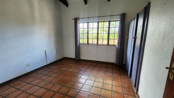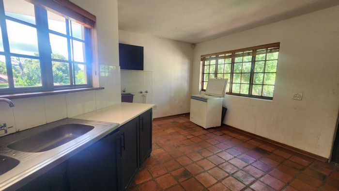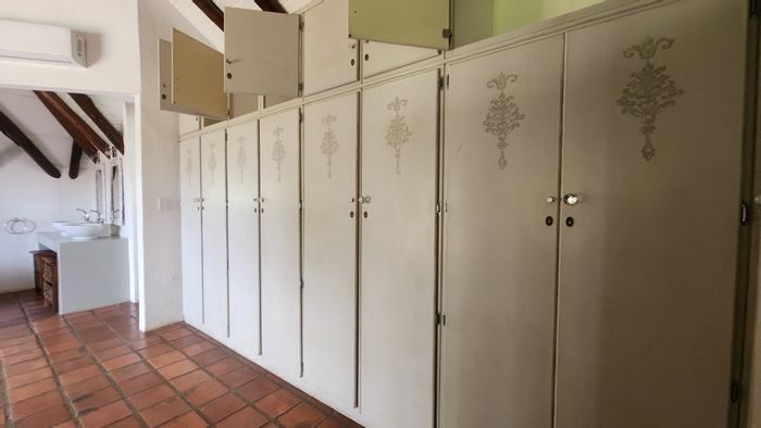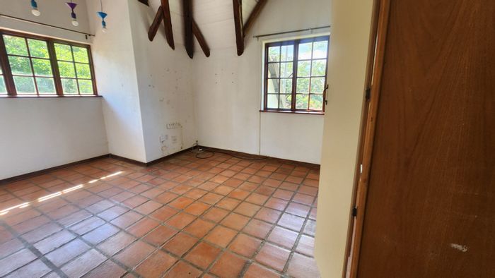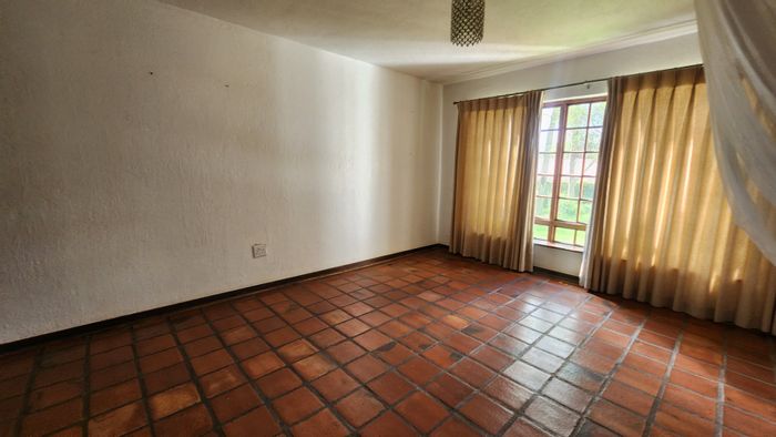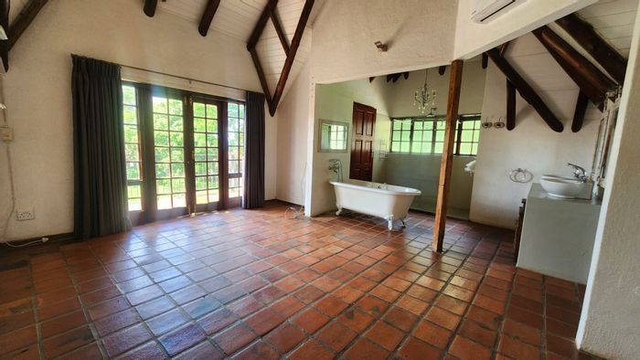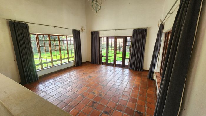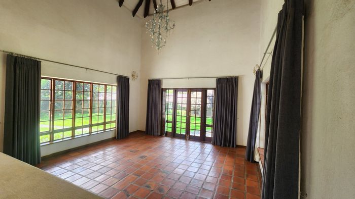 5 bedrooms, 4 bathrooms, domestic room, 3 garages, carport, kitchen with gas stoves, pool, and large gardens.