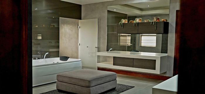 Entertainer's dream in a spacious suburban setting with private pool, jacuzzi and boma; ultra-modern kitchen with scullery. Five bedrooms (three en-suite), four bathrooms across expansive living zones.
