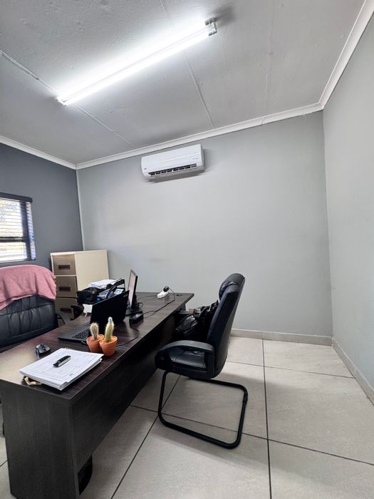 Operate sustainably in a high-visibility, main-road location near schools and Saveways Shopping Centre — eco-friendly, off-grid office with outdoor braai/bonfire area, multiple AC offices and three bathrooms.