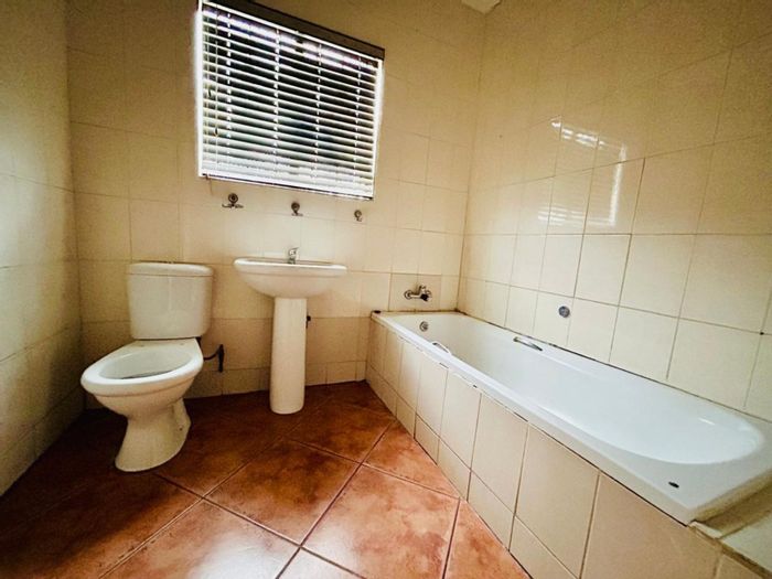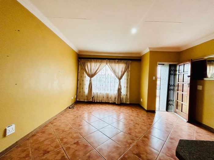 3-bedroom, 2-bathroom home with single garage in a secure complex, featuring a large yard and open parking.