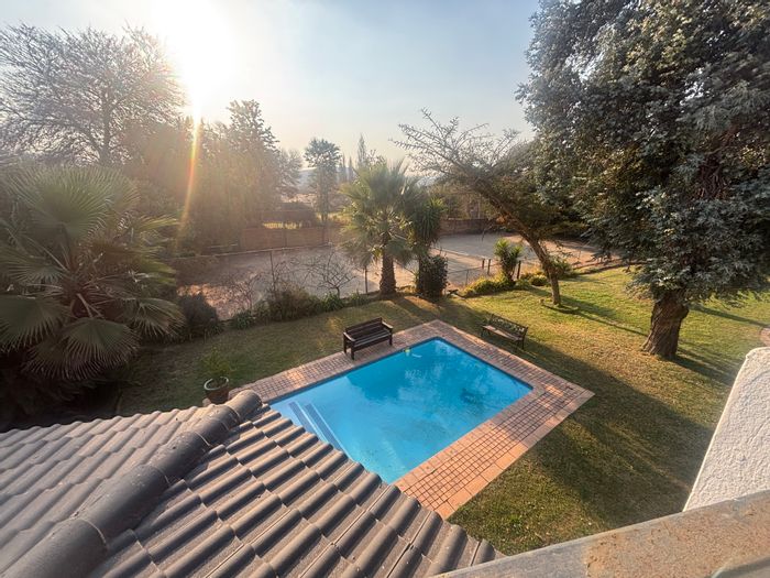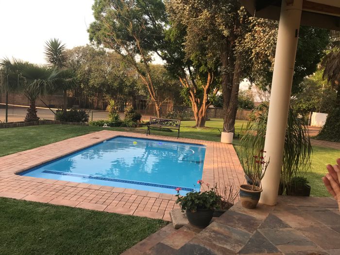 Entertainer's country retreat in Seekoeiwater with pool, tennis court and covered patio featuring a gas braai and pizza oven; main house has four bedrooms and three bathrooms.