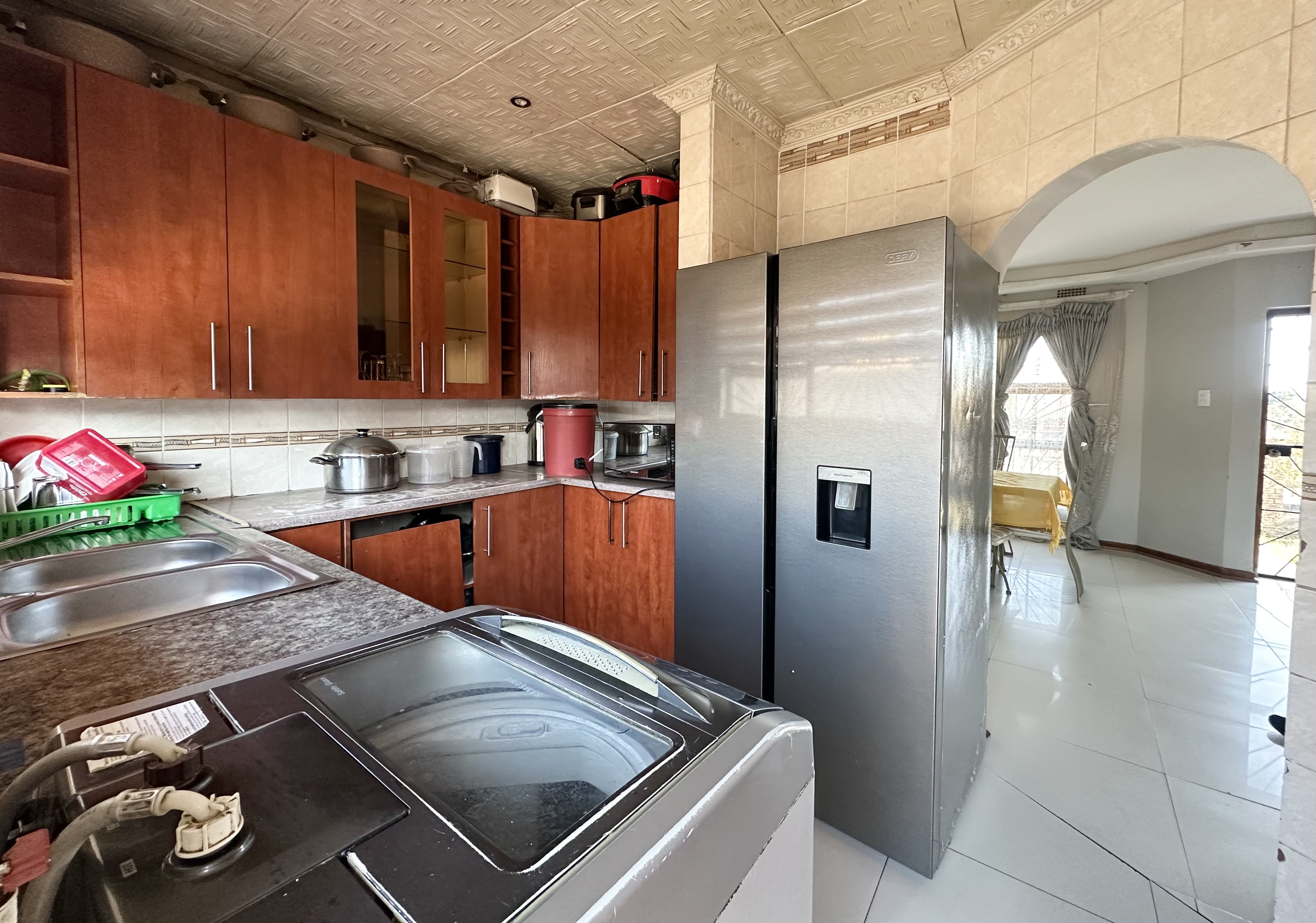 The property is tiled throughout, and offers security measures on all windows and doors. At the front of the property is a pedestrian gate and a vehicular gate, with provision for one onsite parking. The back of the property offers an additional vehicular gate, providing space for 6 cars.
