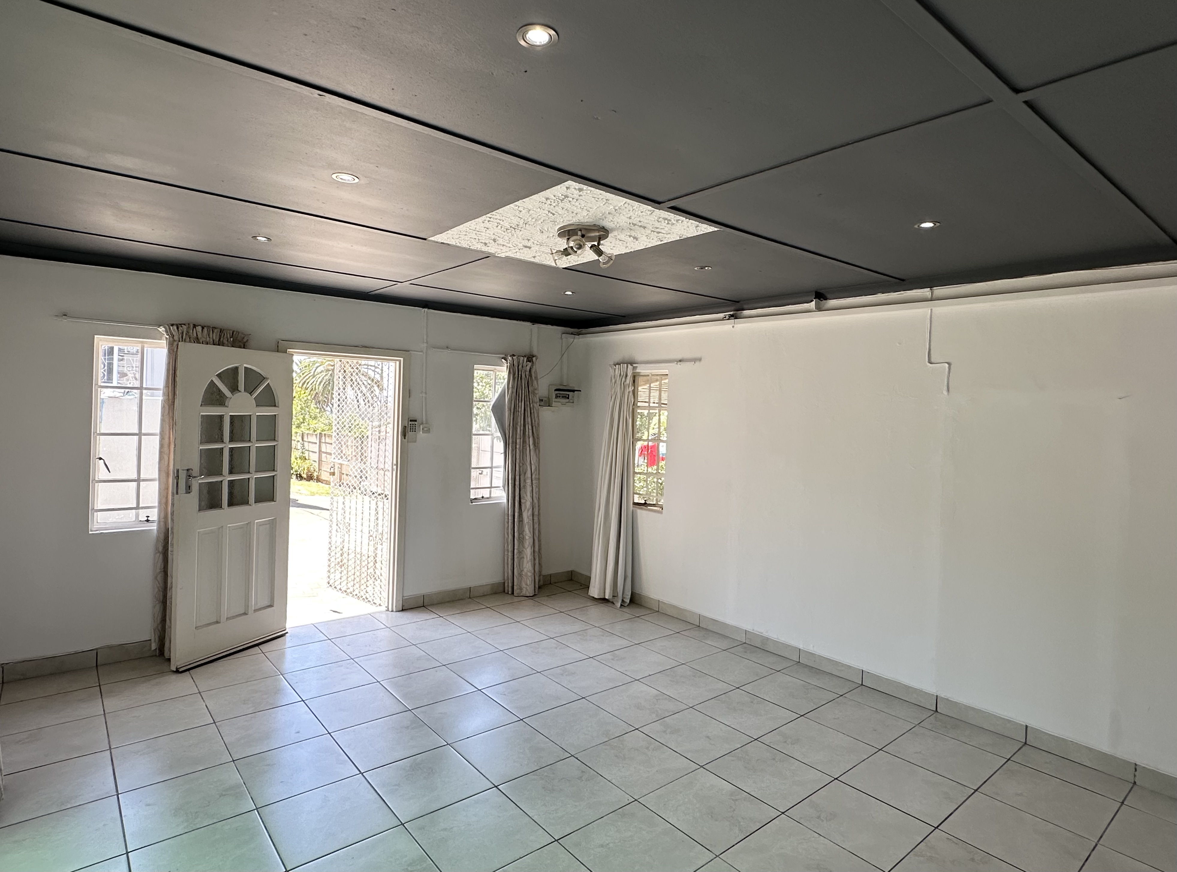Unit 1: lounge/living space, bedroom (with built in cupboards) and one bathroom.