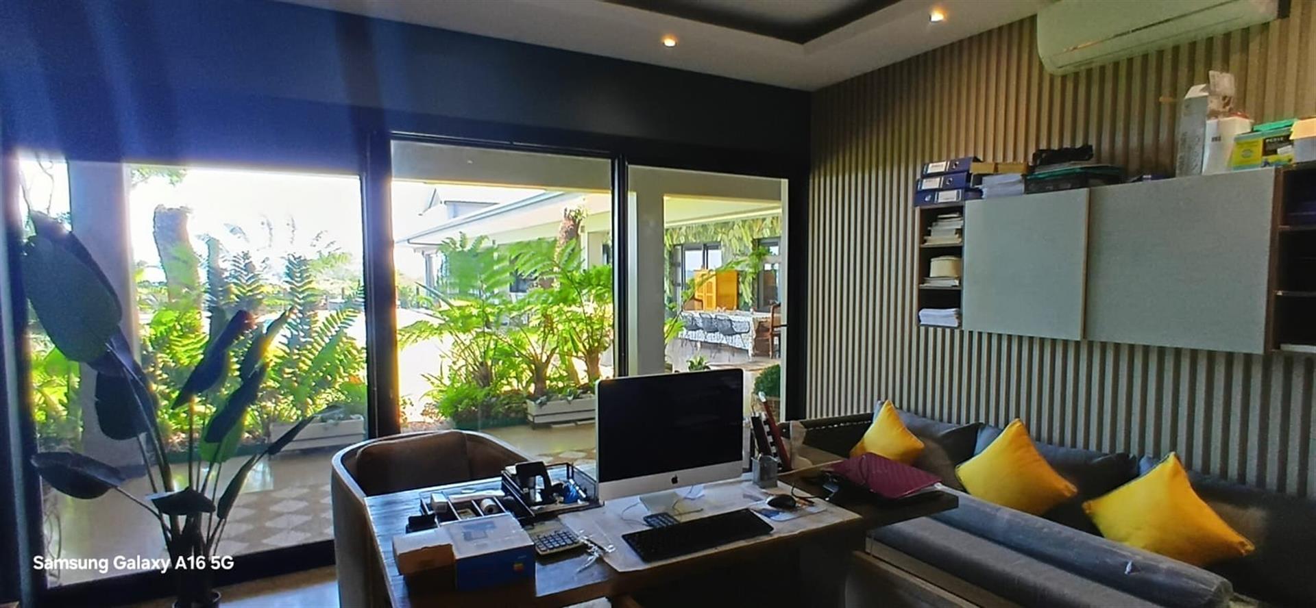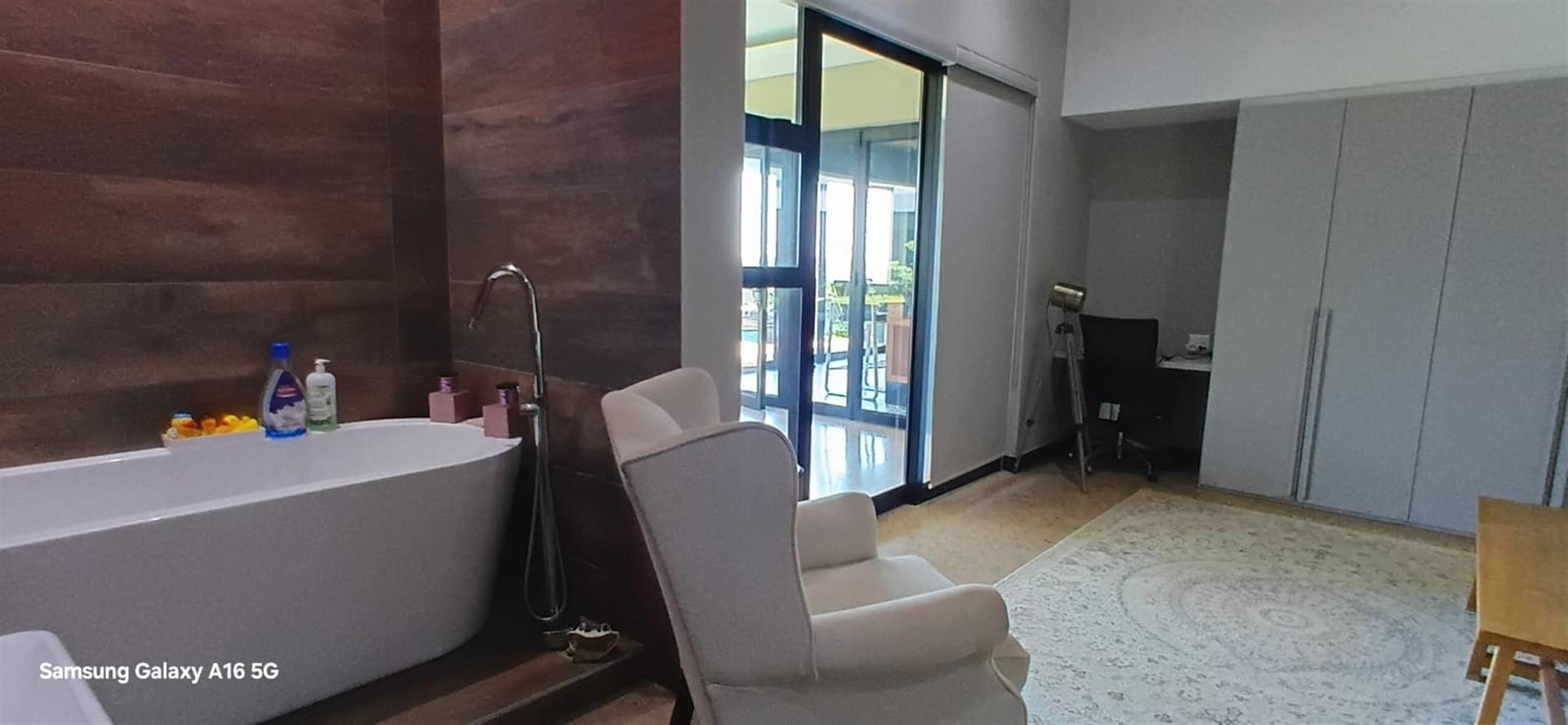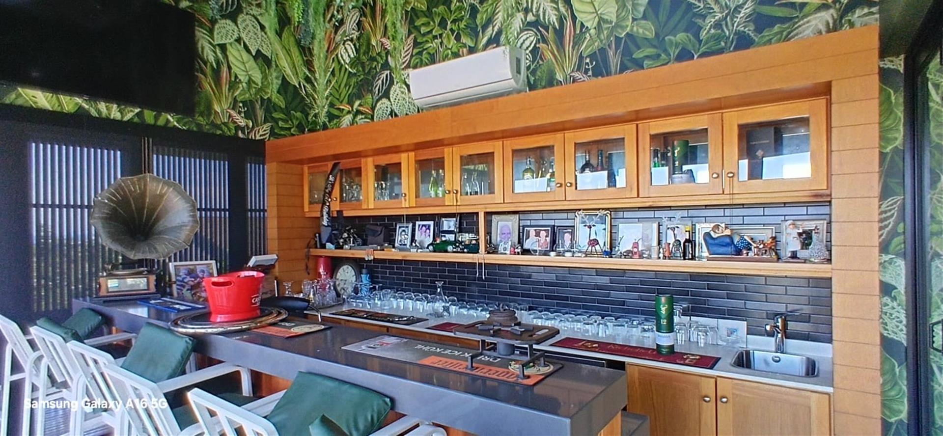 Entertainment options abound with a dedicated theater room, a bar area, perfect for hosting friends and family. The property also includes a flatlet, ideal for guests or as a private office space. Additional conveniences include an office, a study, and a domestic room with a separate bathroom, ensuring ample space for all your needs.