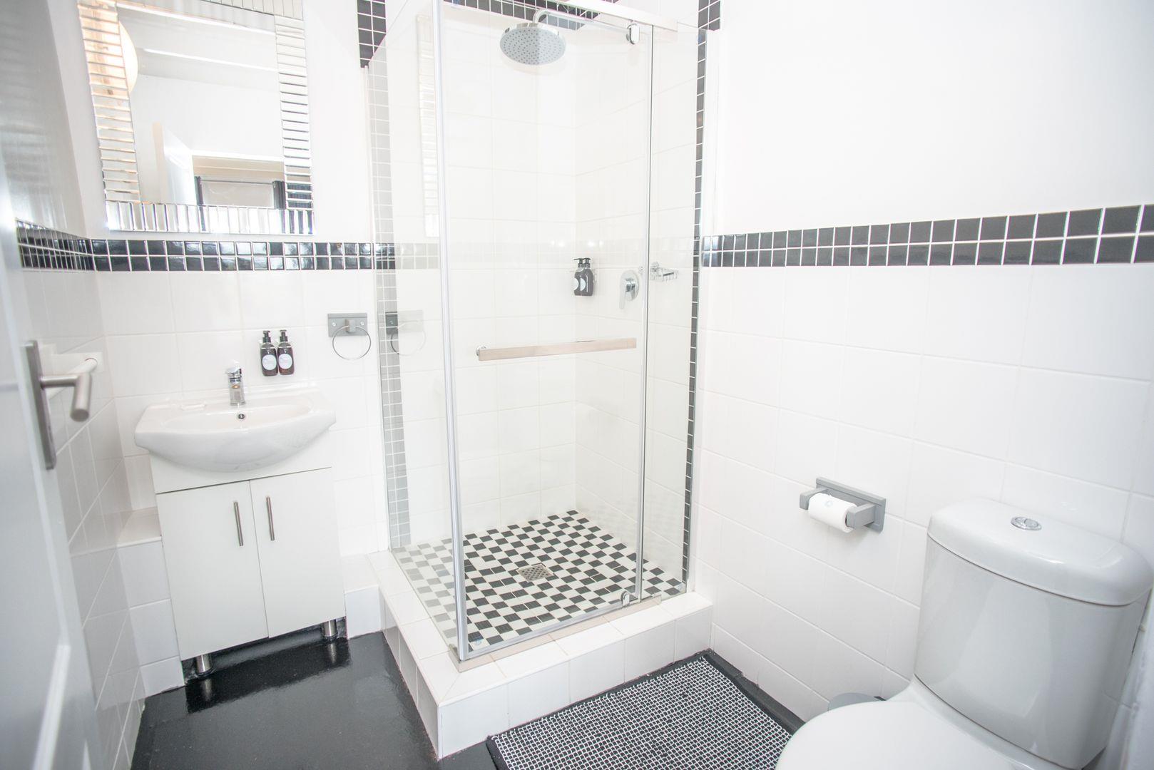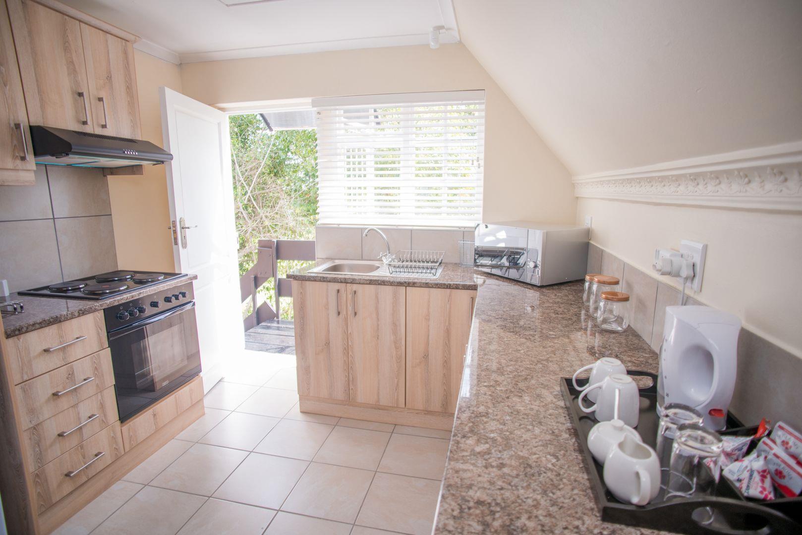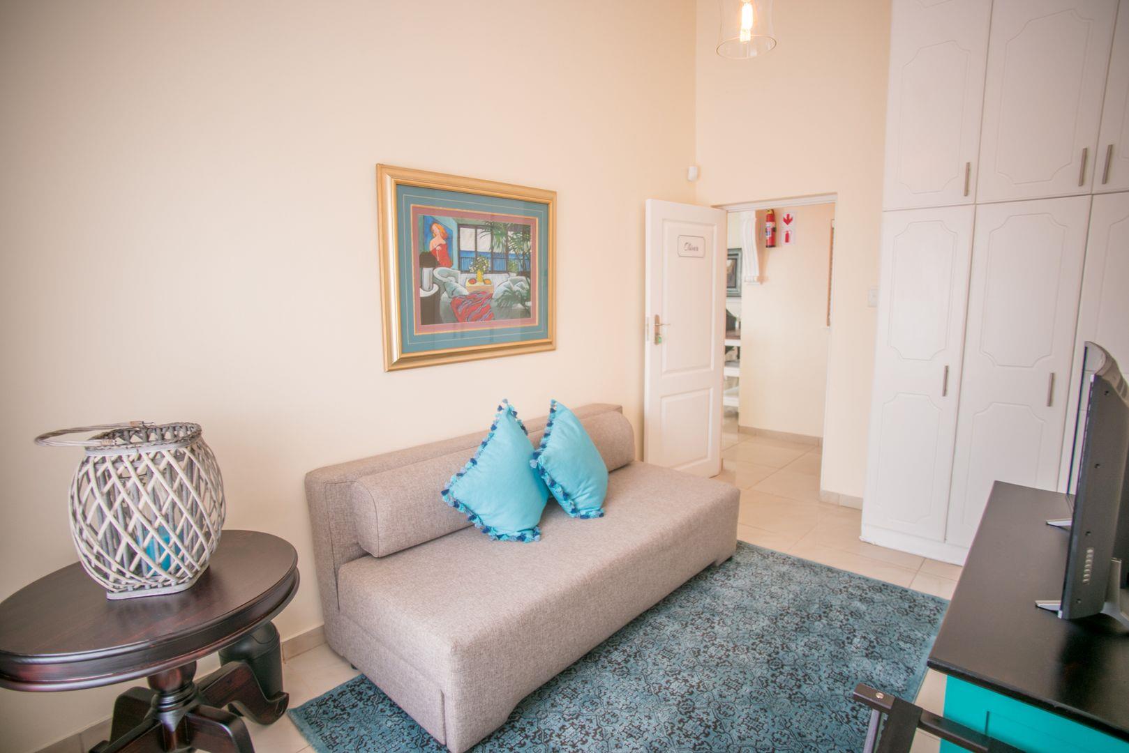 For enhanced security, the guest house features a comprehensive camera system that monitors the exterior and ensures the safety of vehicles. Live feeds can be accessed on multiple mobile phones and a screen at reception. Additionally, an intercom system connects reception, staff quarters, and mobile phones for convenient access, while an alarm system linked to Alpha Security's armed response provides peace of mind.