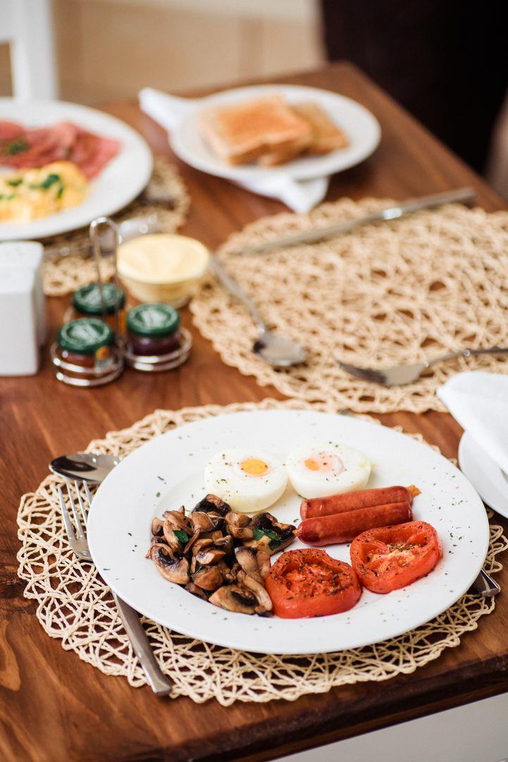 The inviting dining room, bathed in natural light, creates a warm and welcoming space for guests. With five tables accommodating up to 20 guests, it caters to both individuals and small groups. Guests can also enjoy their meals or simply relax on the veranda, which offers spectacular sea views.