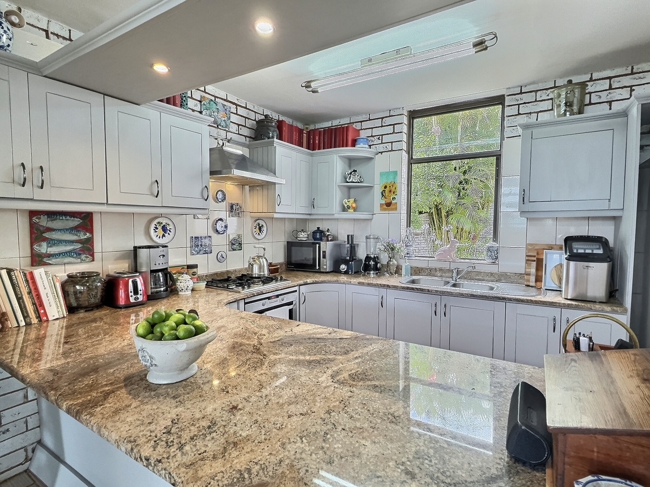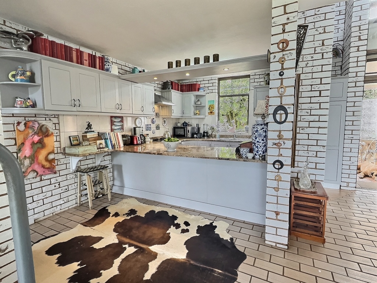 For those seeking a sustainable lifestyle, this home stands out. A borehole, 5,000-litre water tank, filtration system and pump supply the household, complemented by an electronic irrigation system for effortless garden care. A robust 12-panel solar installation with a 10kVA inverter reduces reliance on the grid, while a newly installed alarm system provides peace of mind.