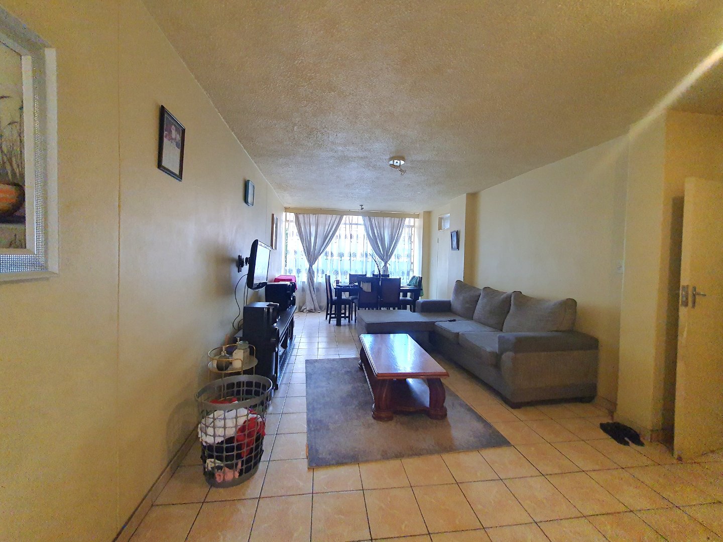 2 Spacious bedrooms with built in cupboards and 1 bathroom with bath, basin and separate toilet.