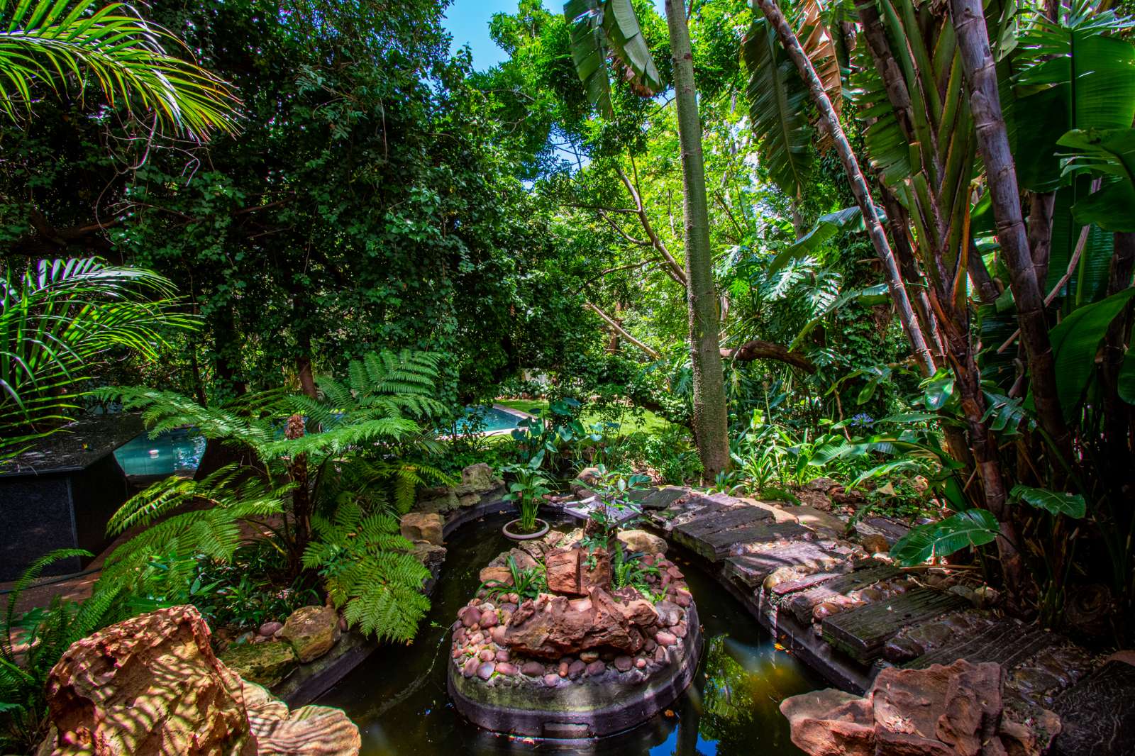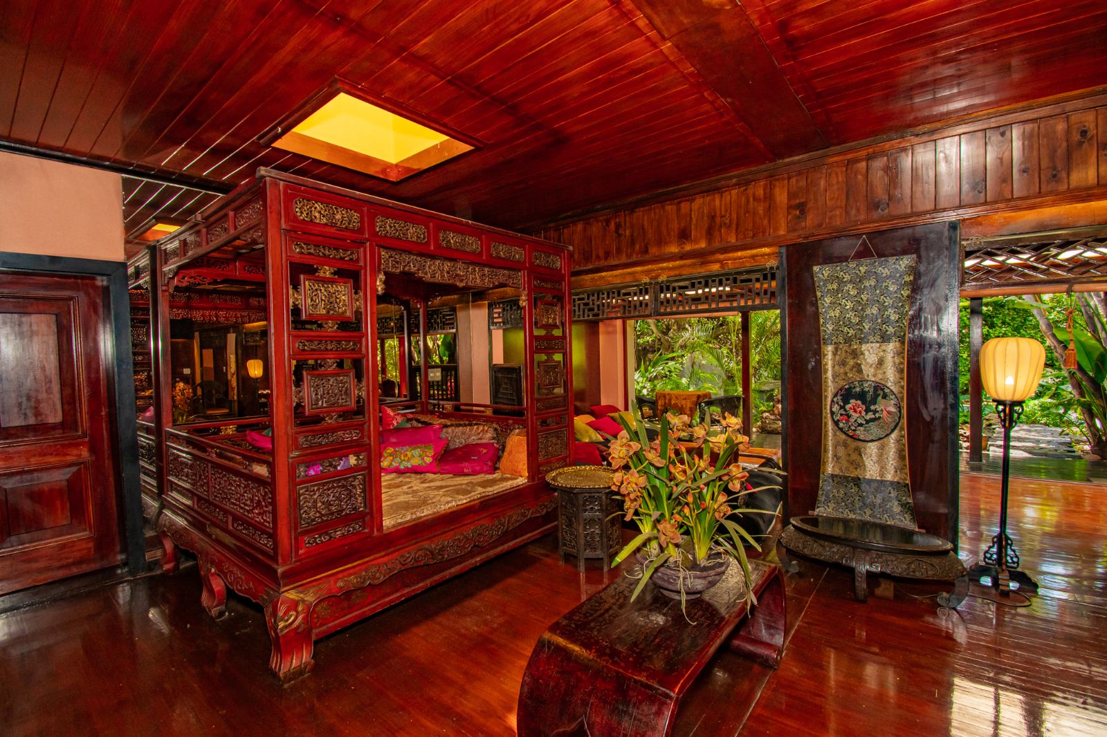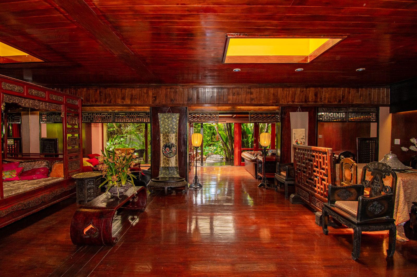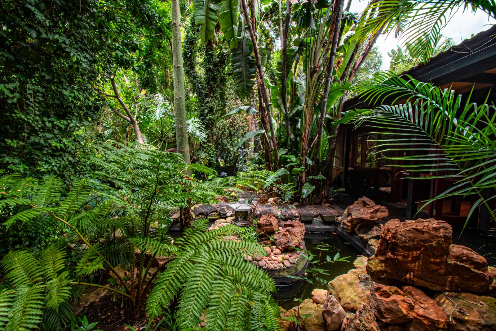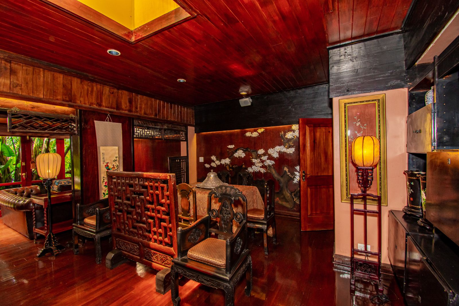 Outdoors, a swimming pool is nestled within a lush Japanese-style garden, offering a serene escape for guests. A discreet spa treatment room is positioned in a secluded corner of the property, enhancing the guest experience with added wellness appeal.