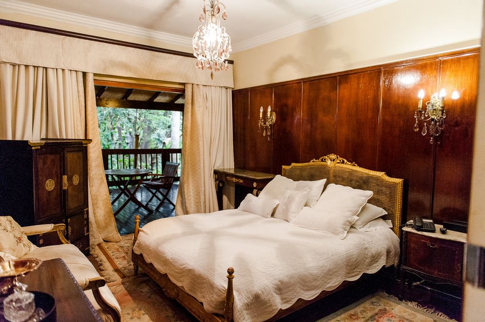 This Balinese inspired home, affectionately termed "The Hideaway", offers 7 en-suite bedrooms. Spacious, dining/relaxation area. Lush gardens. Serene pool. 3 staff rooms. 4 garages and additional on-site parking for 7 vehicles. Formally utilized as a SPA, however has not been zoned for business.