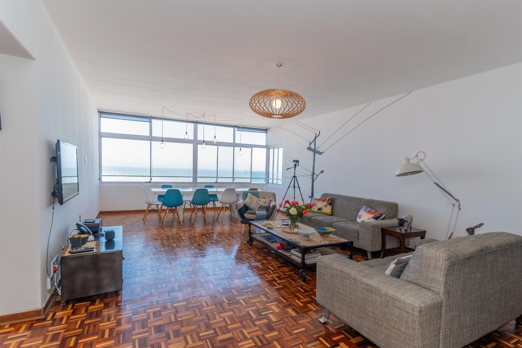Step inside to find an open-plan layout that seamlessly connects the living and dining areas, adorned with stylish parquet and tiled floors. Large aluminium windows frame stunning ocean and mountain views, flooding the space with natural light and creating a serene atmosphere. The apartment is fully furnished, allowing for an effortless move-in experience.
