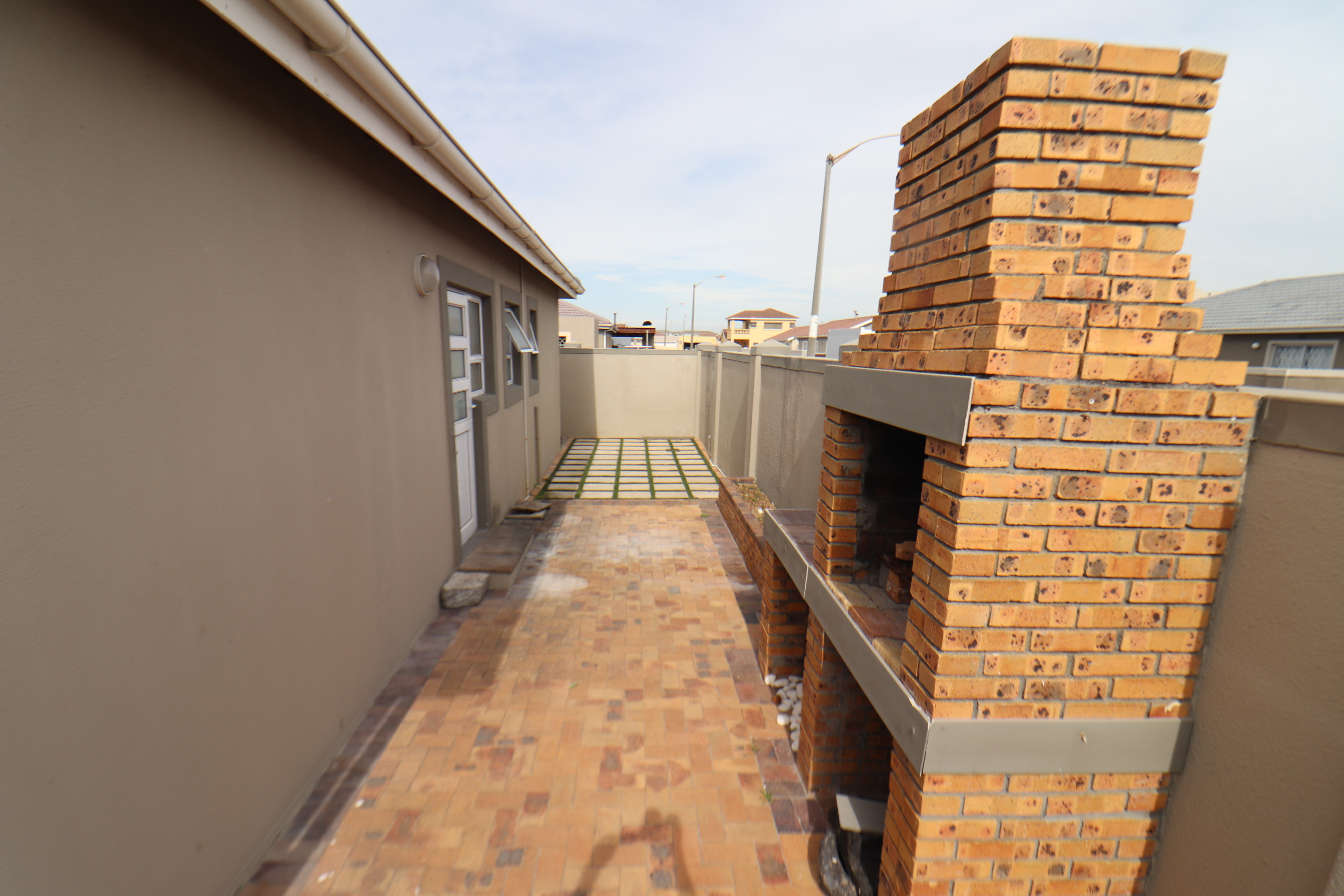 The backyard is paved and features an outdoor braai area, perfect for private entertaining or relaxed weekend gatherings.