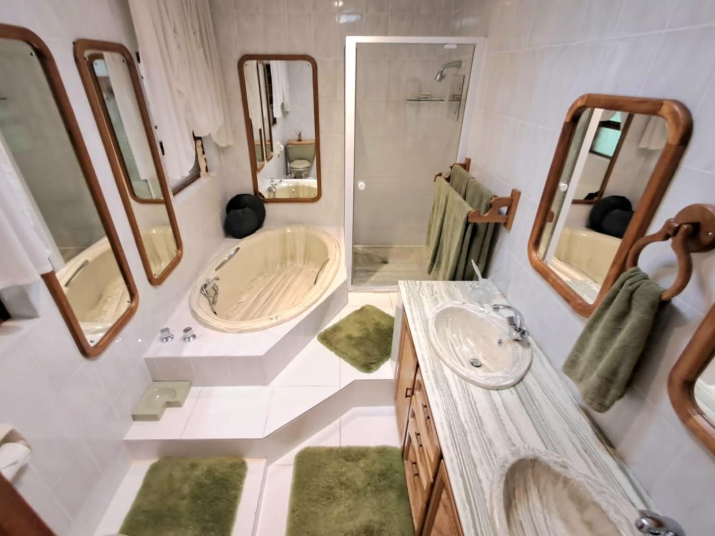 A second full bathroom serves these bedrooms, offering a corner bath, shower, basin, and toilet for added convenience.