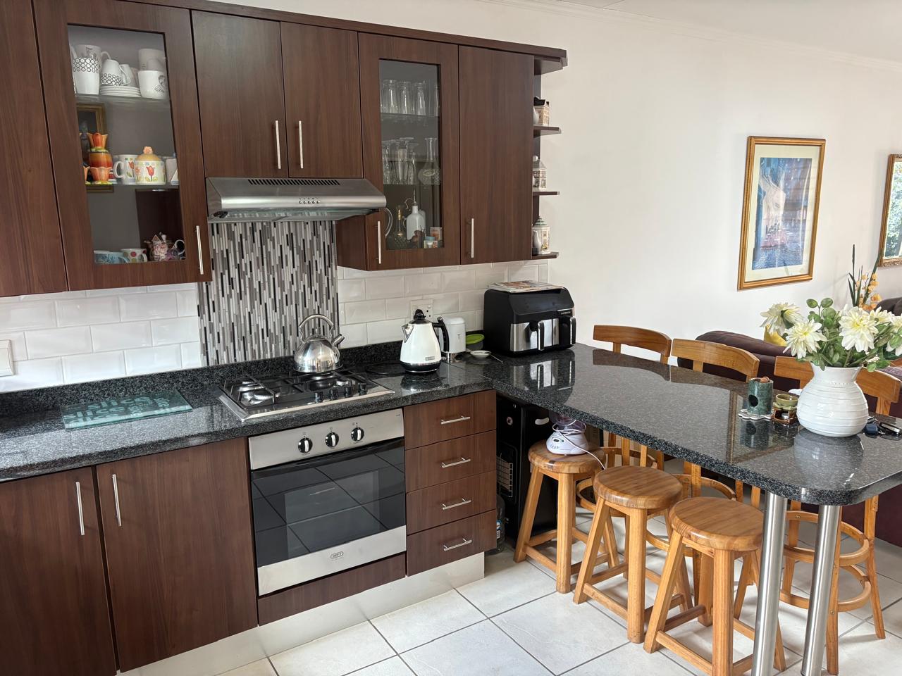 Step into the ultra-modern kitchen, featuring sleek granite countertops and a state-of-the-art gas stove, ideal for culinary enthusiasts. The open-plan layout seamlessly connects the lounge, dining room, and sunroom, creating a spacious and inviting living area. Enjoy the tranquility of your private garden, accessible through elegant sliding doors from the sunroom.