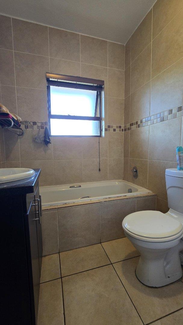 The townhouse features three generously sized bedrooms, including a master suite with an en-suite bathroom, and a second well-appointed bathroom. The modern kitchen boasts ample cupboard space, catering to all your culinary needs. The open-plan layout seamlessly connects the lounge and dining areas, creating an inviting space for relaxation and entertaining.