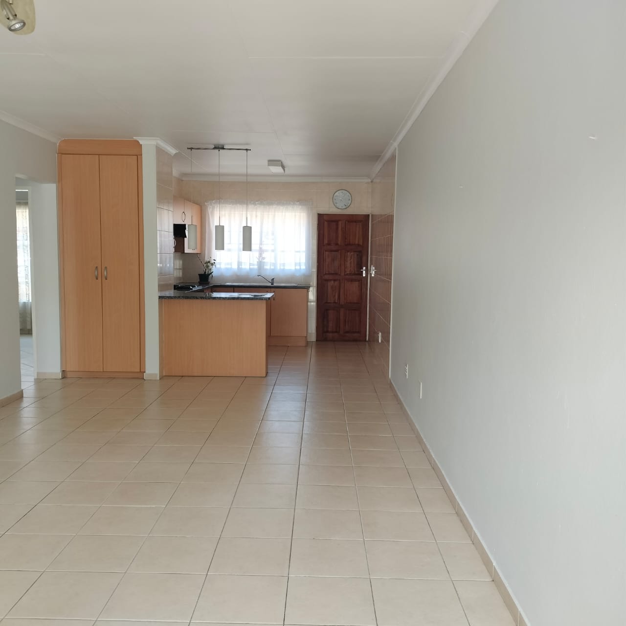 The open-plan kitchen flows seamlessly into the cosy lounge area, creating a warm and inviting space to relax or entertain.