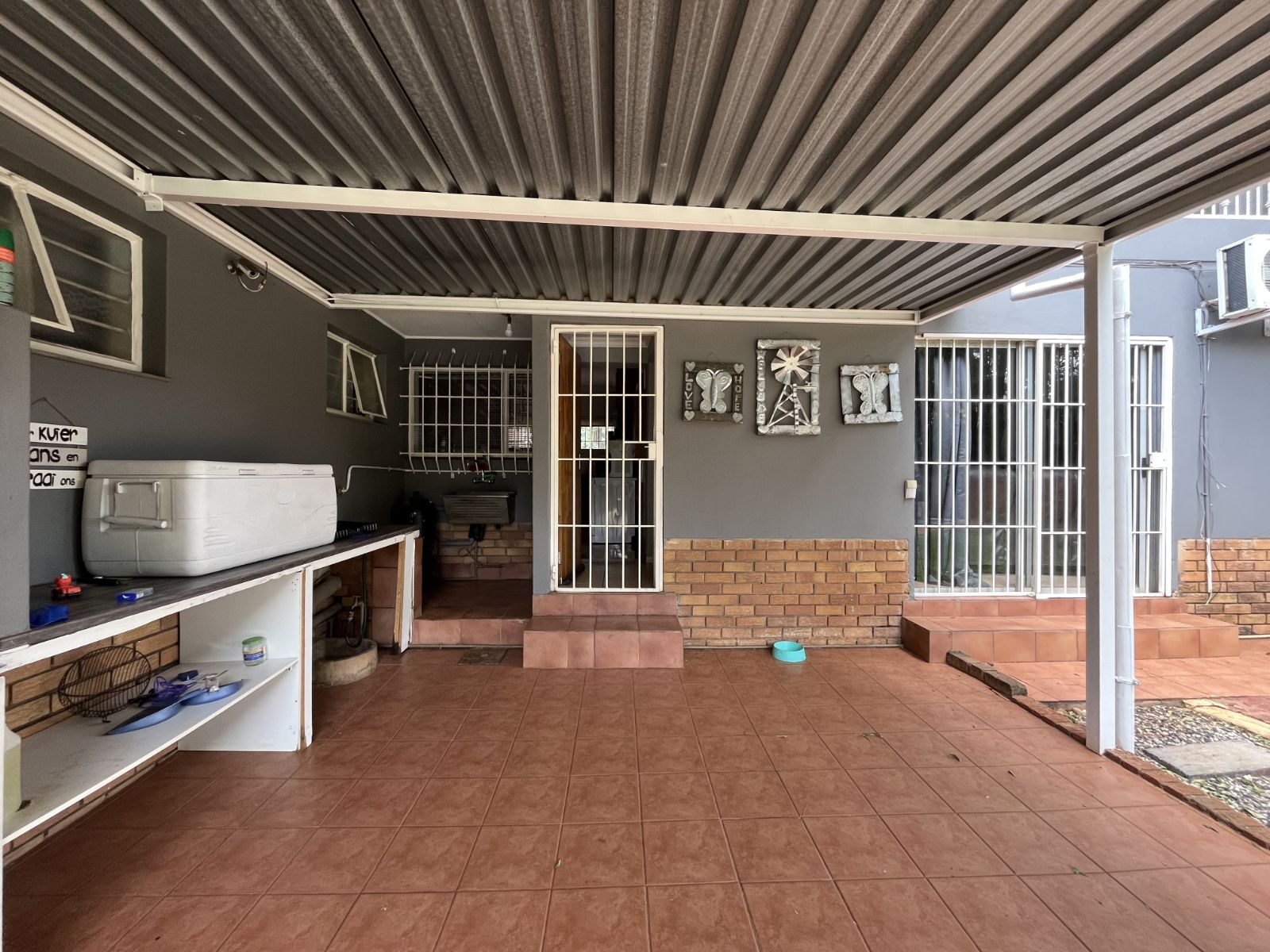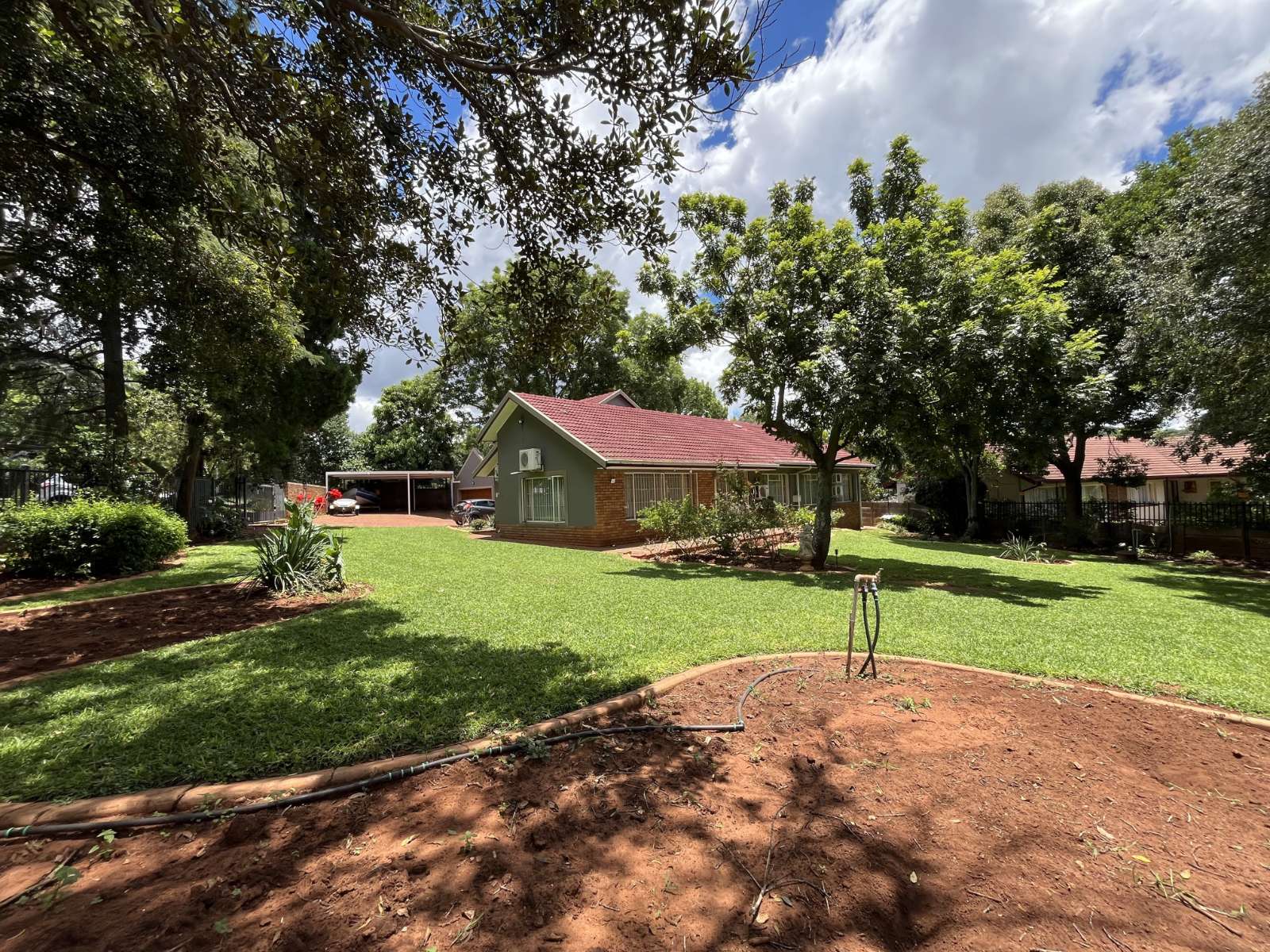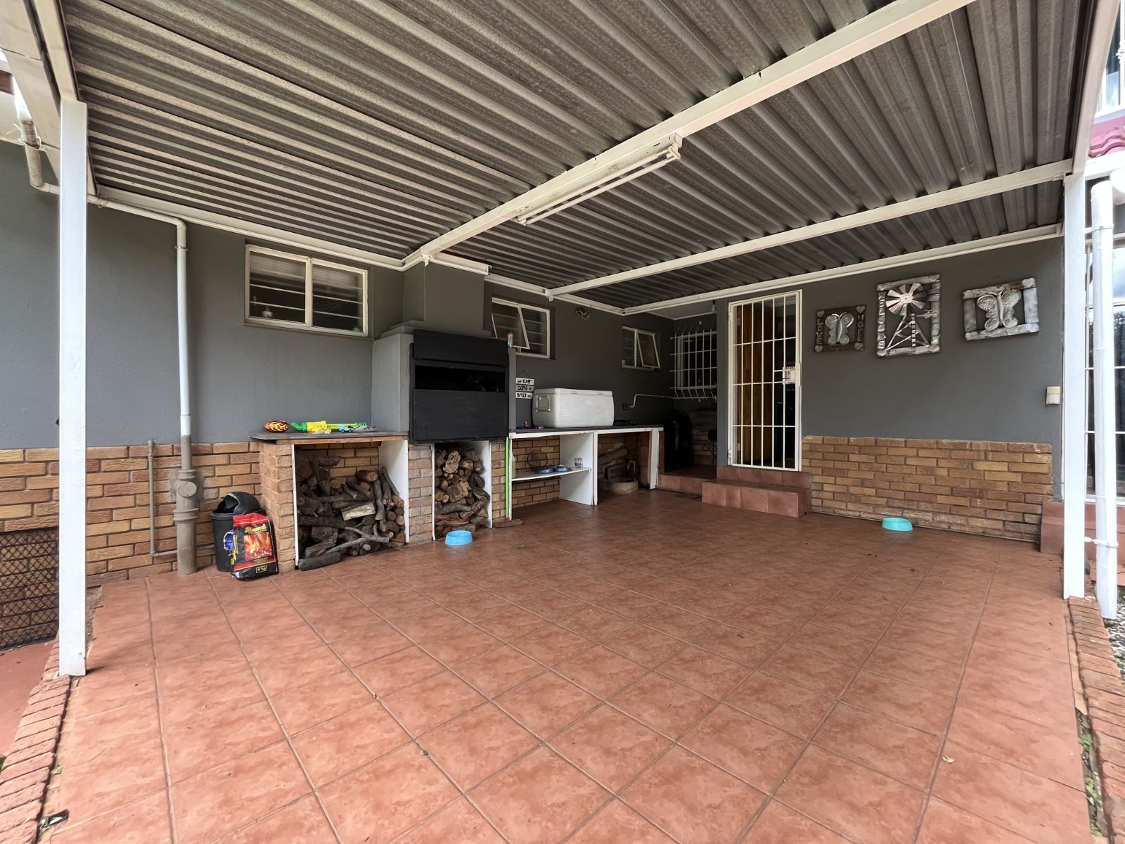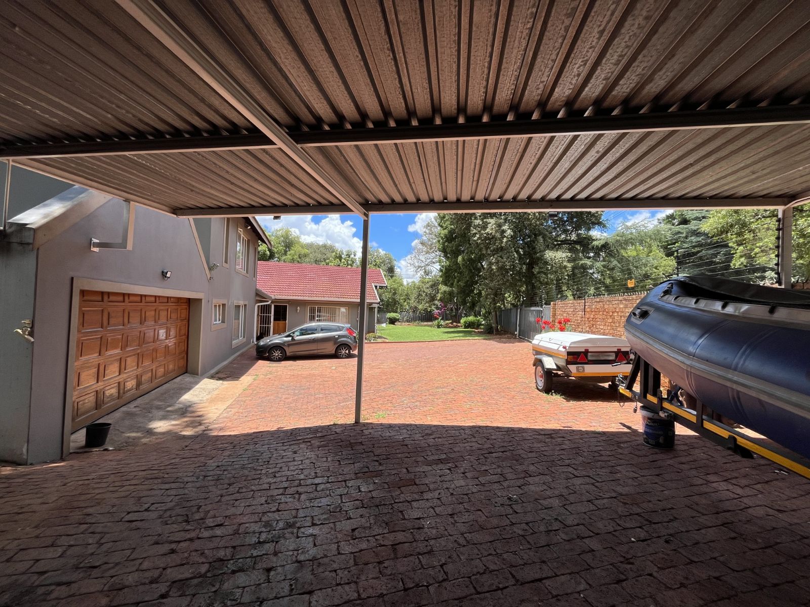 Outdoors, the property truly comes into its own. A sparkling swimming pool with a water feature, complemented by a built-in braai, creates an inviting setting for family gatherings and relaxed entertaining. The large, established garden offers ample space for children, pets, or future enhancements.