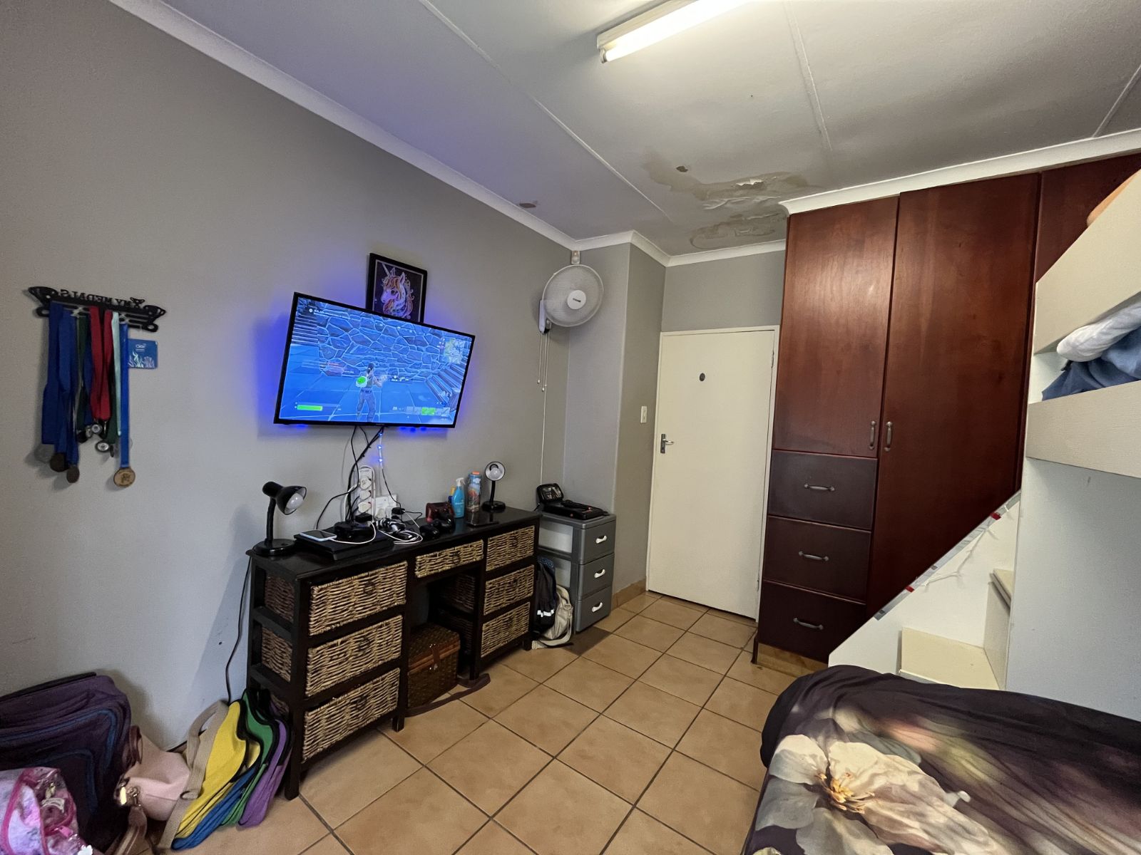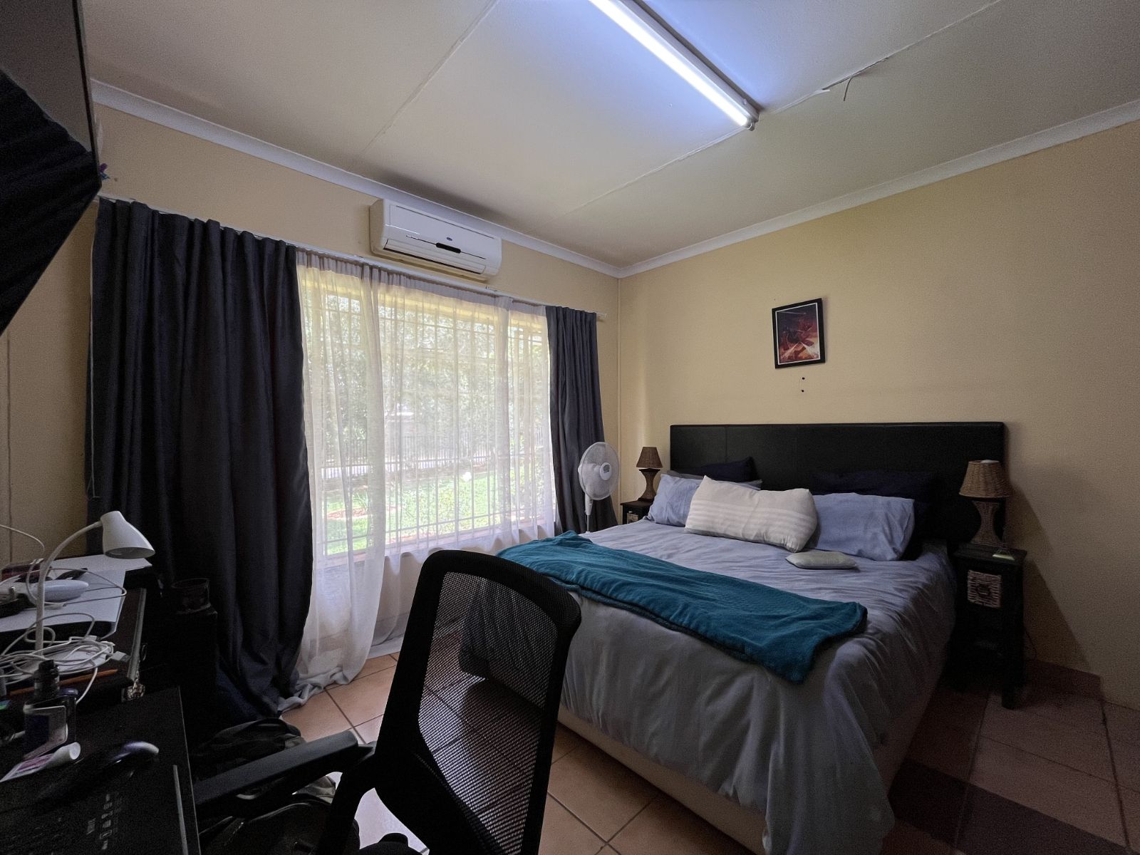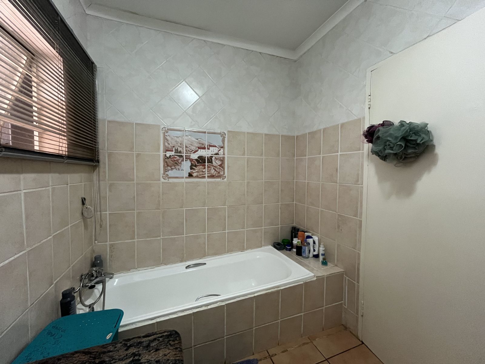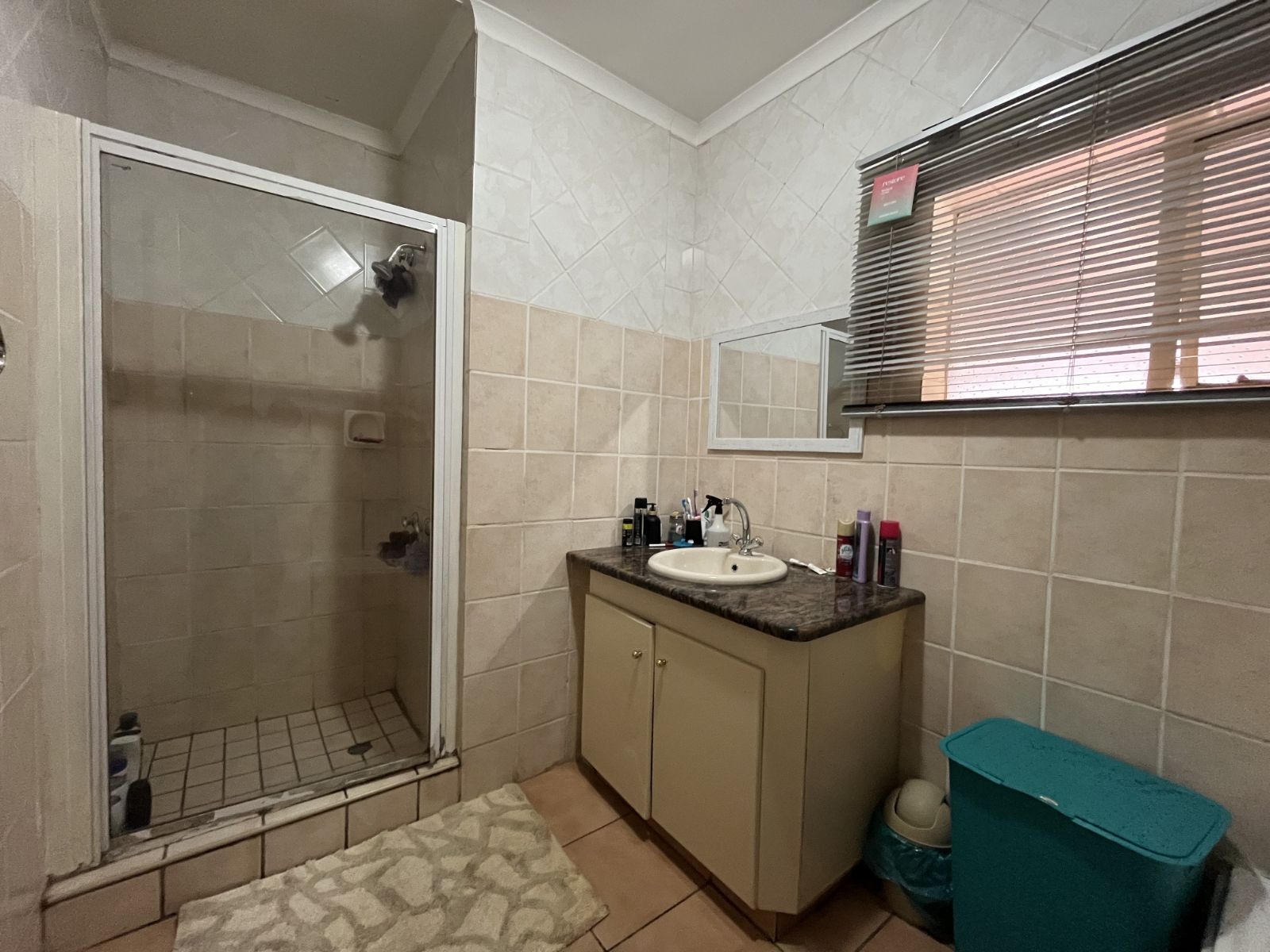 Outdoors, the property truly comes into its own. A sparkling swimming pool with a water feature, complemented by a built-in braai, creates an inviting setting for family gatherings and relaxed entertaining. The large, established garden offers ample space for children, pets, or future enhancements.