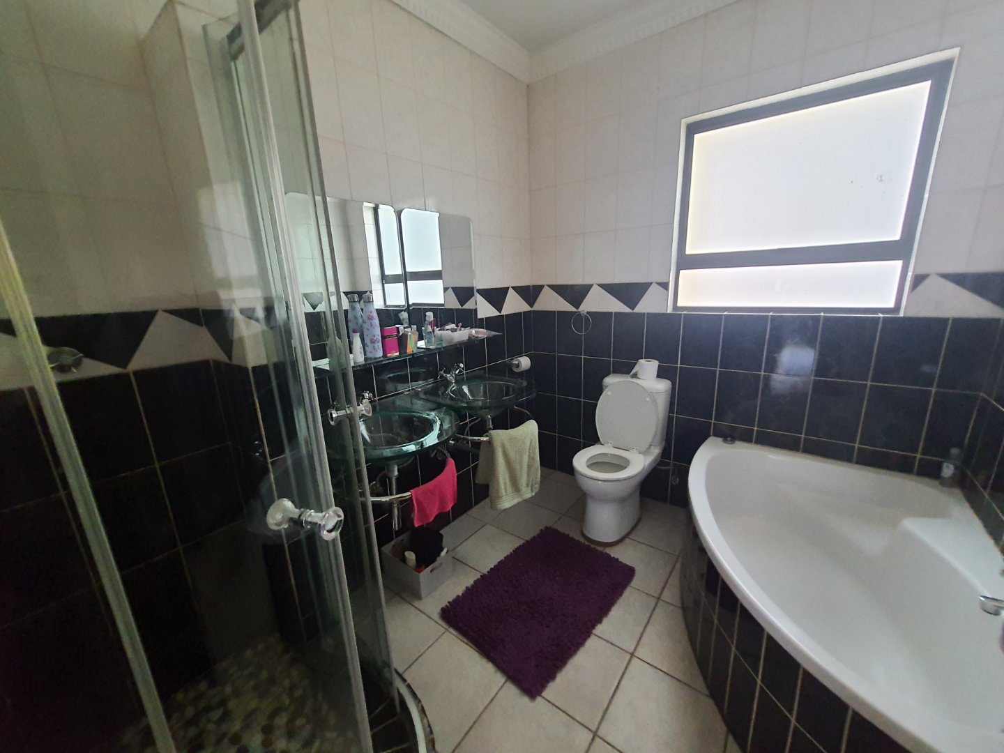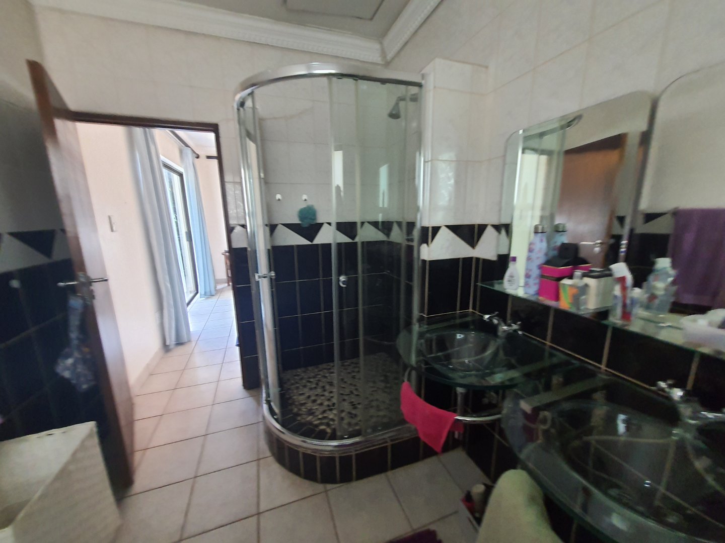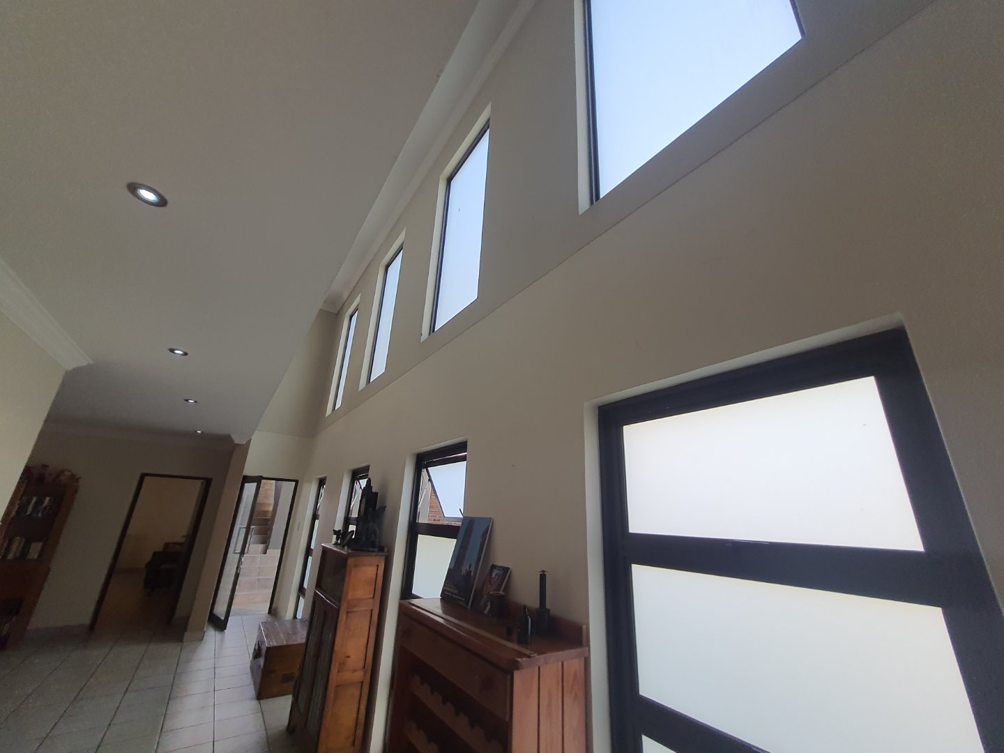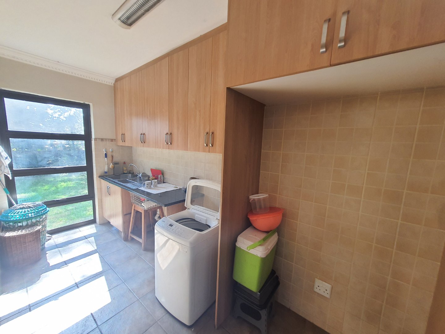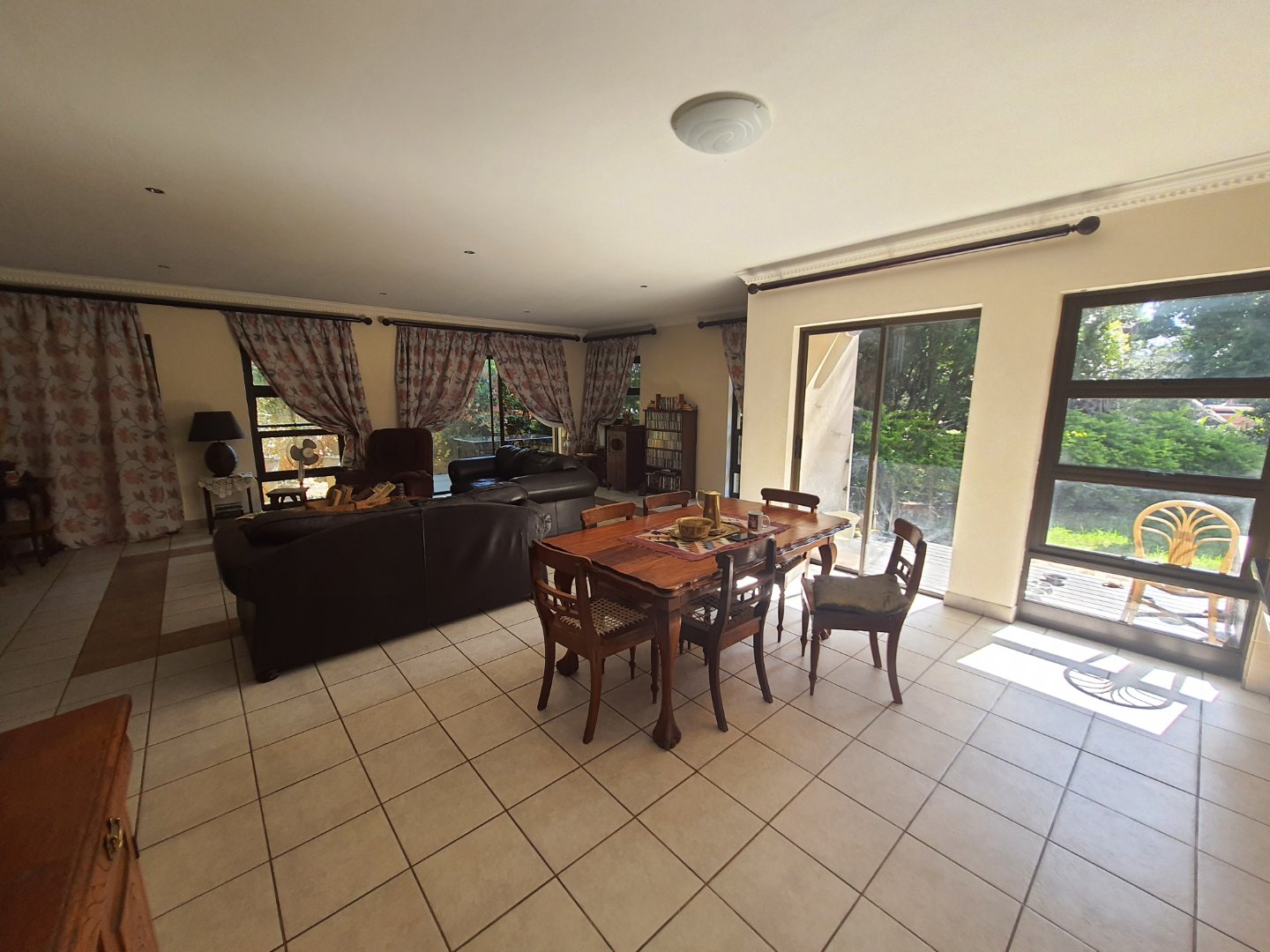 The fifth bedroom downstairs is more like a separate flatlet with own bathroom en-suit and separate door to the garden. There is a large lounge/ family or playroom with guest toilet downstairs next to the fifth bedroom, creating ideal private space for live in parents or teenage needing own space, but still part of the family and household.
