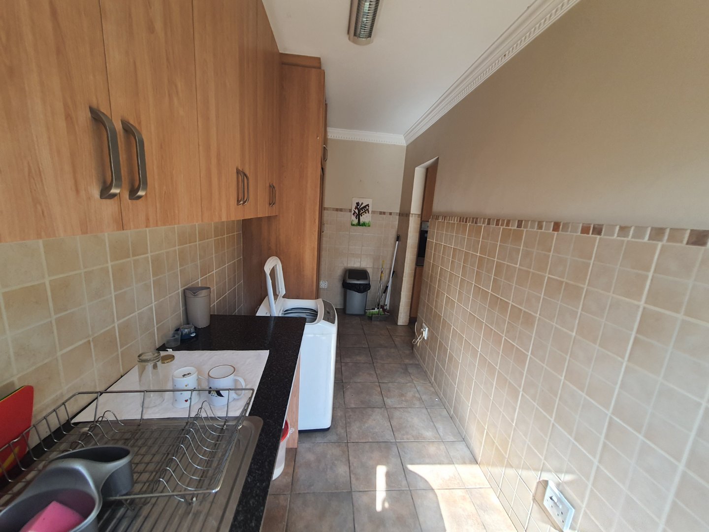 Lovely, fitted kitchen with ample marble counterspace, built in cupboards with separate laundry room. Space for dryer, washing machine, dishwasher as well as double fridge.