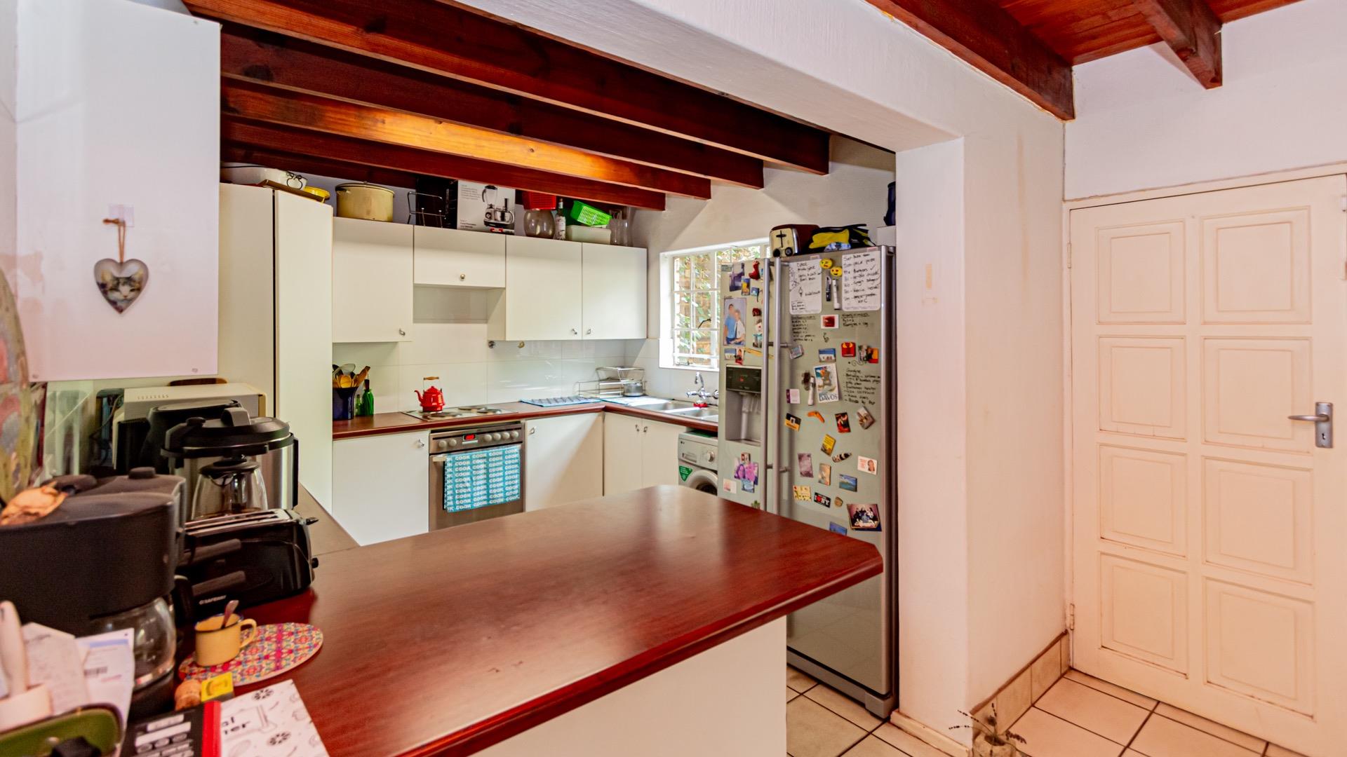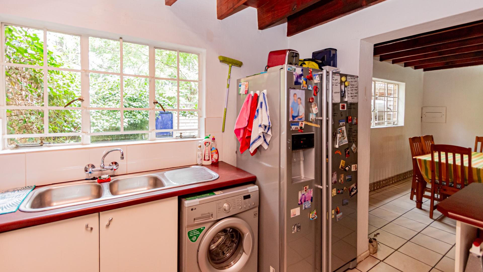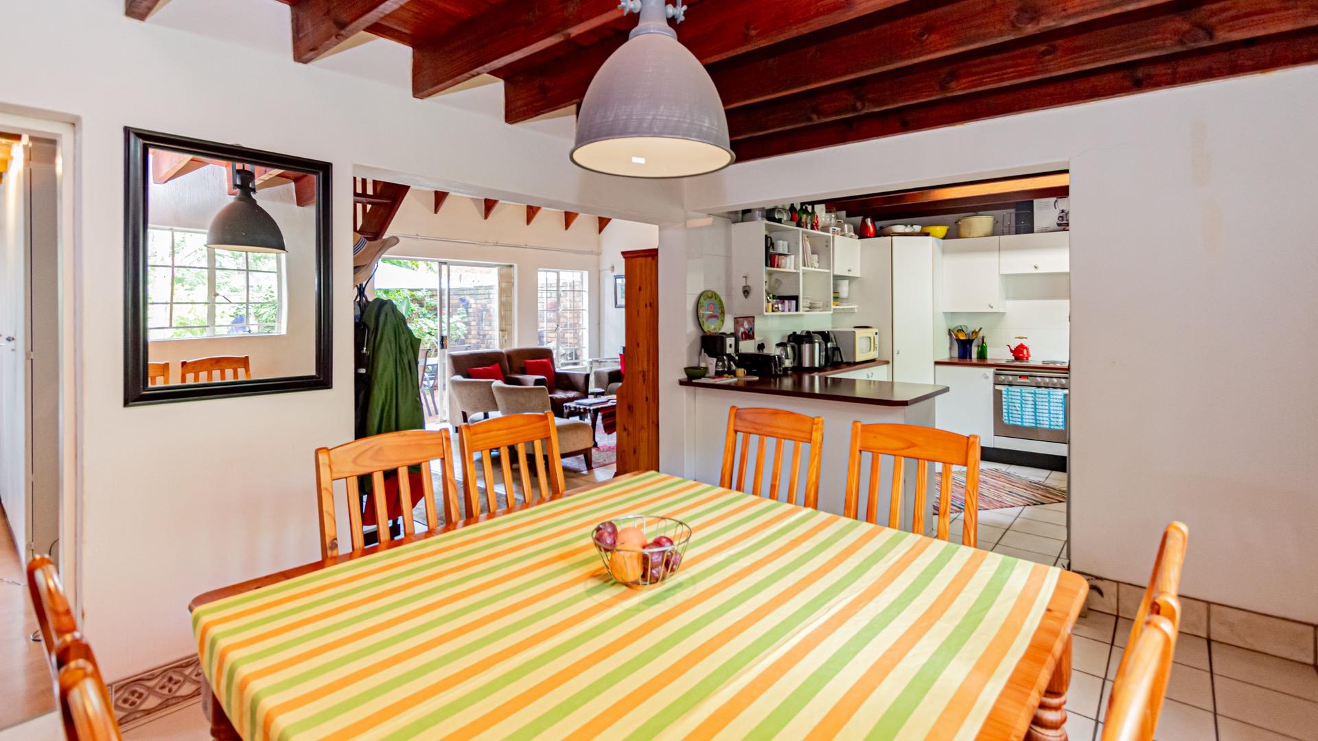 The heart of the home lies toward the rear, where a cozy lounge enjoys a dramatic double-volume roof and generous windows that flood the space with natural light while framing views of the verdant backyard garden. Toward the front, a cheerful dining room flows seamlessly into the practical yet stylish kitchen—ideal for everyday living as well as weekend entertaining.