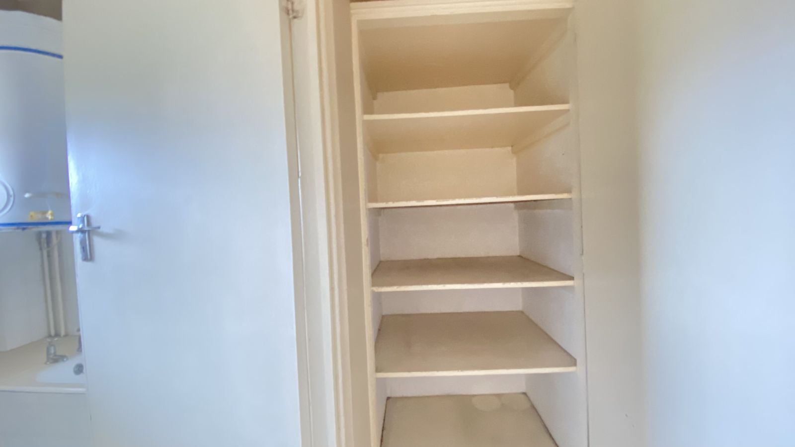 The spacious main bedroom is filled with natural light, while the additional half-bedroom provides the ideal space for a study, nursery, or guest room. A neatly fitted bathroom and a separate guest toilet add to the apartment’s practical layout.