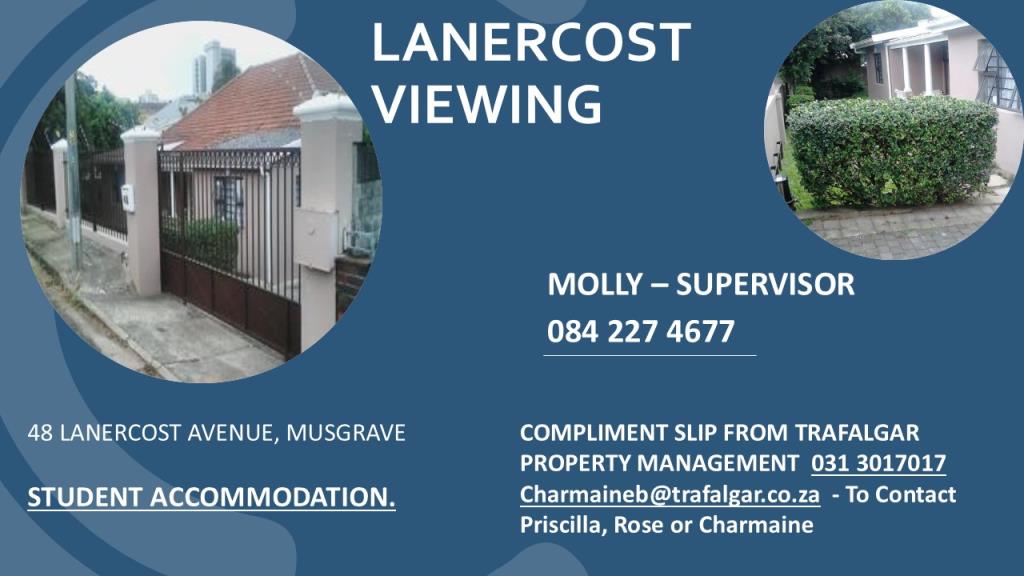 Very secure with a full time supervisor. Gated property with limited parking on request. Walking distance to D.U.T, Musgrave Shopping Centre as well as Davenport Centre. Short driving distance to City Centre. On bus and taxi route.