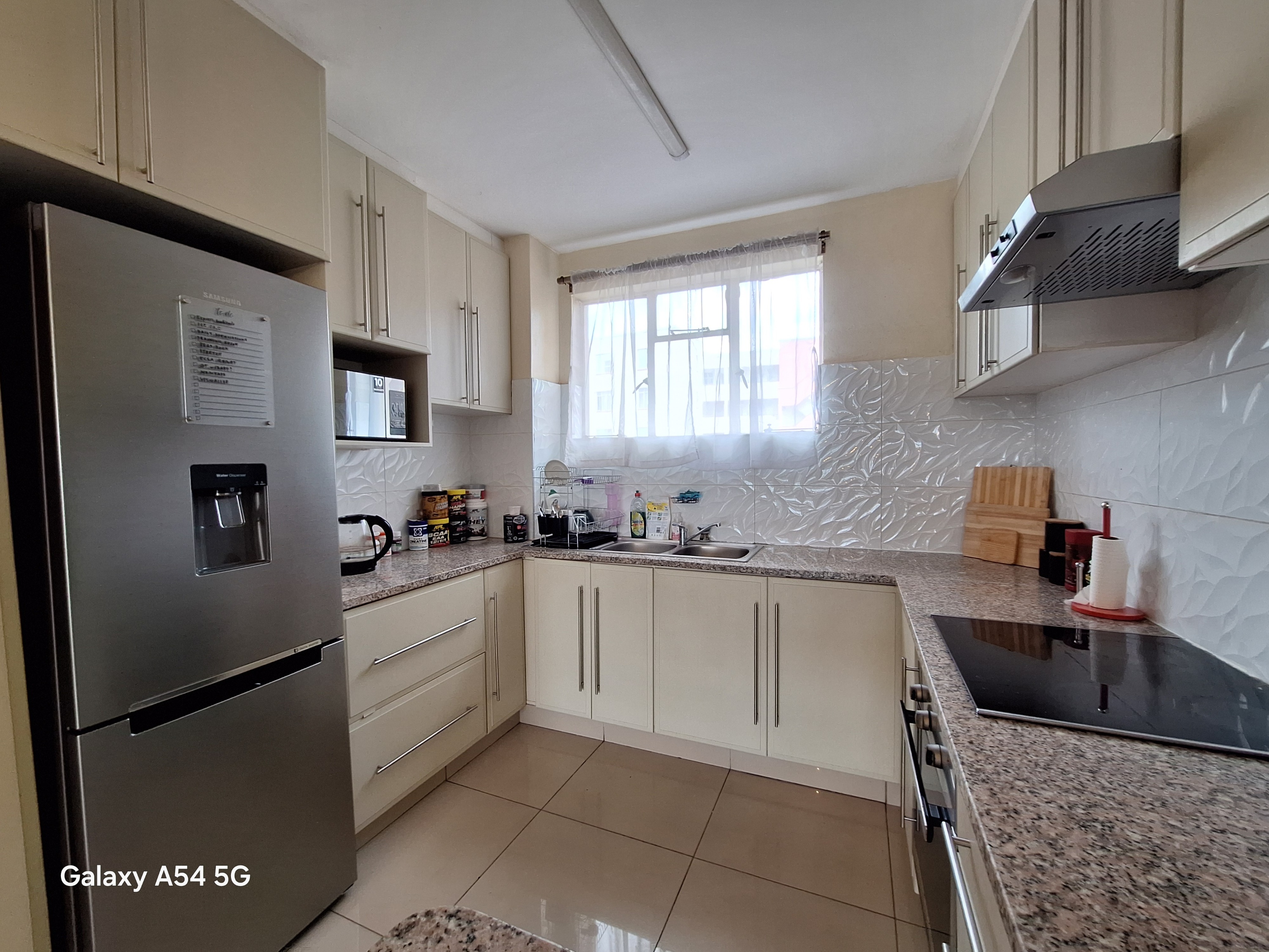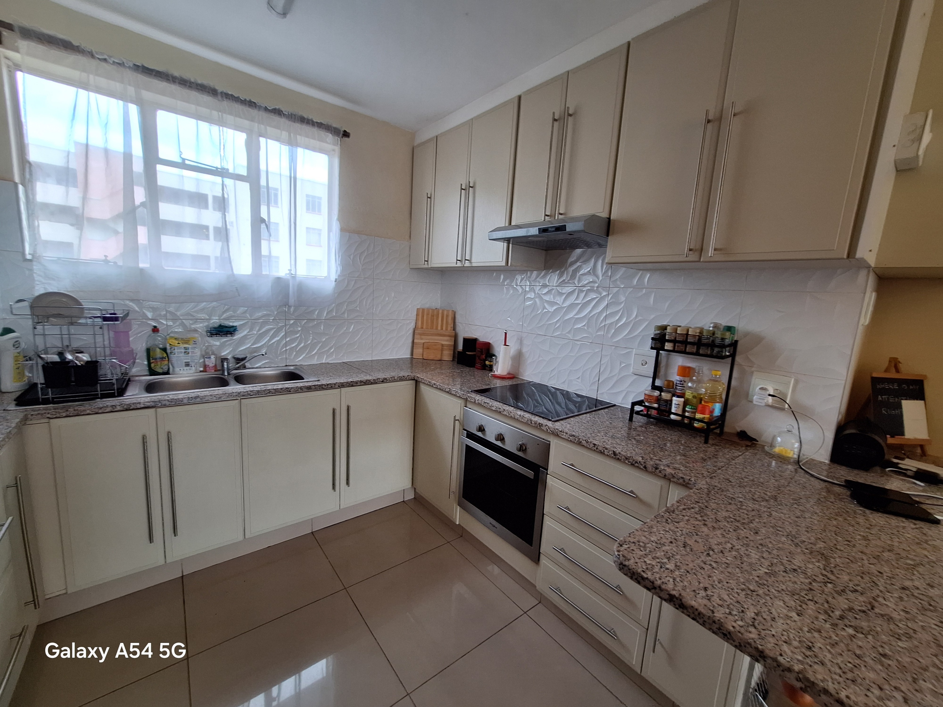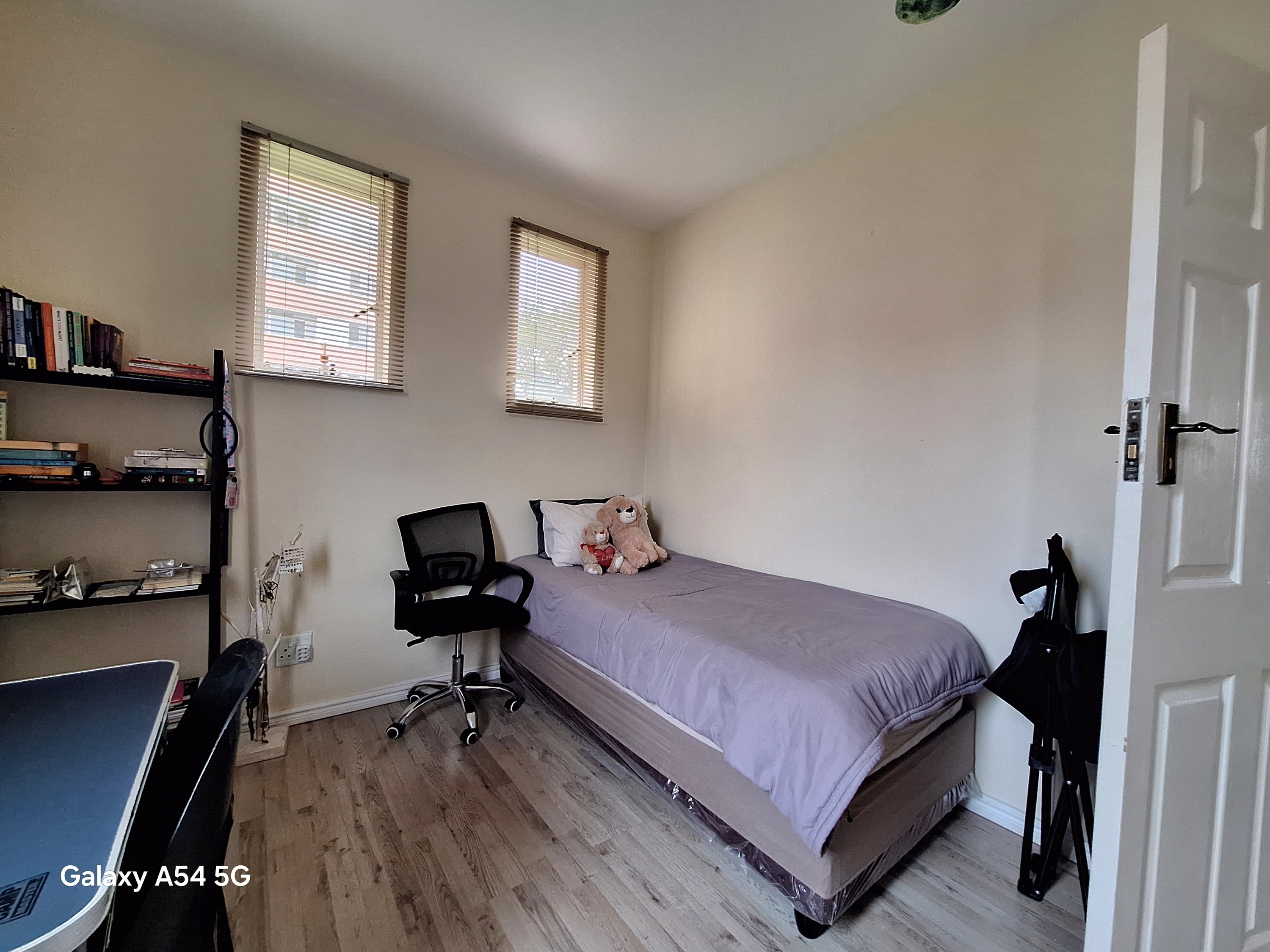Offering 2.5 bedroom all with built in cupboards. Half bedroom used as home office. Bathroom with shower and plumbing for washing machine.