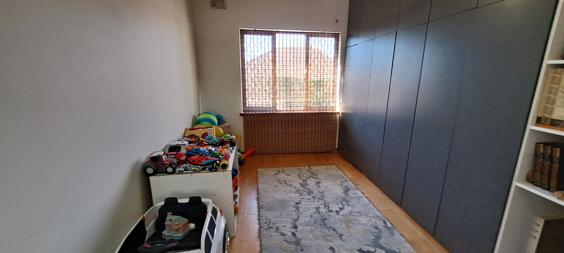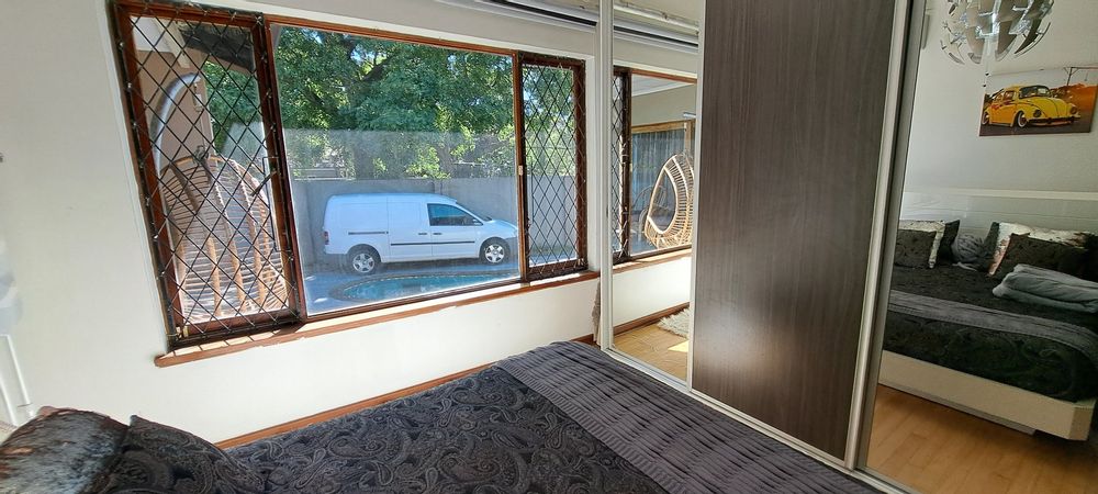 The house offers a solid foundation for conversion subject to municipal approval, with four bedrooms, an office, two full bathrooms, and a large lounge and separate entrance at the rear. The swimming pool, double garage, and parking for four vehicles enhances its value. Practical features like a solar geyser, gas installation, and four air conditioning units are already in place, making it ready for a quick and profitable repurposing into high-value rental units.