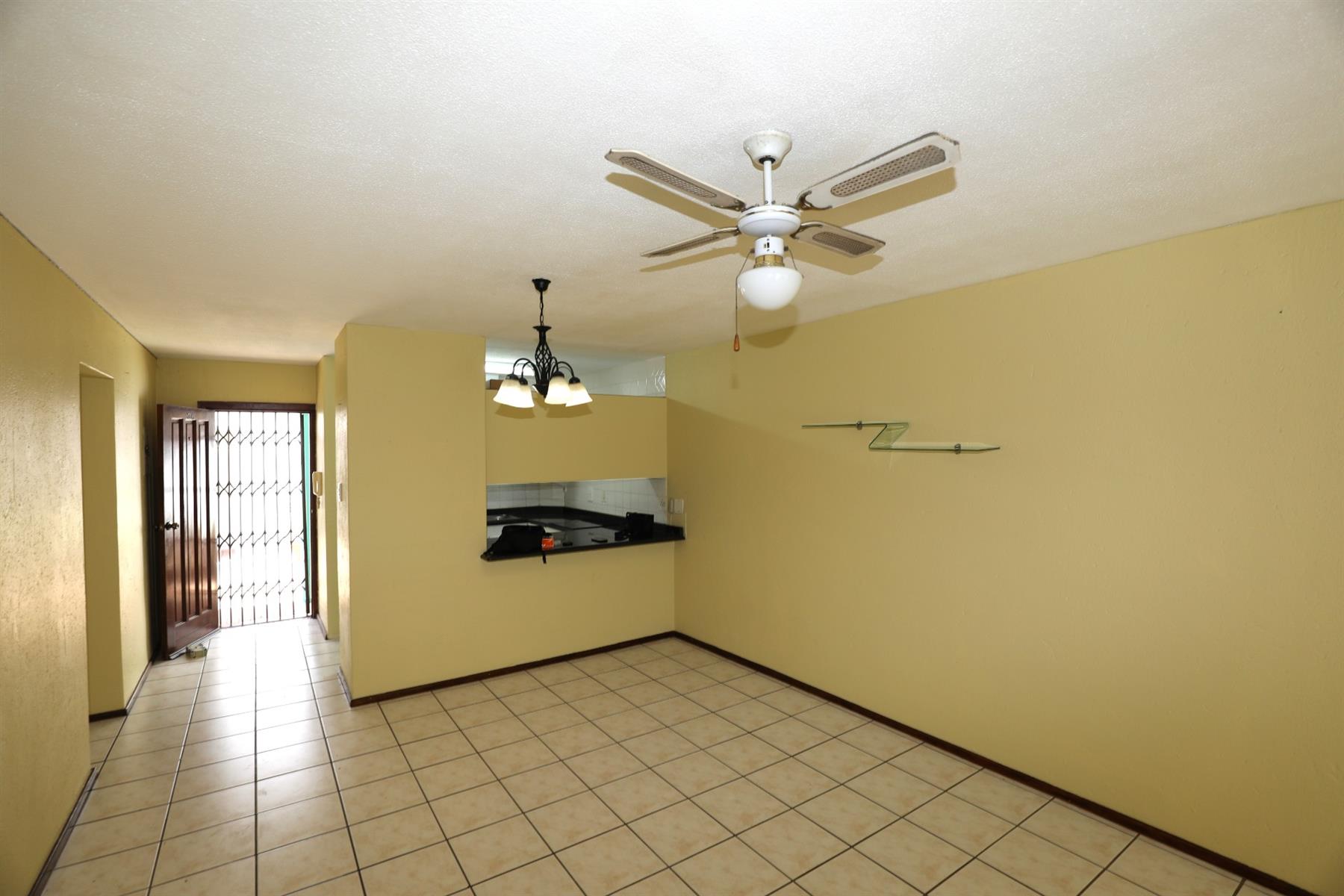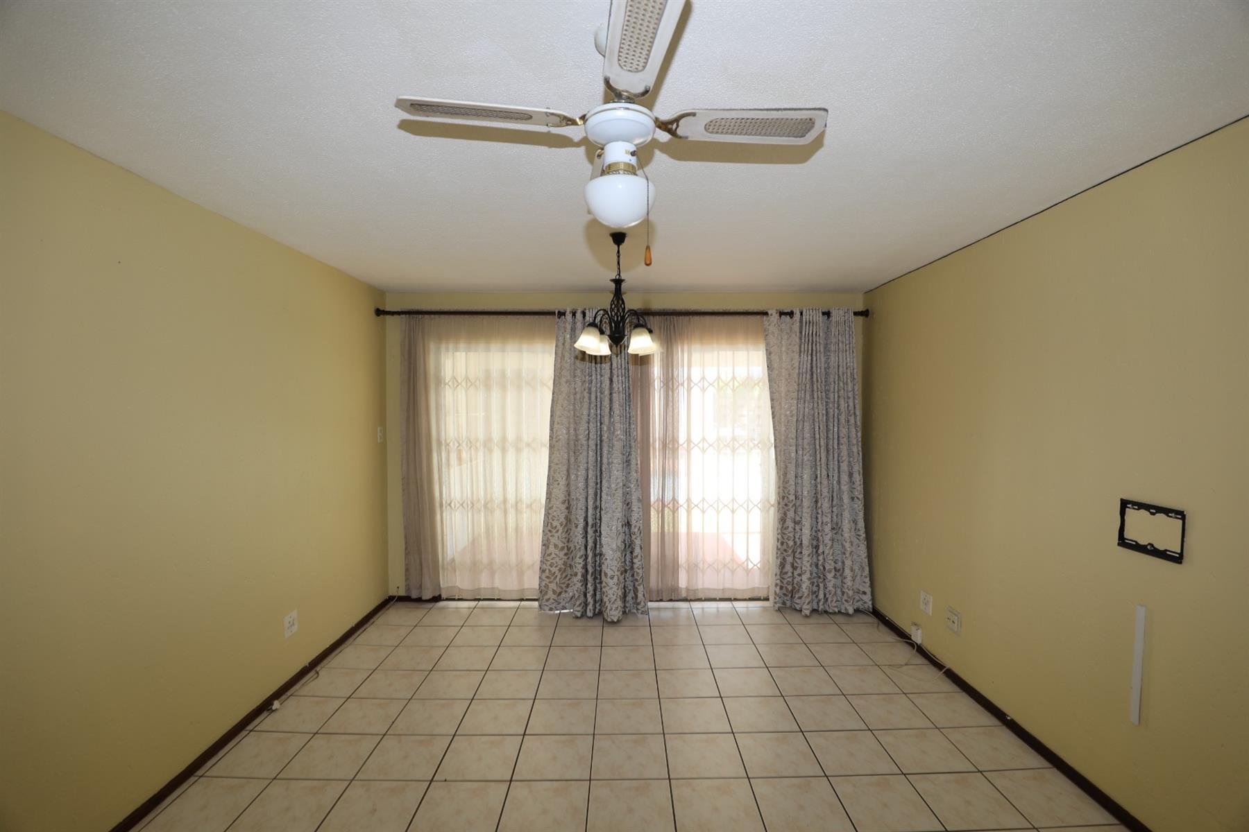 The living area is air-conditioned for your comfort, ensuring a pleasant atmosphere year-round. Sliding doors lead out onto a balcony where you can enjoy fresh air and views of the surrounding neighborhood. The townhouse is fitted with durable aluminium windows and tiled floors, creating a seamless blend of elegance and practicality.
