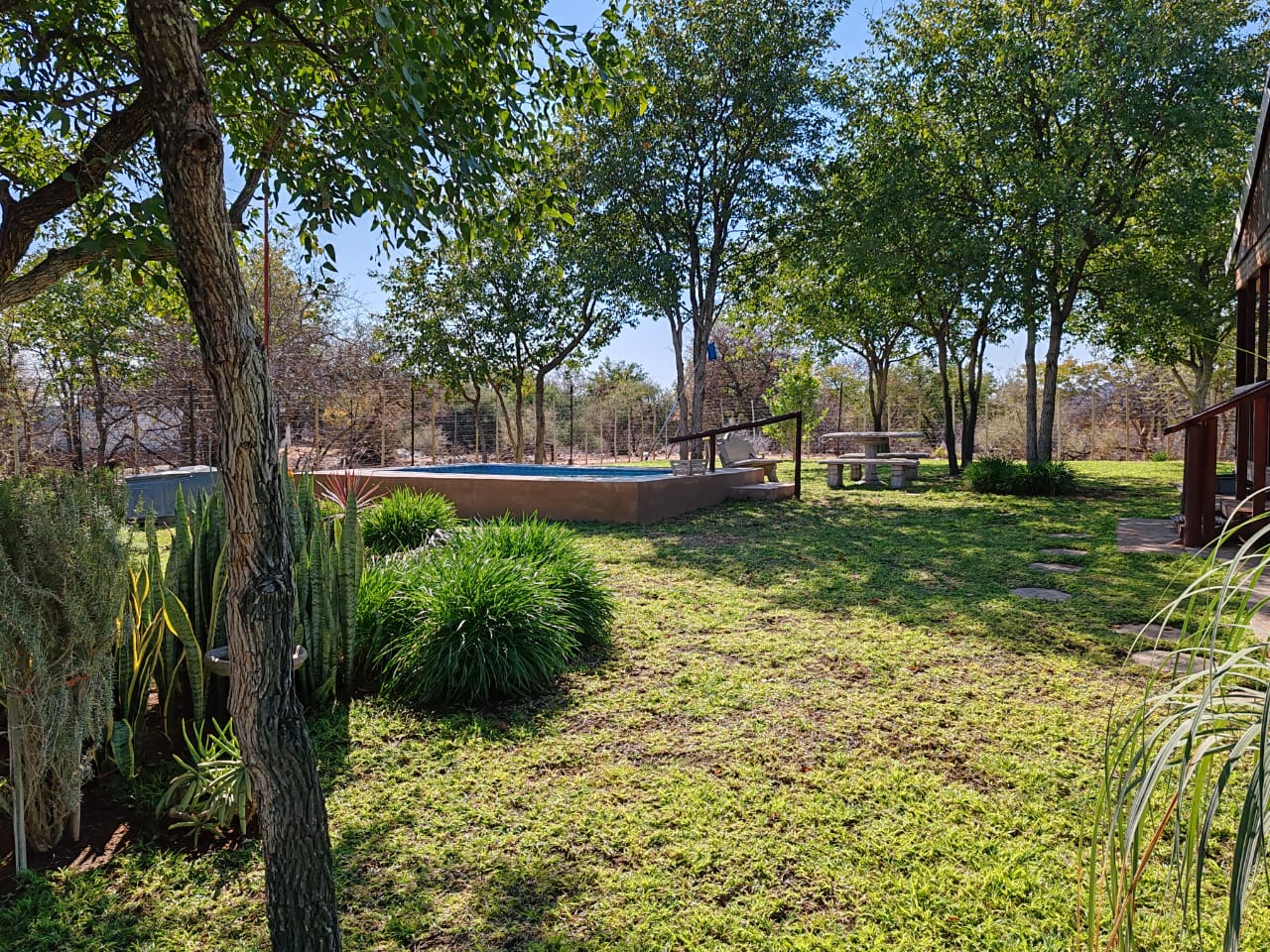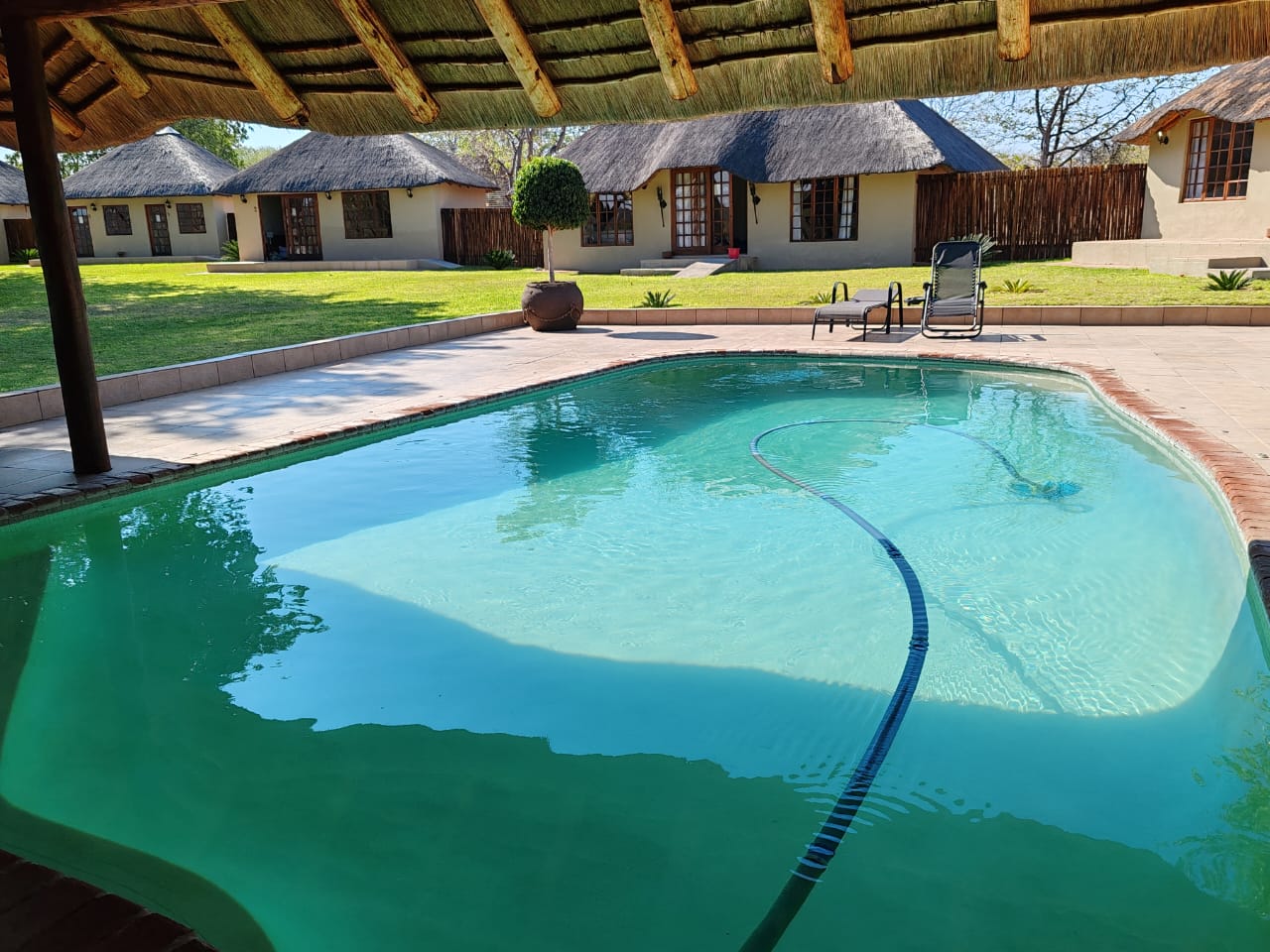 The bushveld would be incomplete without a Lapa, with its own bar, braai area, swimming pool and trampoline.