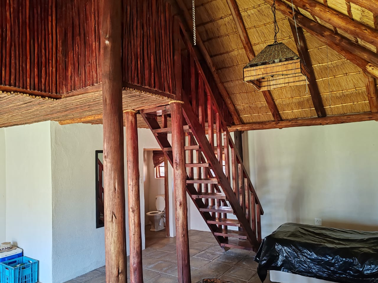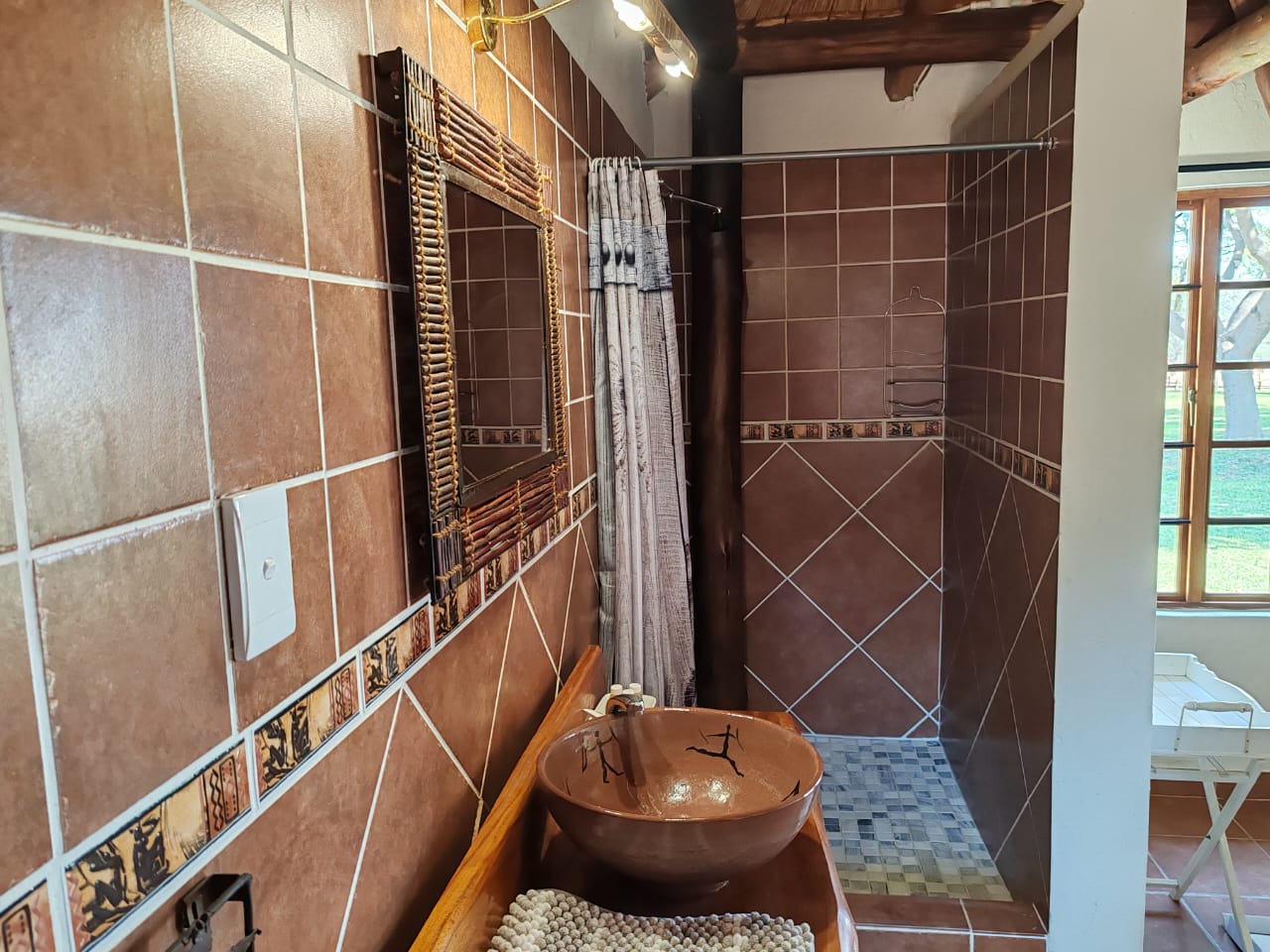 9 Thatched chalets each with its own bathroom. Tastefully decorated and furnished these cater for those with a high