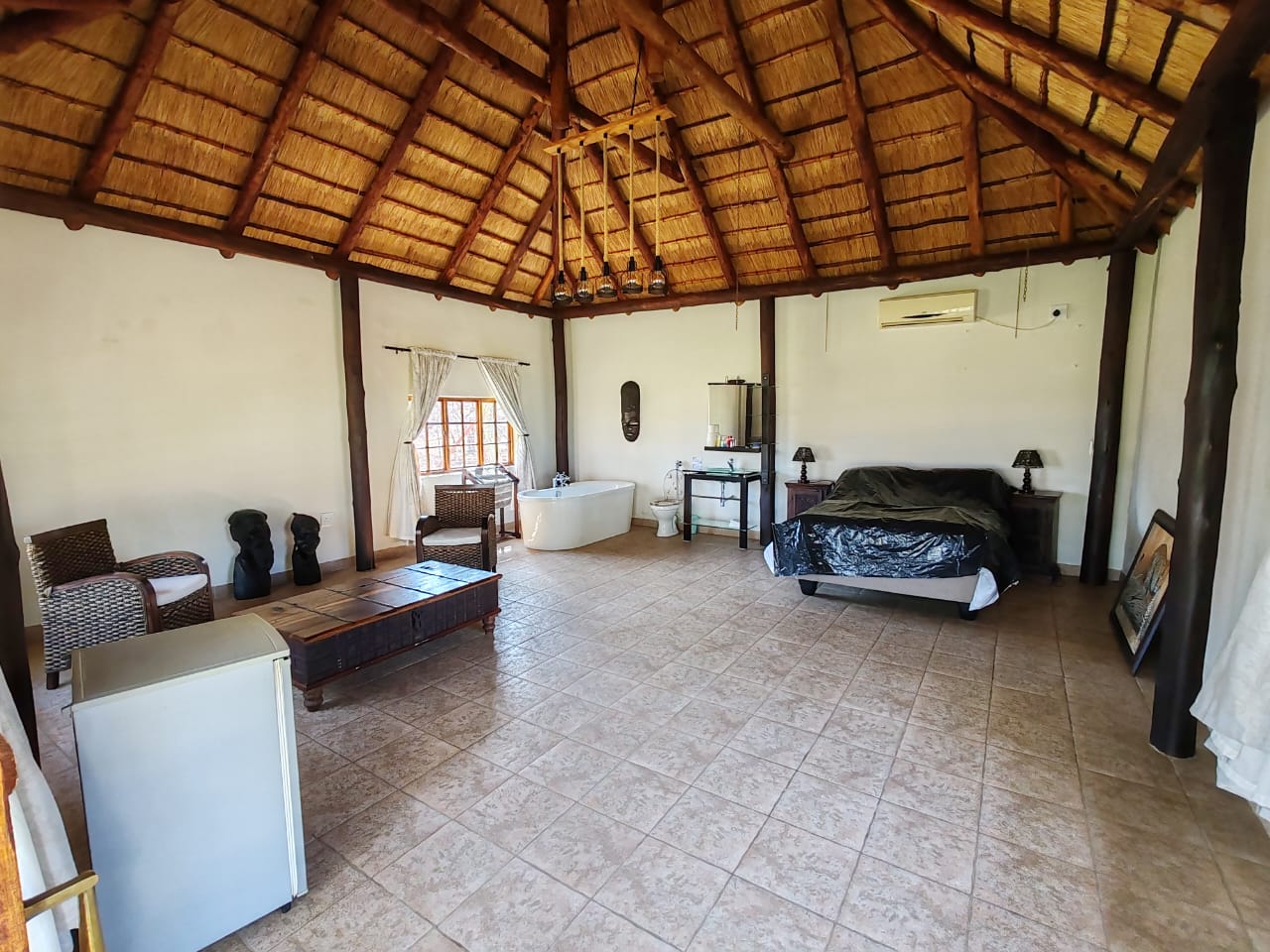This venue can cater for a wedding, or any large gathering. Built apart is the Kitchen and pantry also under thatch.