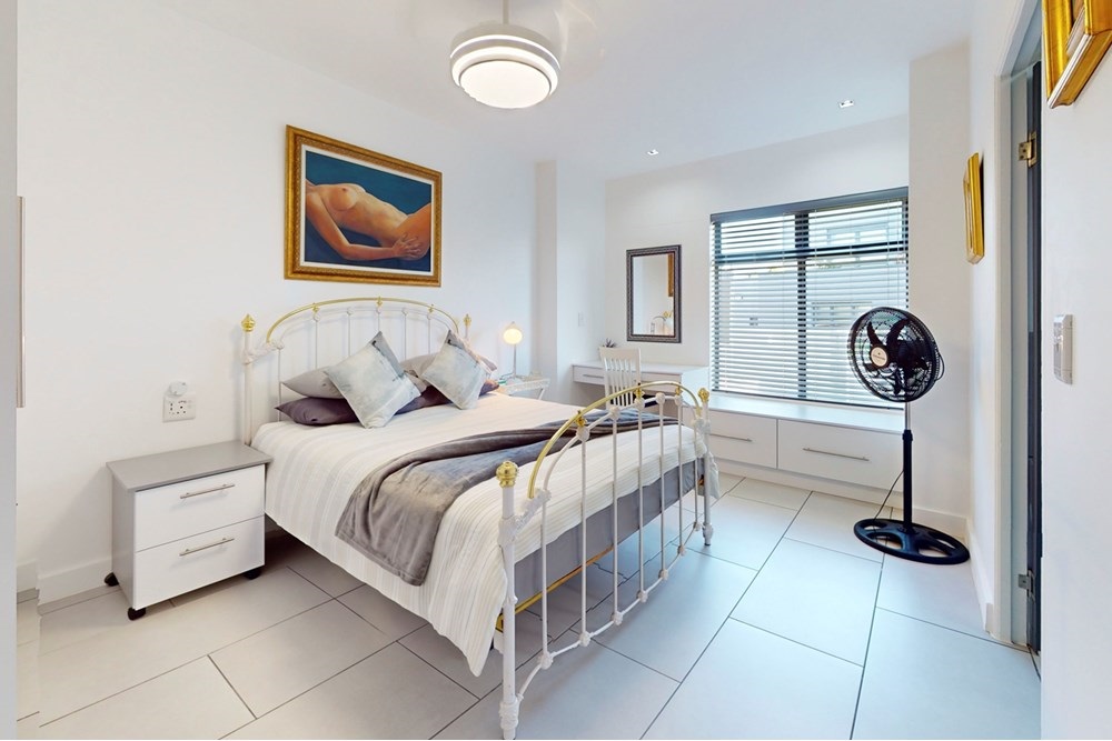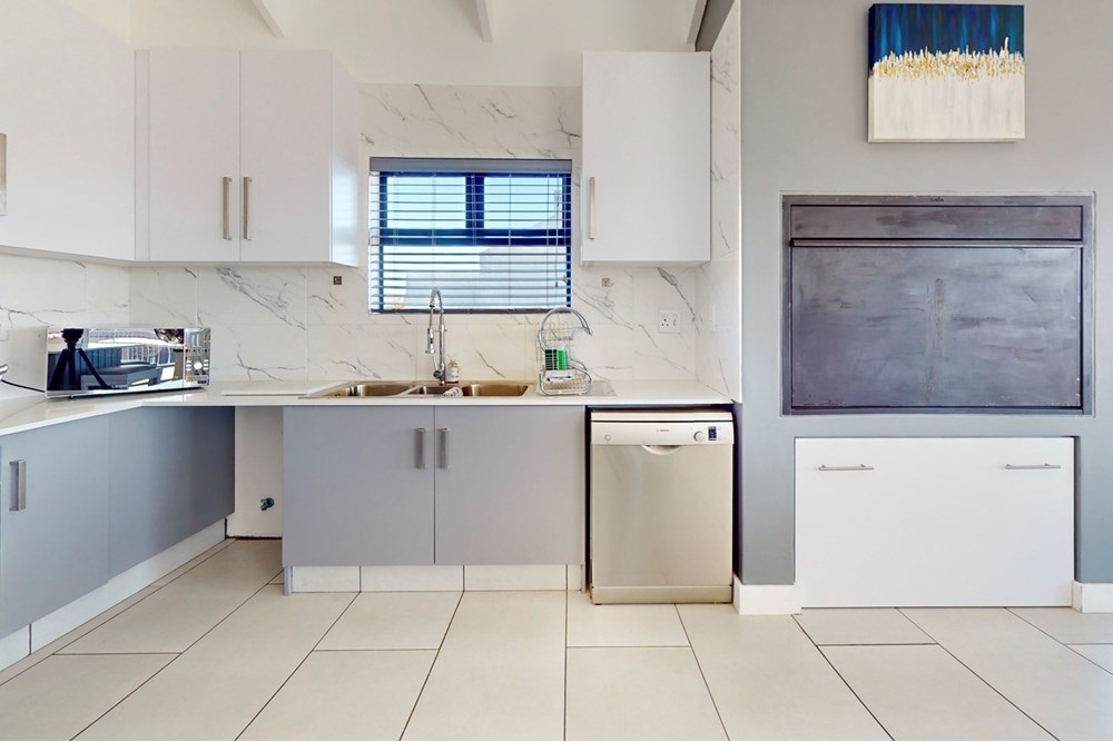 Ascending the private staircase, discover a spacious 3-bedroom home, one with en-suite bathroom, plus a family bathroom and guest cloakroom. The expansive open-plan lounge, dining, and kitchen area opens to a covered balcony offering spectacular lagoon views. A built-in braai ensures memorable gatherings with family and friends. Currently a sought-after Airbnb rental.