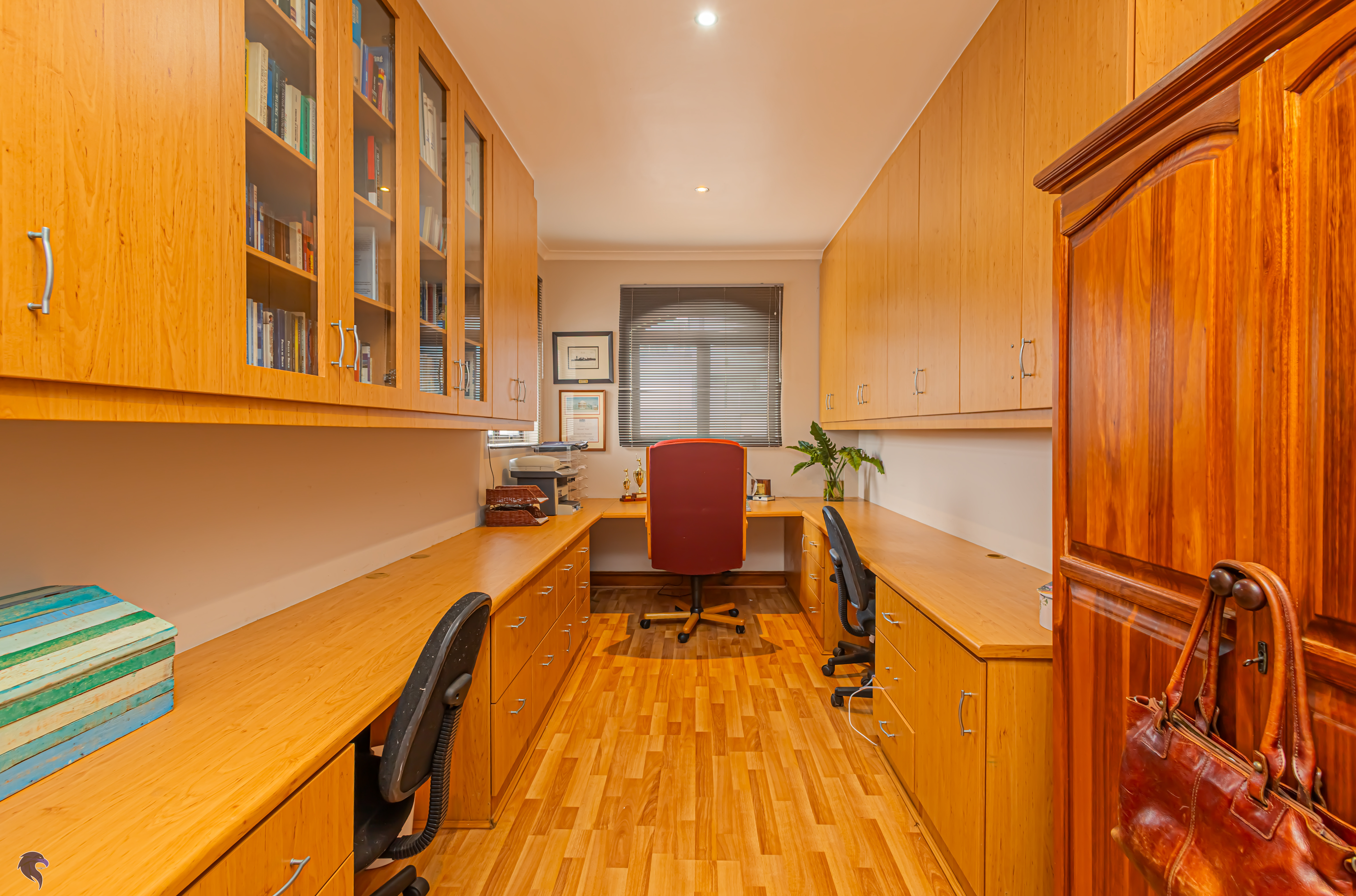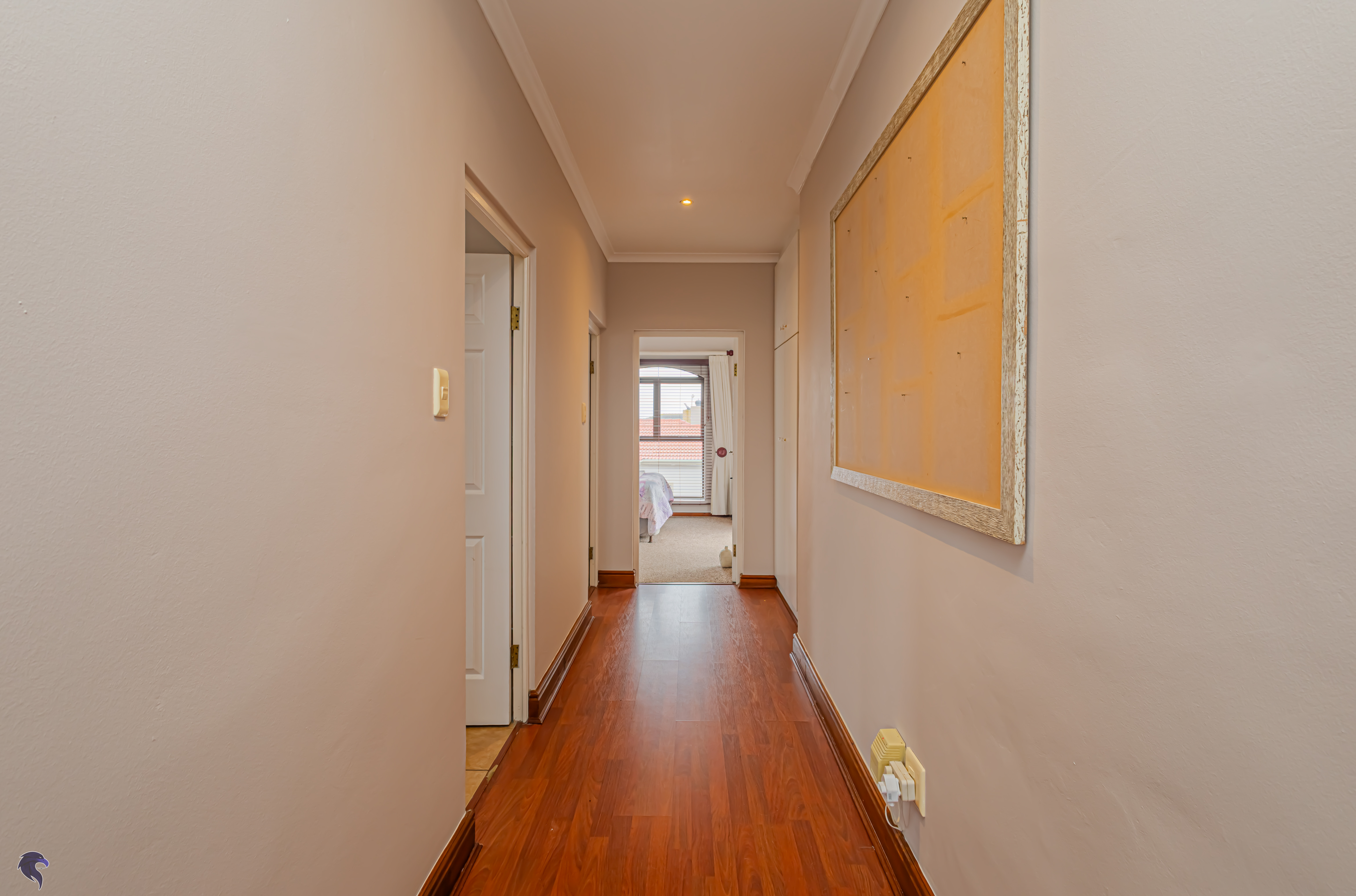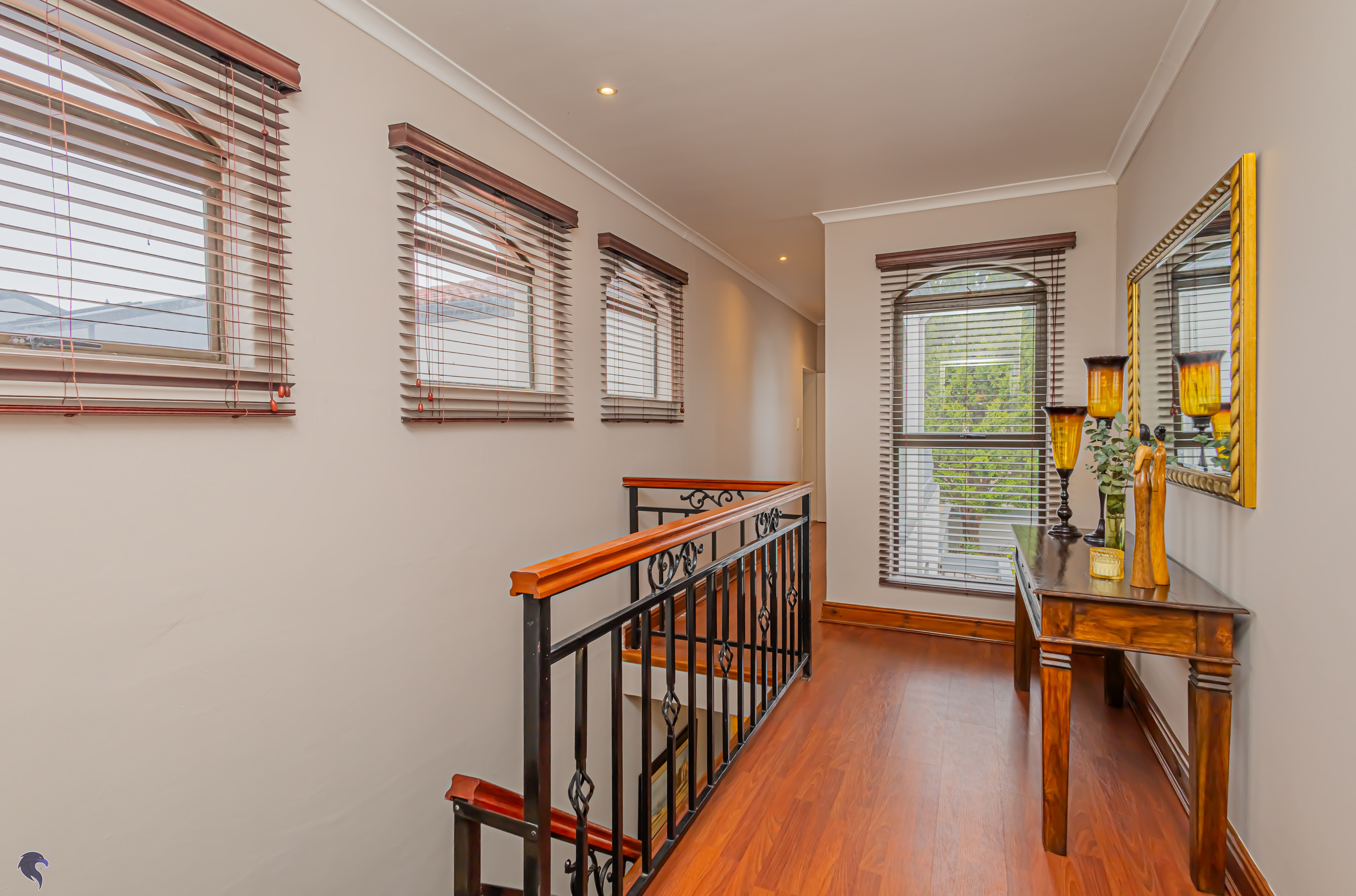 Upstairs, you’ll find four comfortable bedrooms — two have their own en-suite bathrooms, while the other two share a family bathroom. Step onto the balcony to catch a breeze and soak up the Myburgh Park views.