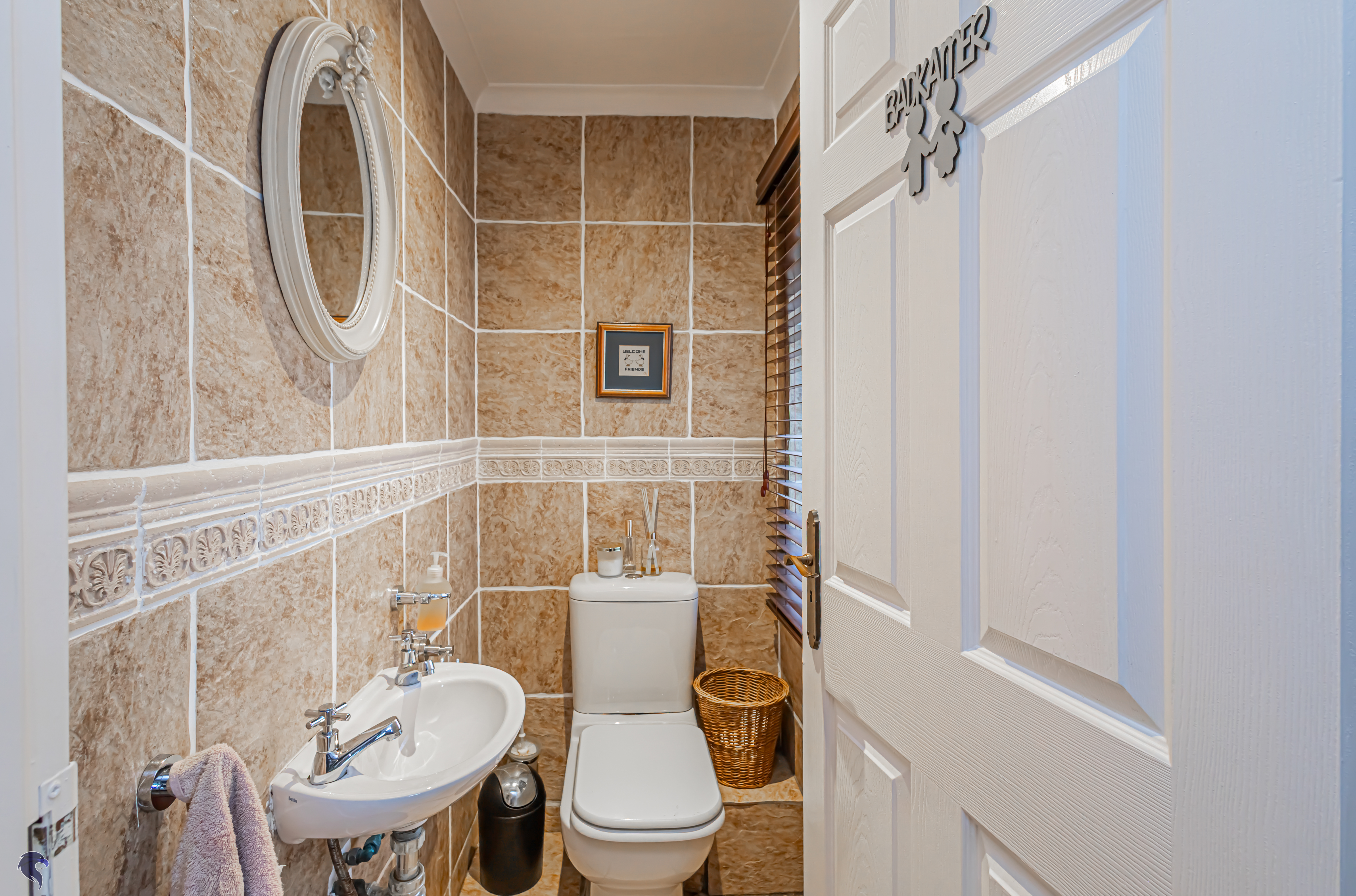 There’s plenty of room to unwind with two living areas: an informal spot with a built-in bar for weekends with friends, and a formal sitting room for quieter nights in. A guest loo is conveniently located downstairs for guests to use.