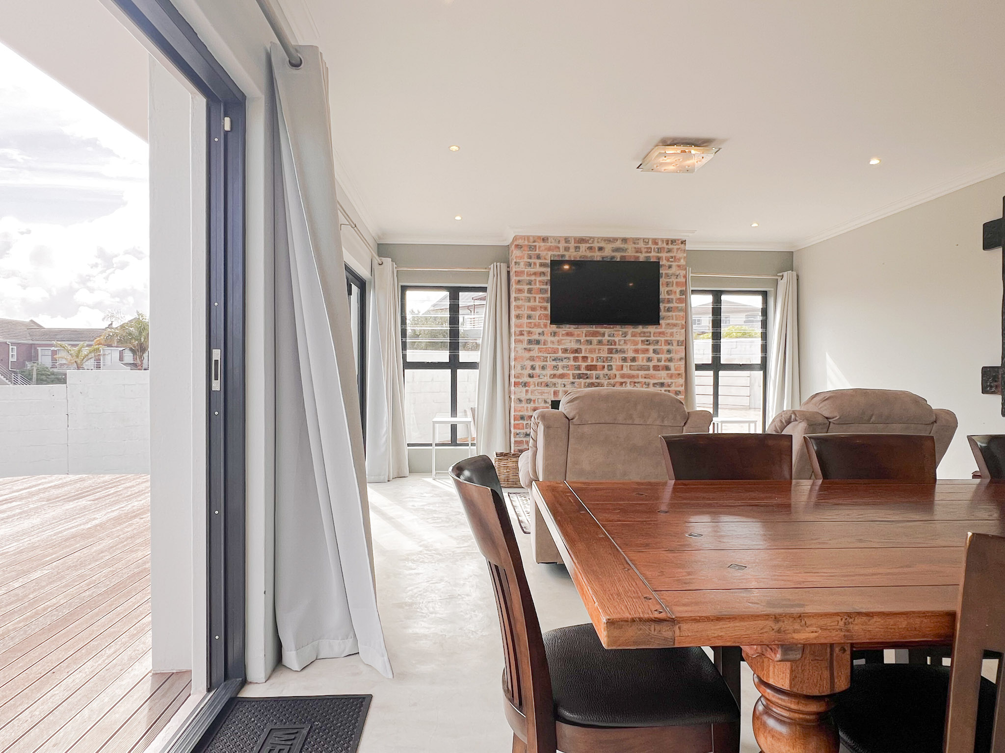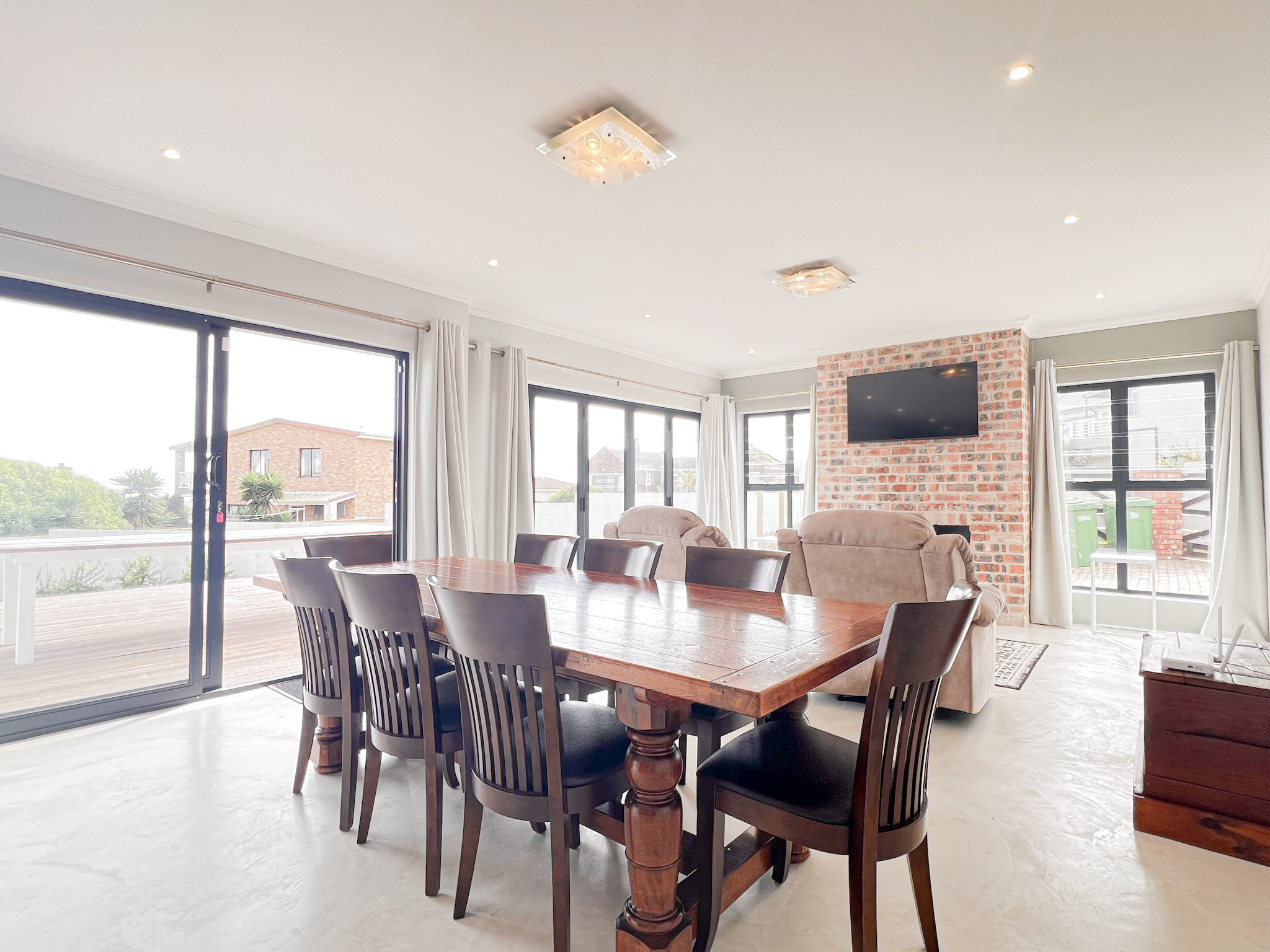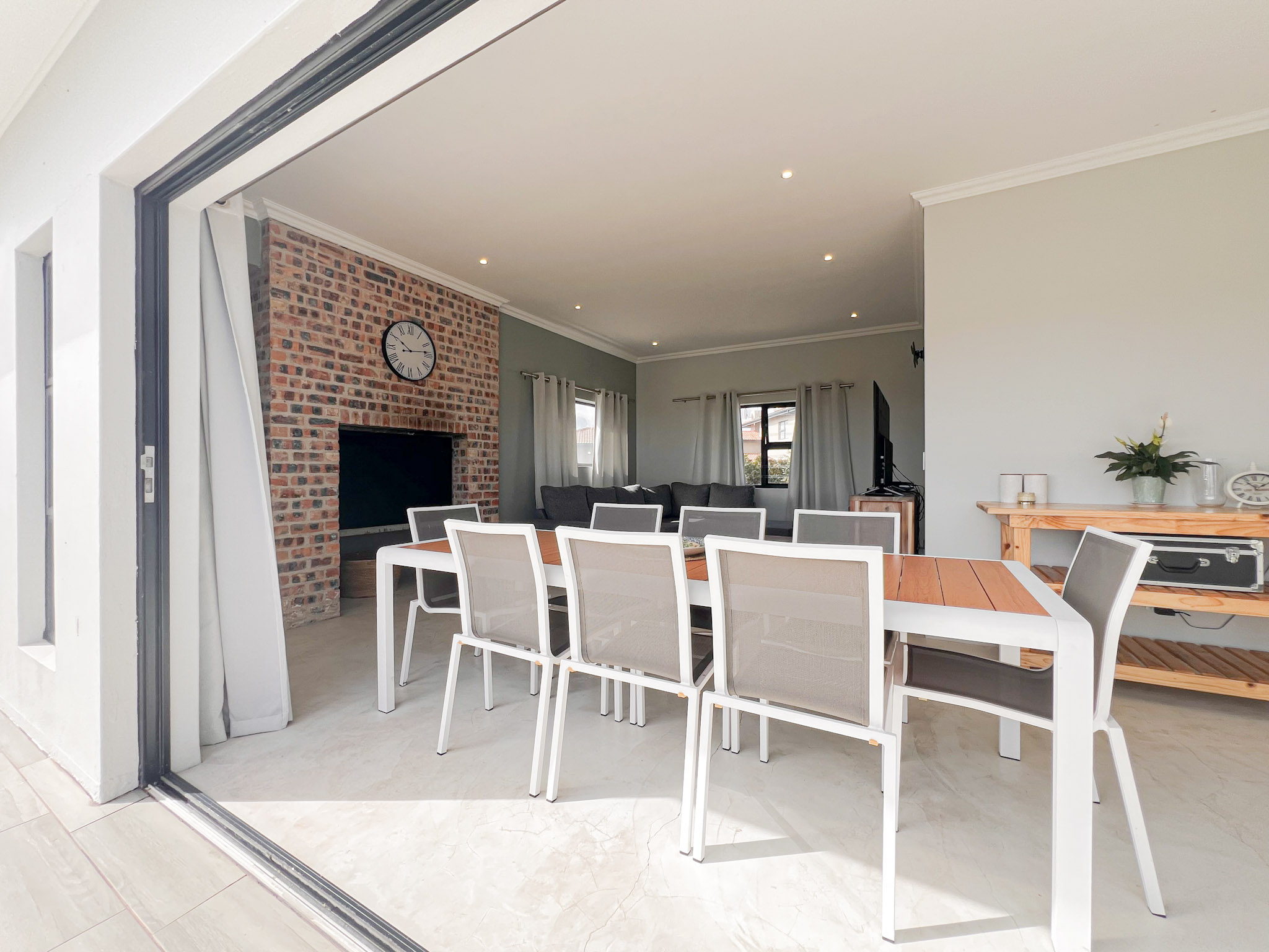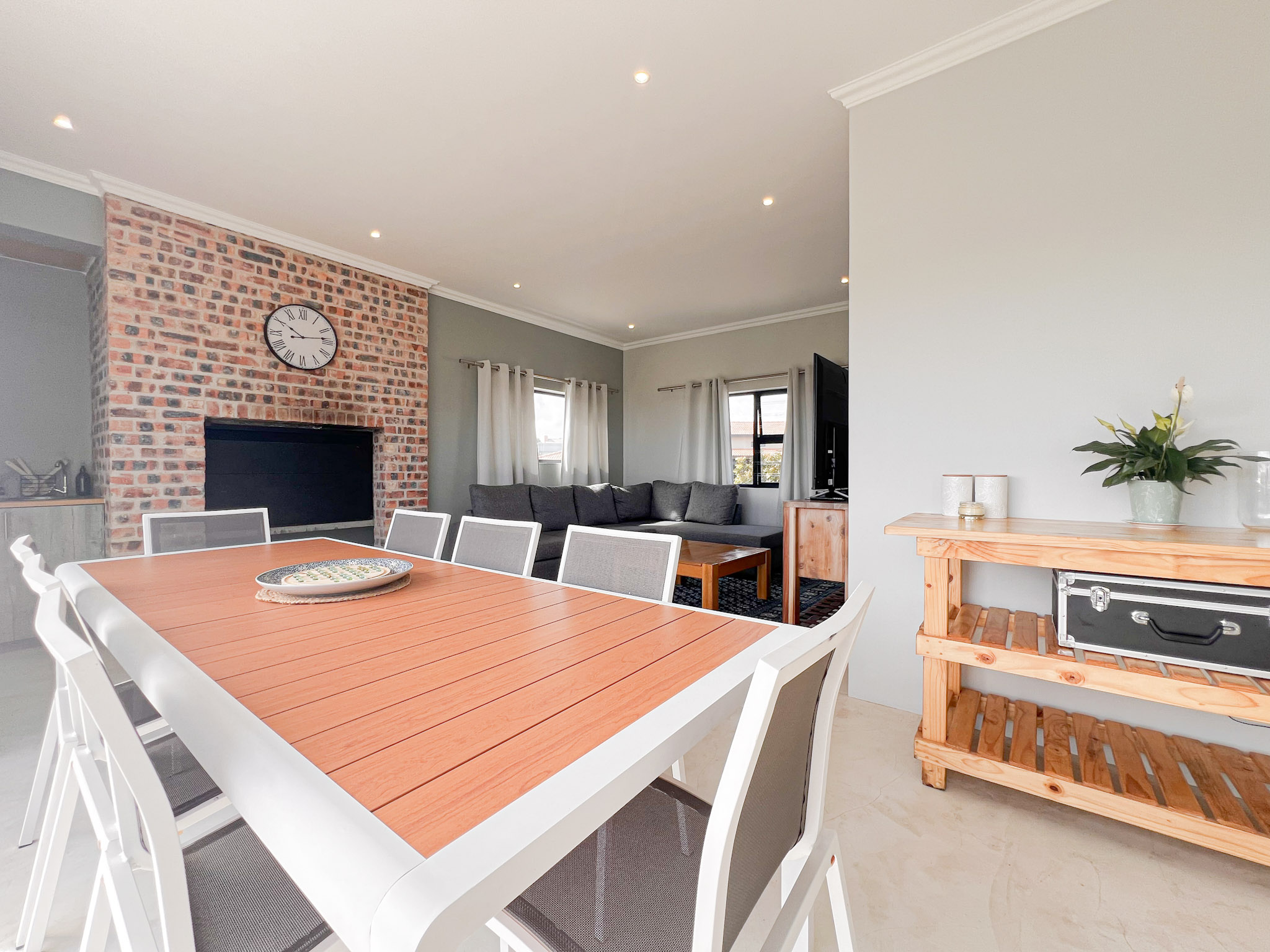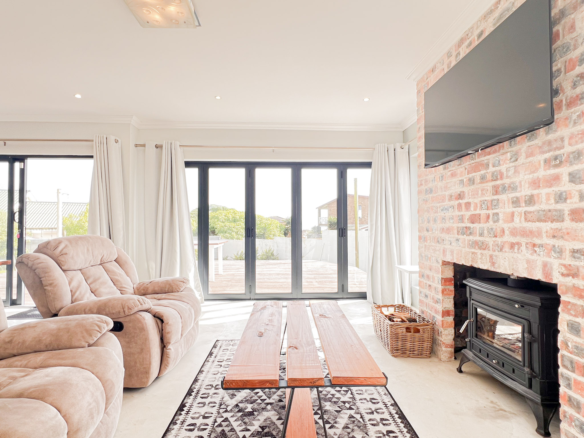 A sunny upstairs lounge with an indoor braai – perfect for entertaining no matter the weather