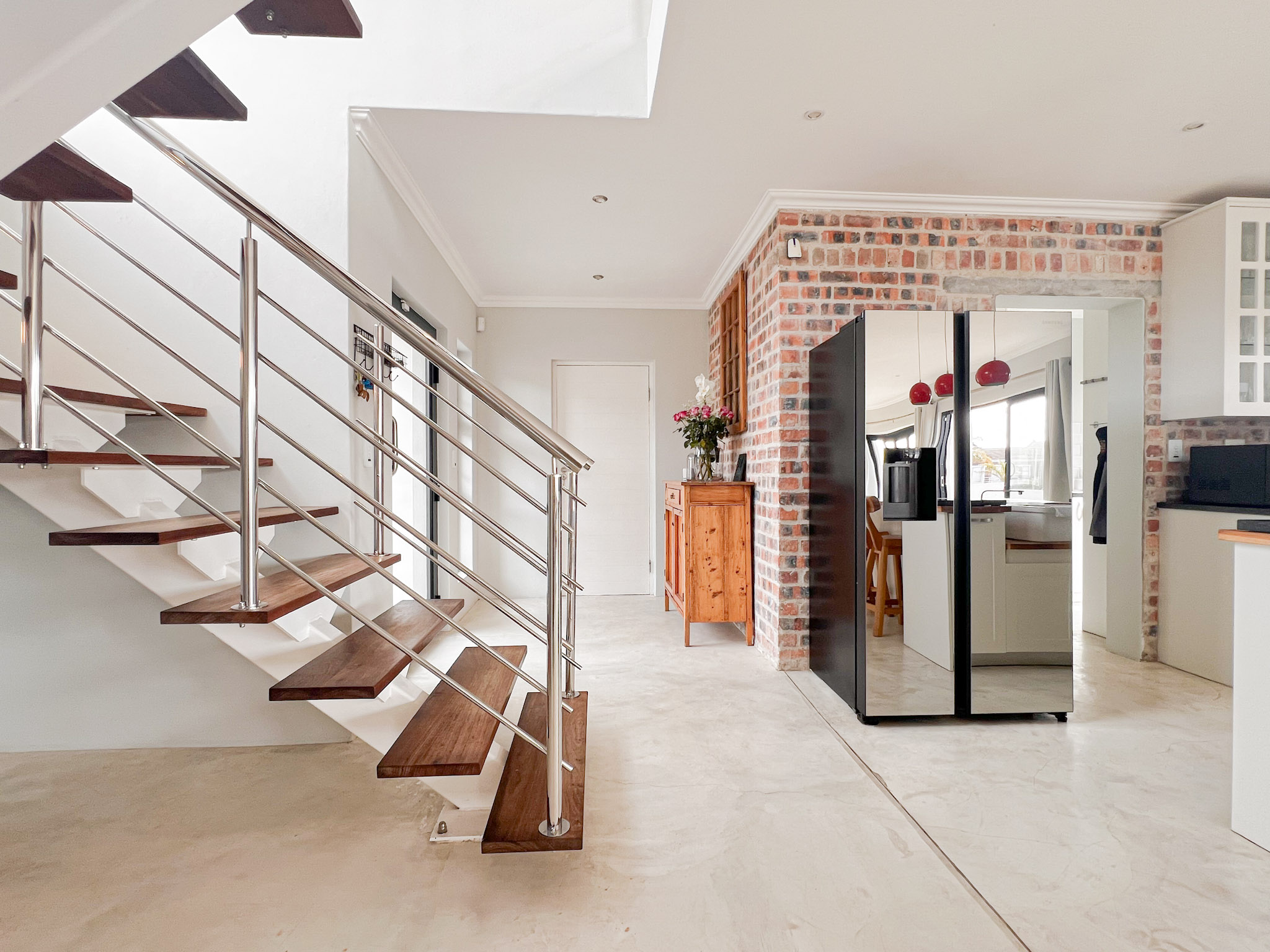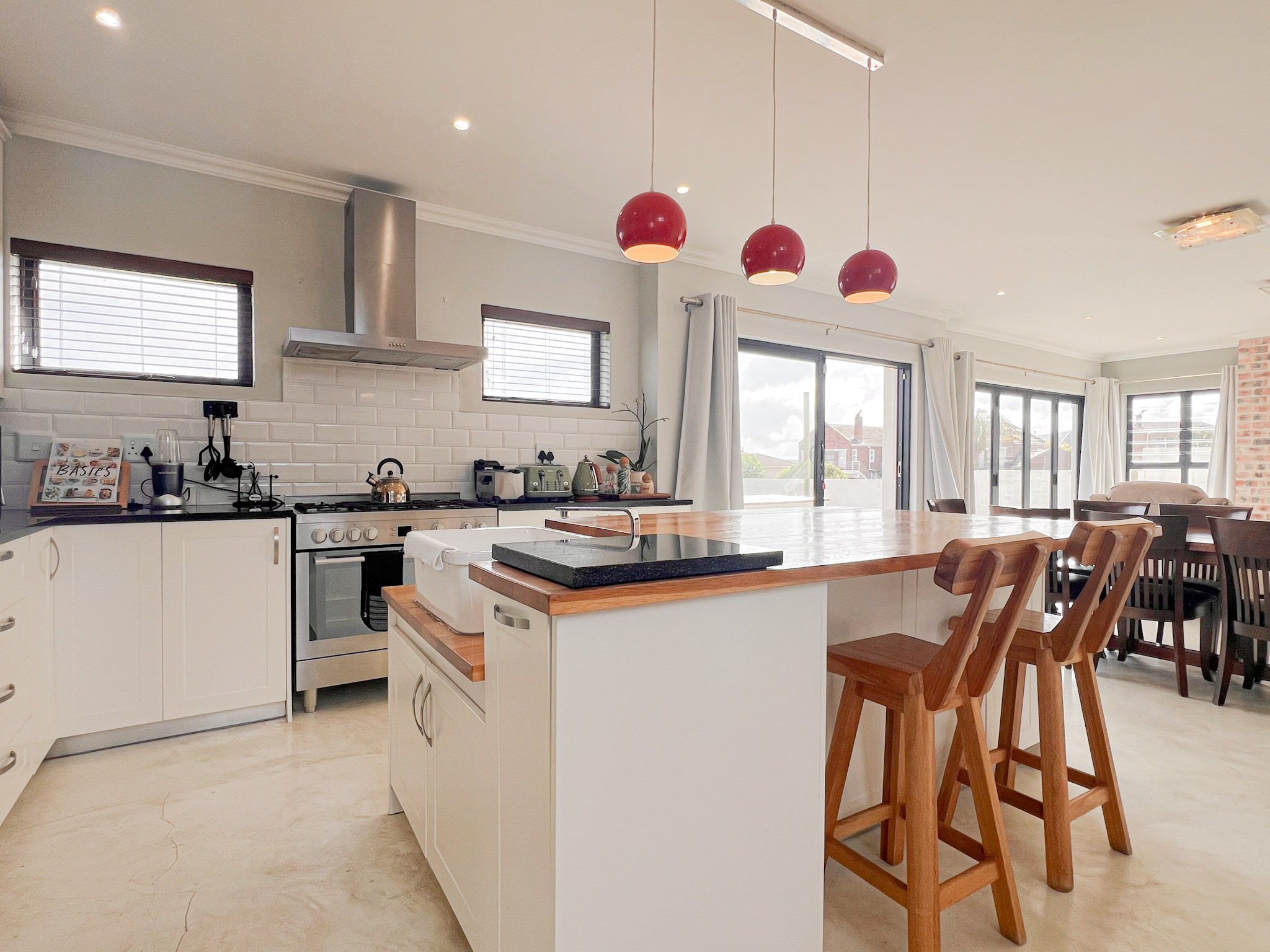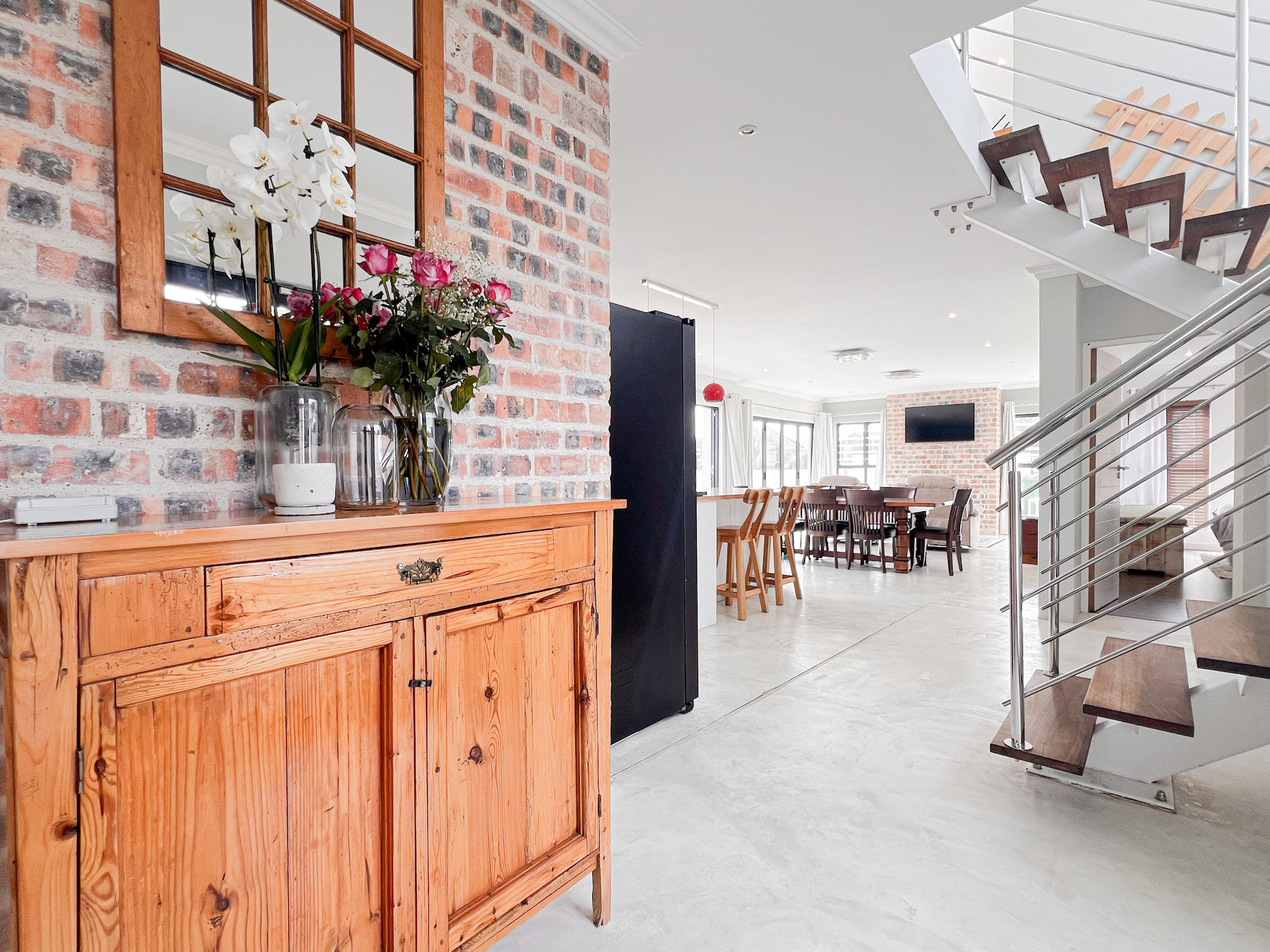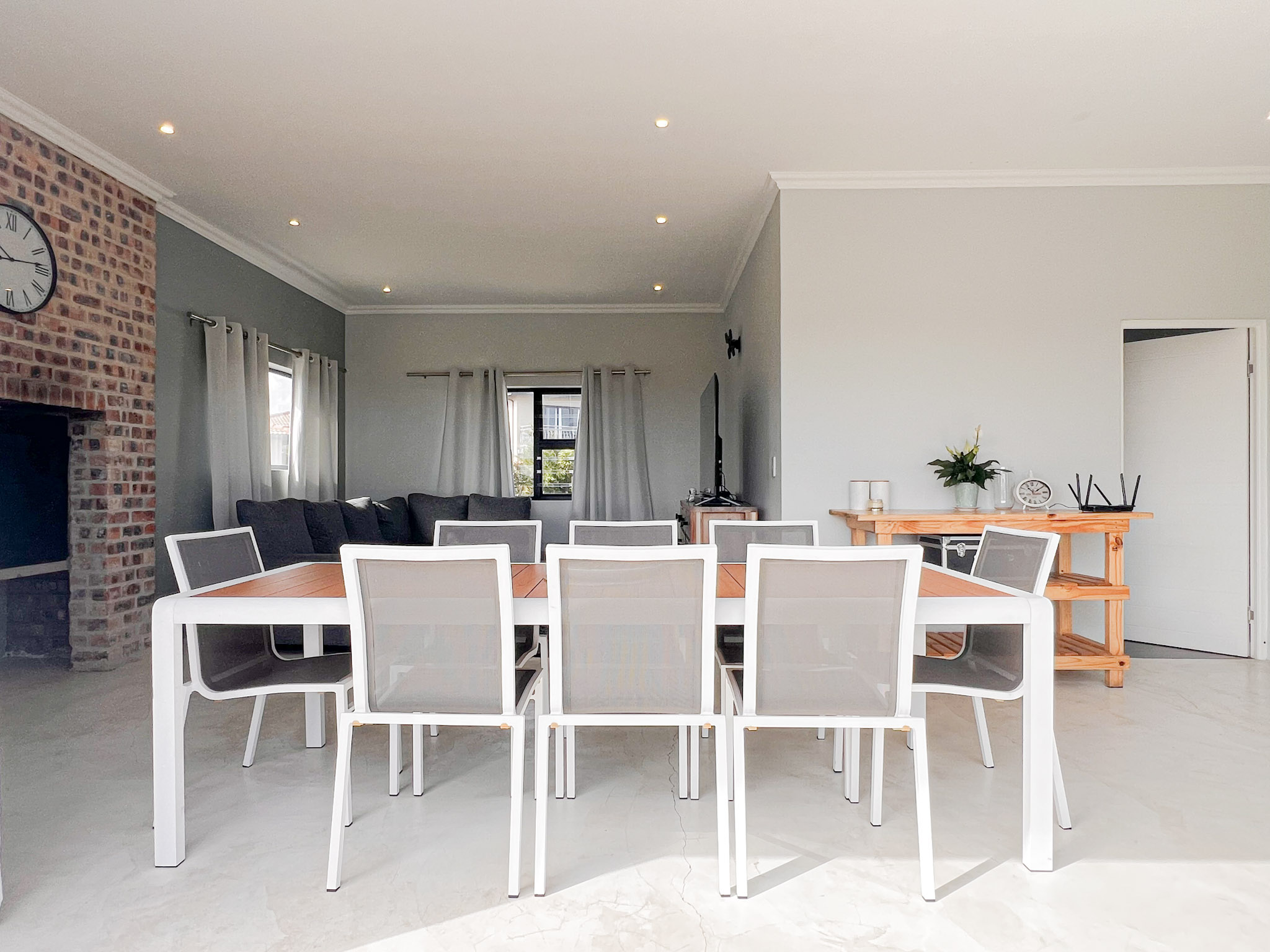 A sunny upstairs lounge with an indoor braai – perfect for entertaining no matter the weather