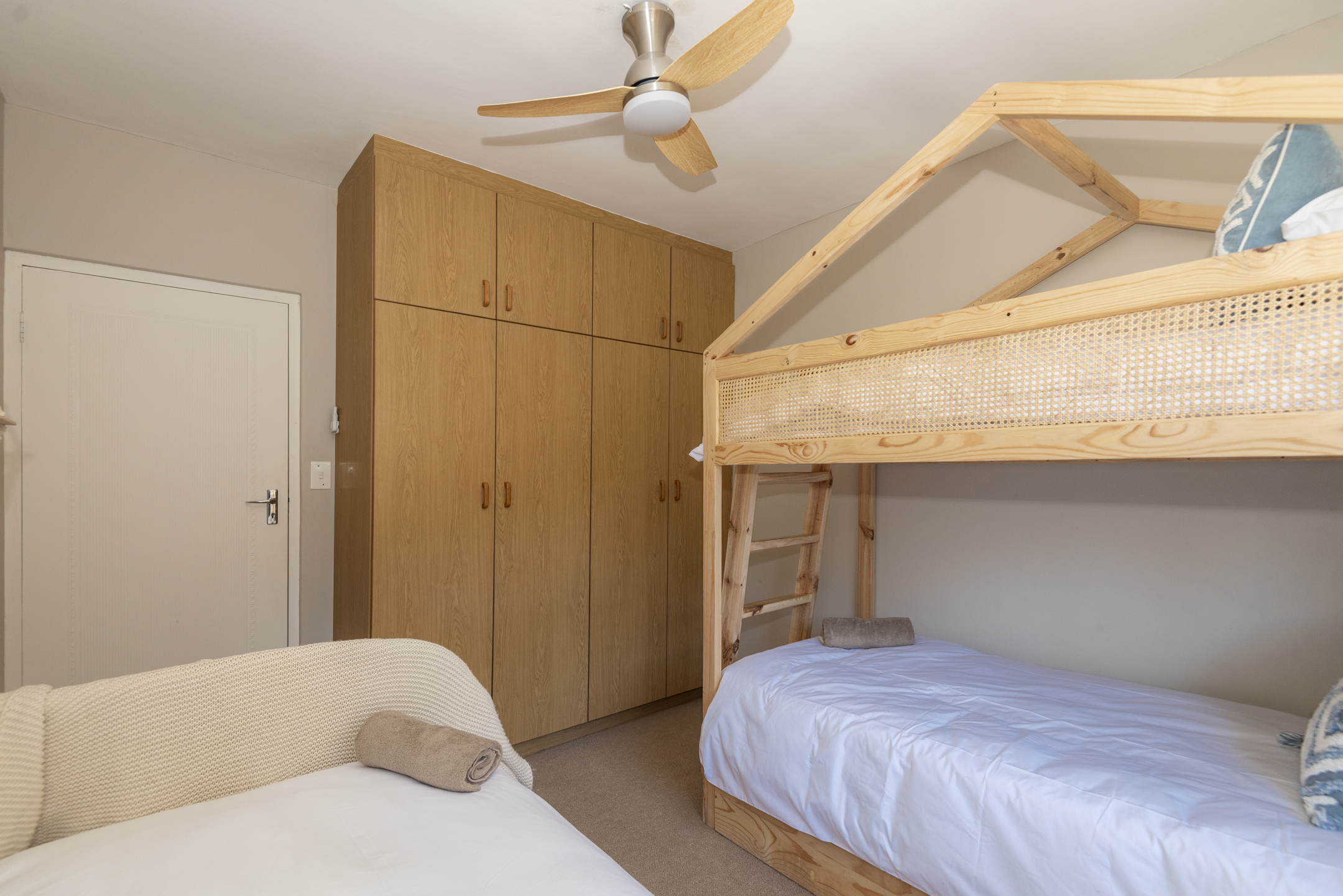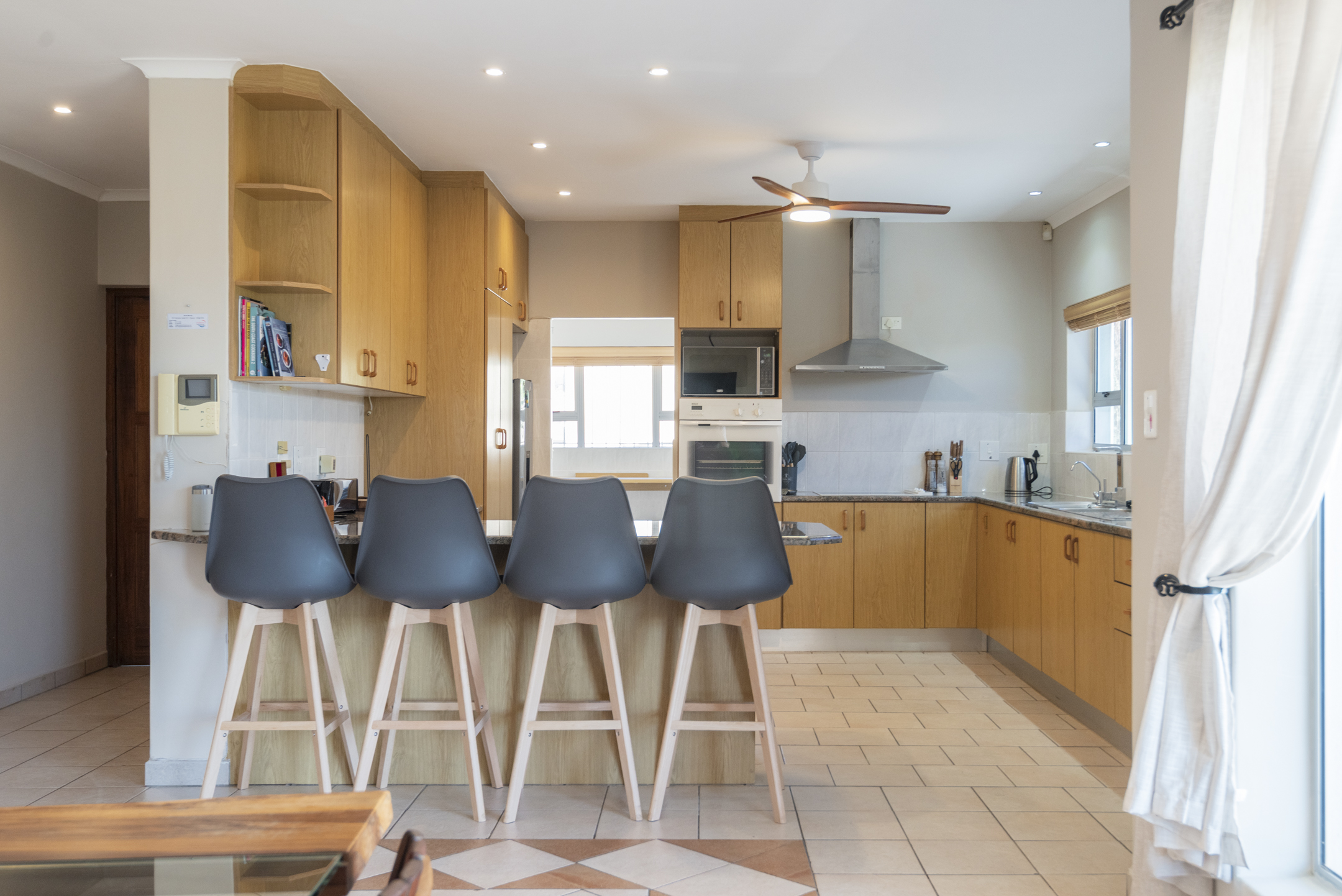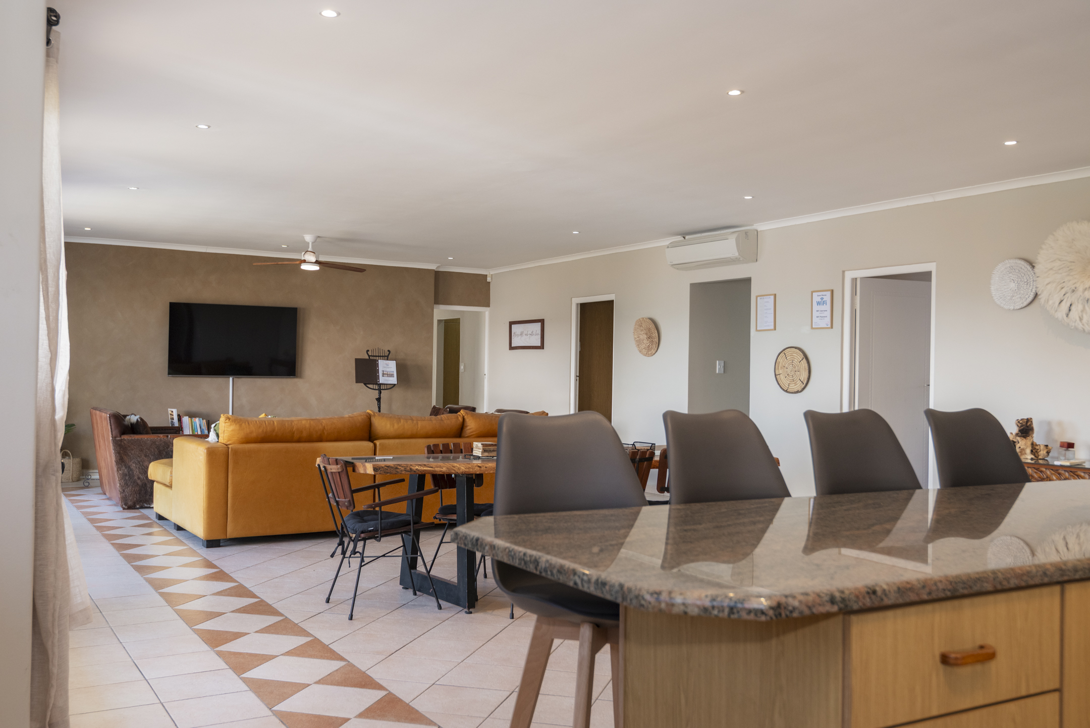 The open-plan lounge and dining area connect effortlessly to the kitchen and bedrooms, while glass sliding doors invite you outdoors. Entertain in style in the oversized braai room, where the backdrop of the Langebaan lagoon creates a truly memorable setting for gatherings. With an air conditioner in the main living space, the home is perfectly equipped for Langebaan’s ever-changing weather.