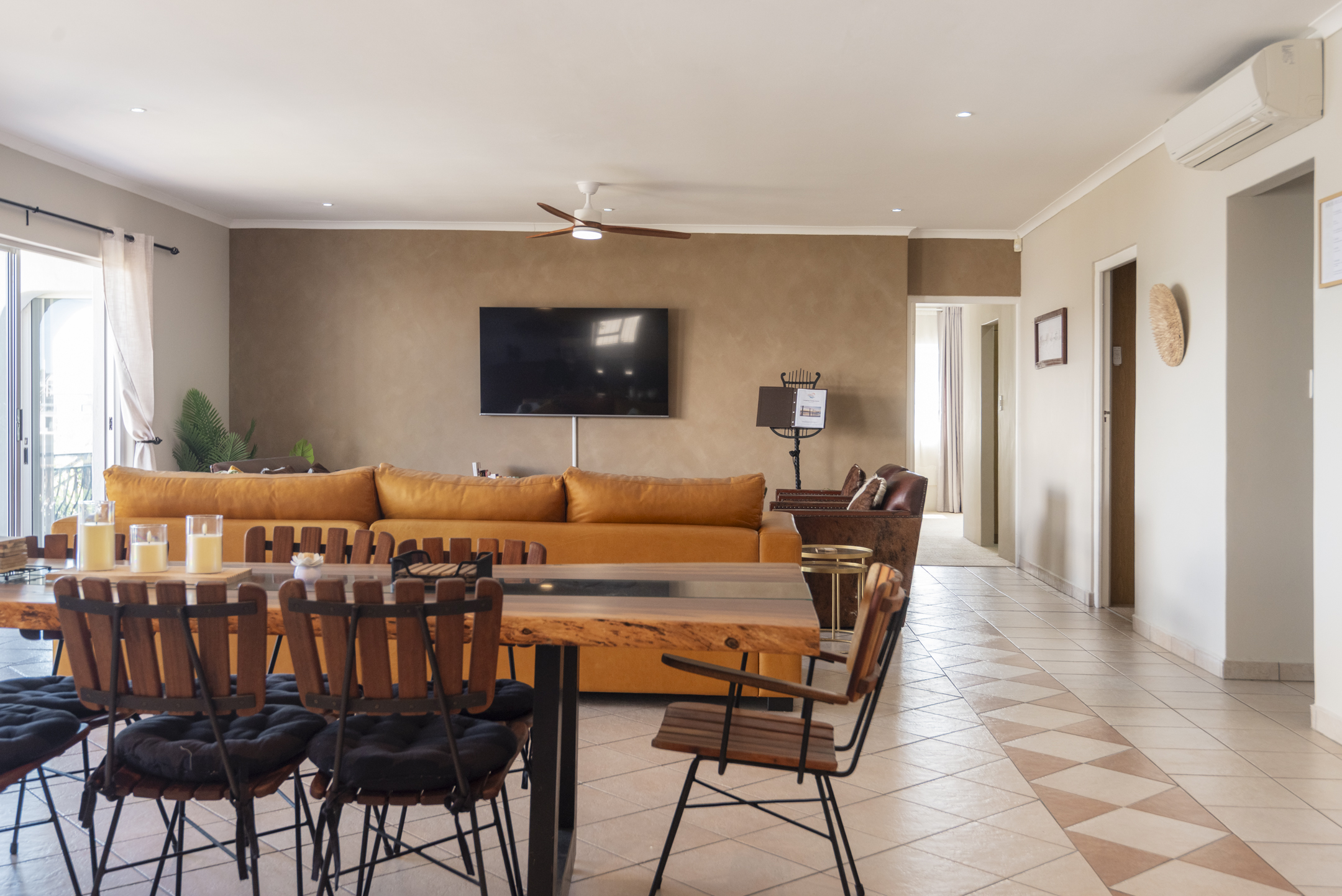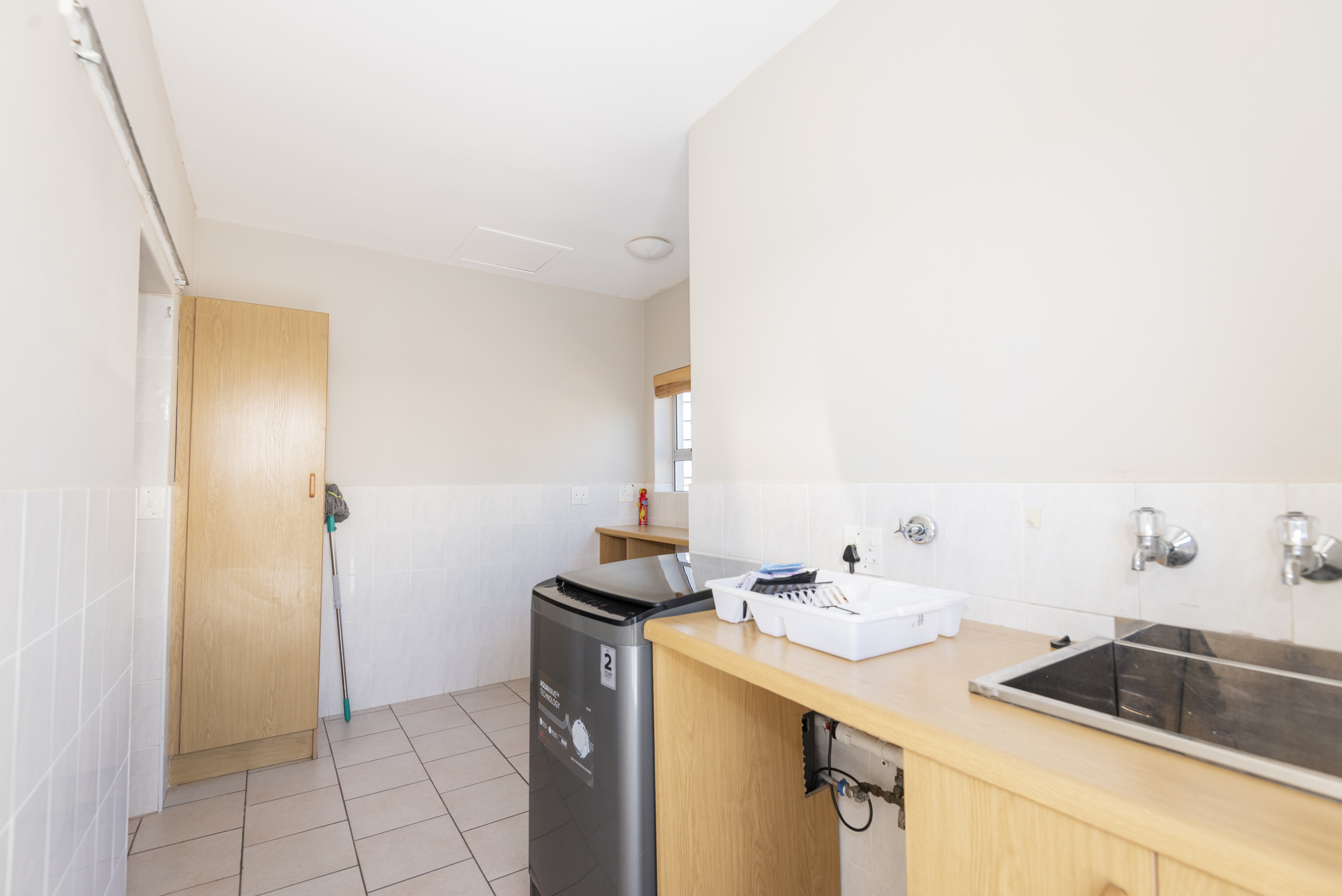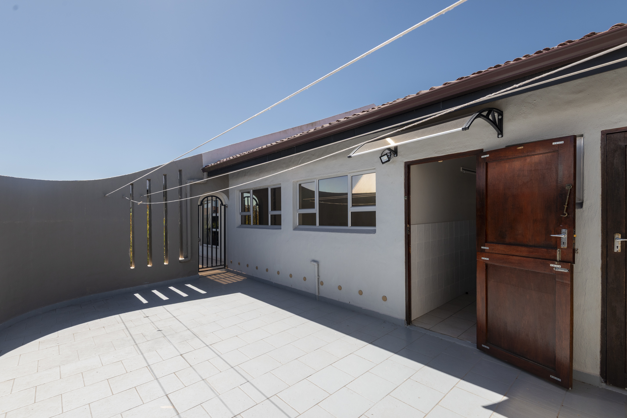 The open-plan lounge and dining area connect effortlessly to the kitchen and bedrooms, while glass sliding doors invite you outdoors. Entertain in style in the oversized braai room, where the backdrop of the Langebaan lagoon creates a truly memorable setting for gatherings. With an air conditioner in the main living space, the home is perfectly equipped for Langebaan’s ever-changing weather.