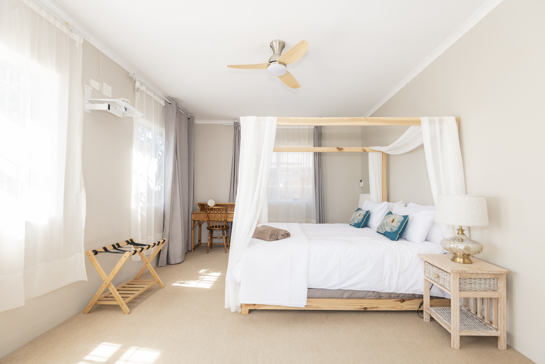 Accommodation is well thought out, with two family bedrooms sharing a bathroom and separate guest toilet, while the main suite enjoys its own en-suite bathroom and walk-through wardrobe. Ceiling fans in all bedrooms ensure year-round comfort.