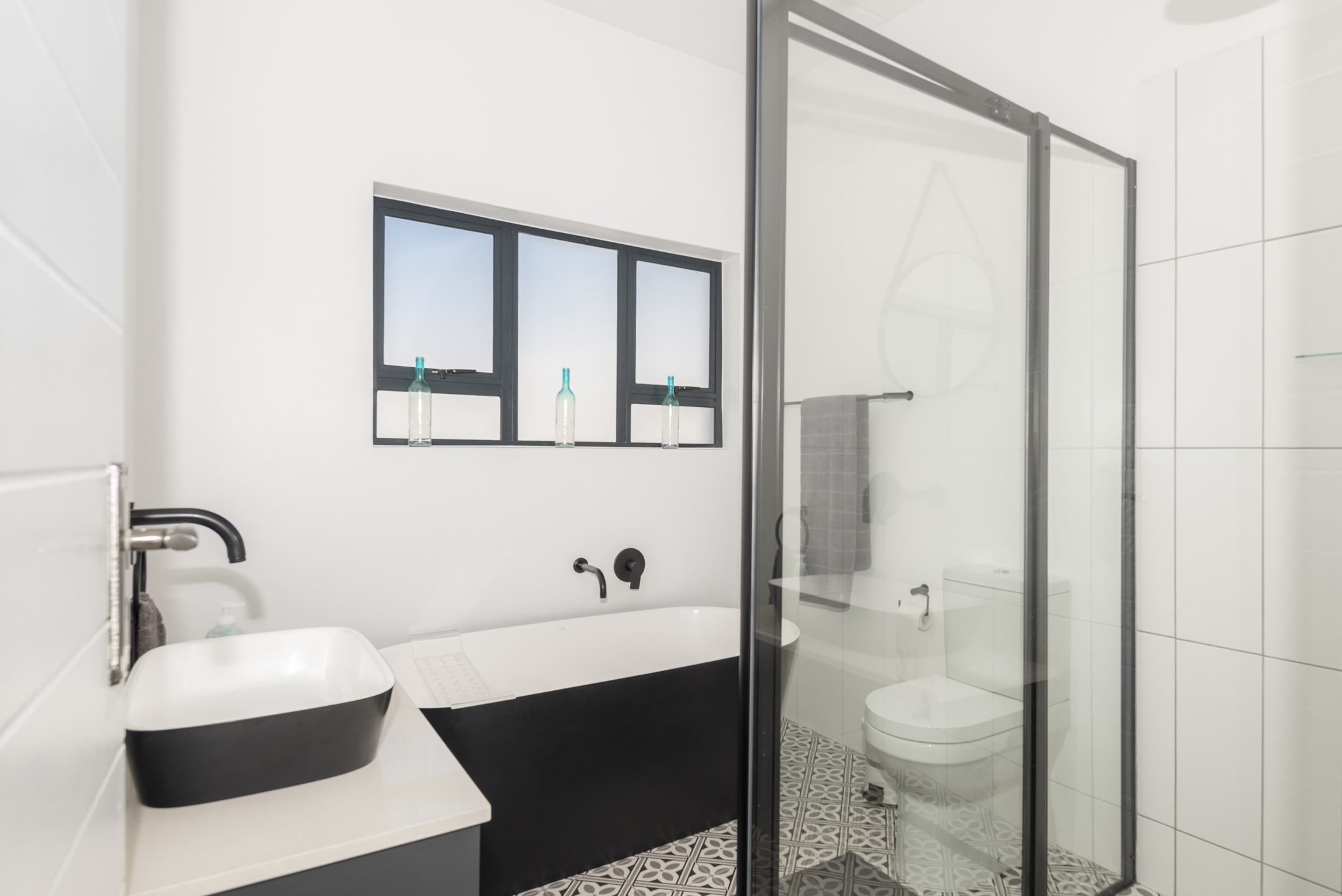 The ground floor offers its own open-plan kitchen and lounge, also fitted with a built-in braai and opening to a covered patio. Two additional en-suite bedrooms make this level ideal for guests or extended family. With its independent access and self-contained design, this space can easily be converted into a separate flatlet — perfect for dual living or as an income-generating rental unit.