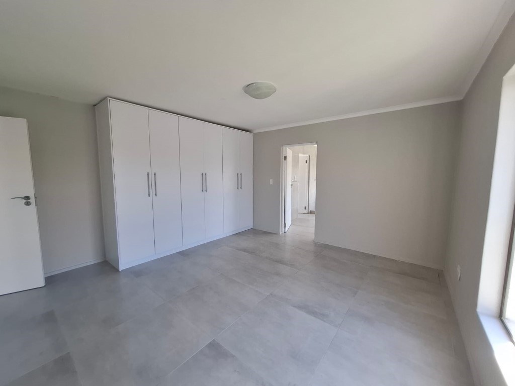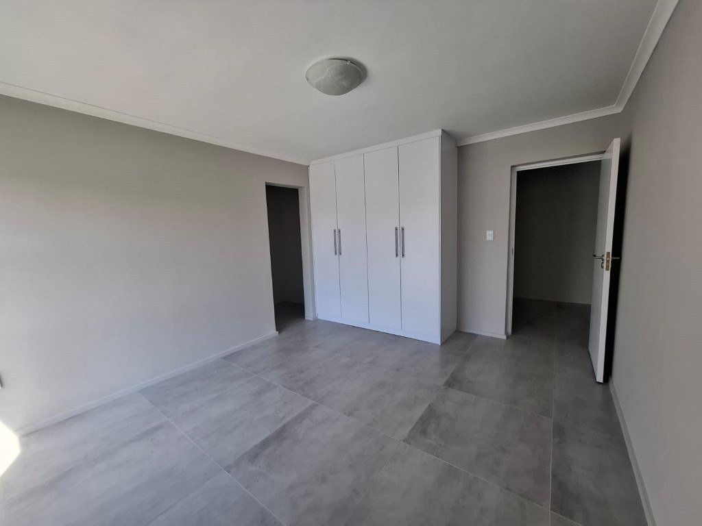 Entertaining is a breeze with the seamless transition from indoor to outdoor living. The tiled floors extend to a spacious patio featuring a built-in braai, perfect for al fresco dining. Sliding doors effortlessly connect the interior to the landscaped garden, creating an idyllic setting for gatherings.