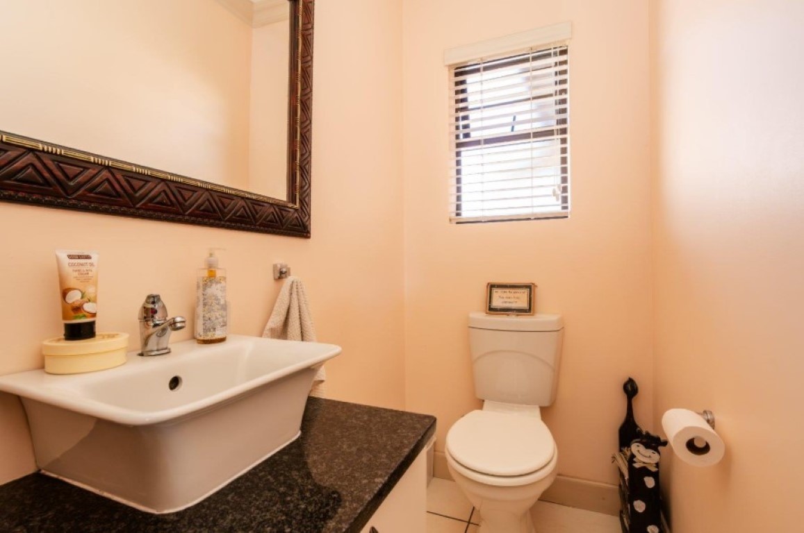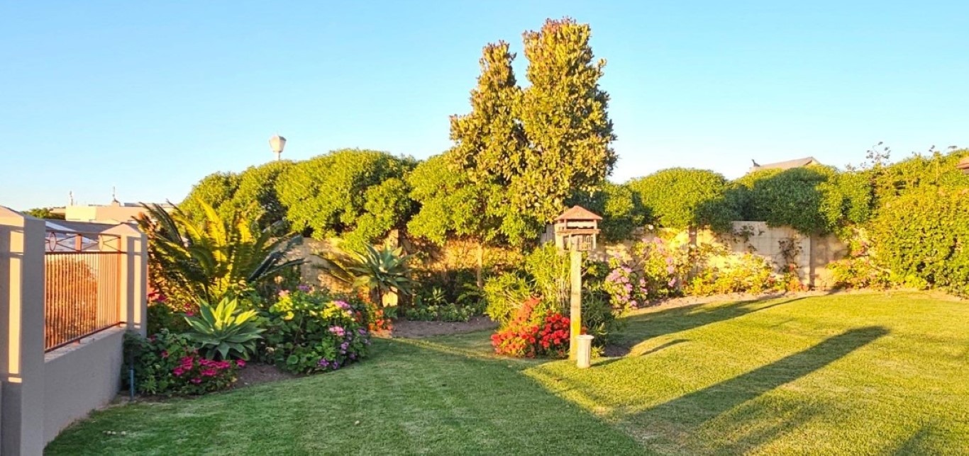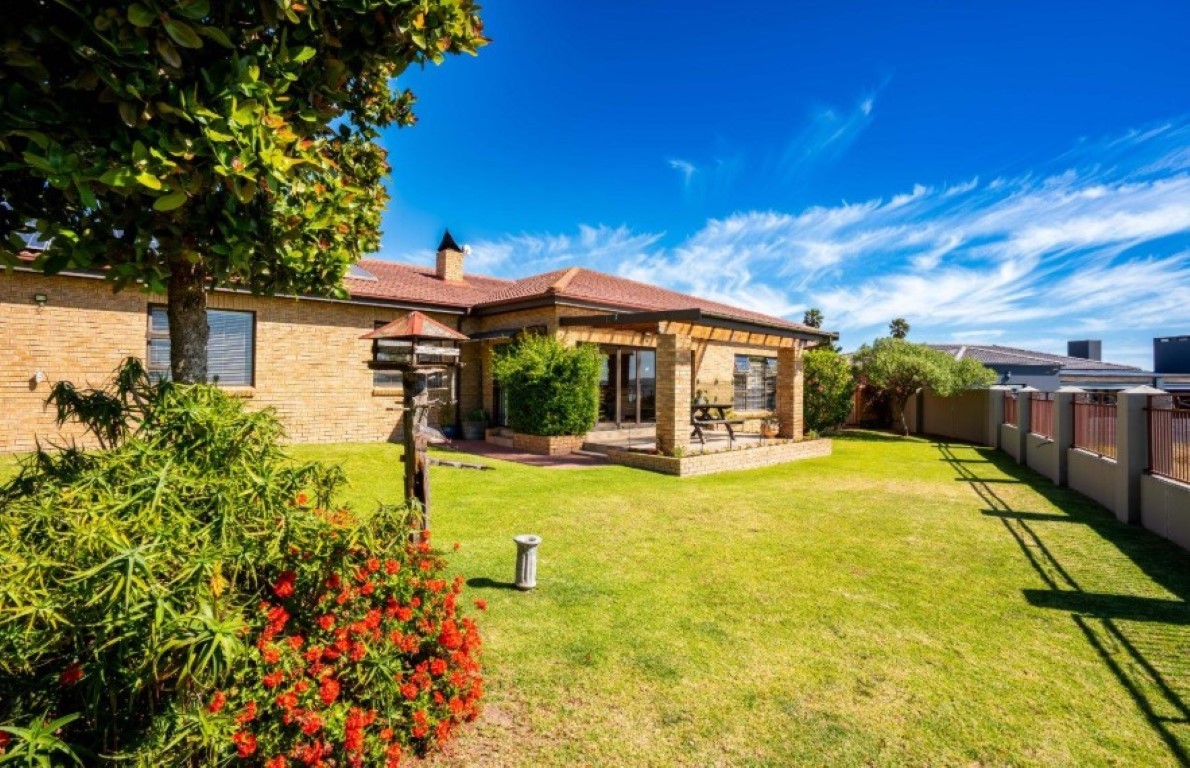 Situated in Myburgh Park, this single-level face-brick home (±367 m2) overlooks a greenbelt and offers uninterrupted views across the Langebaan Lagoon.