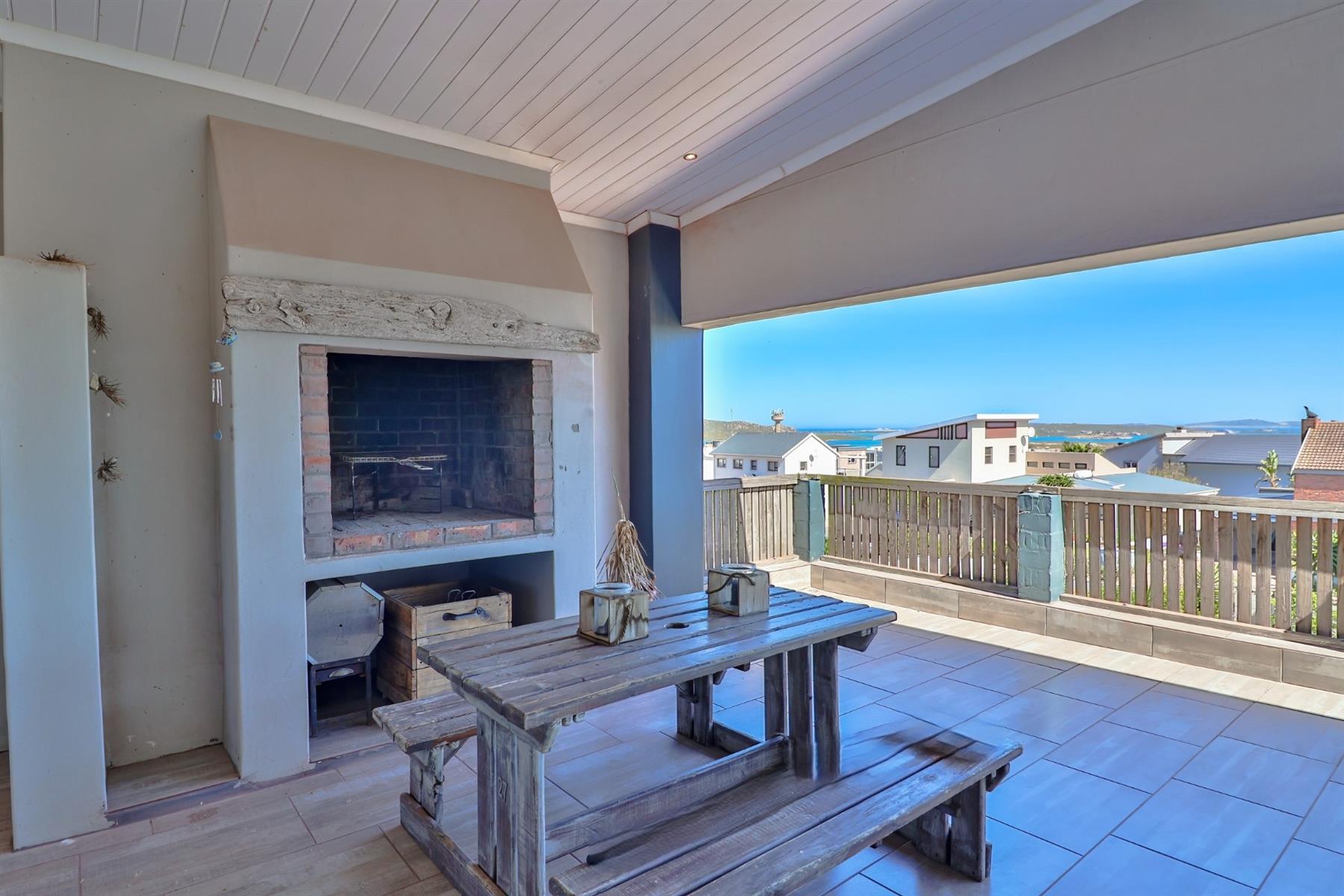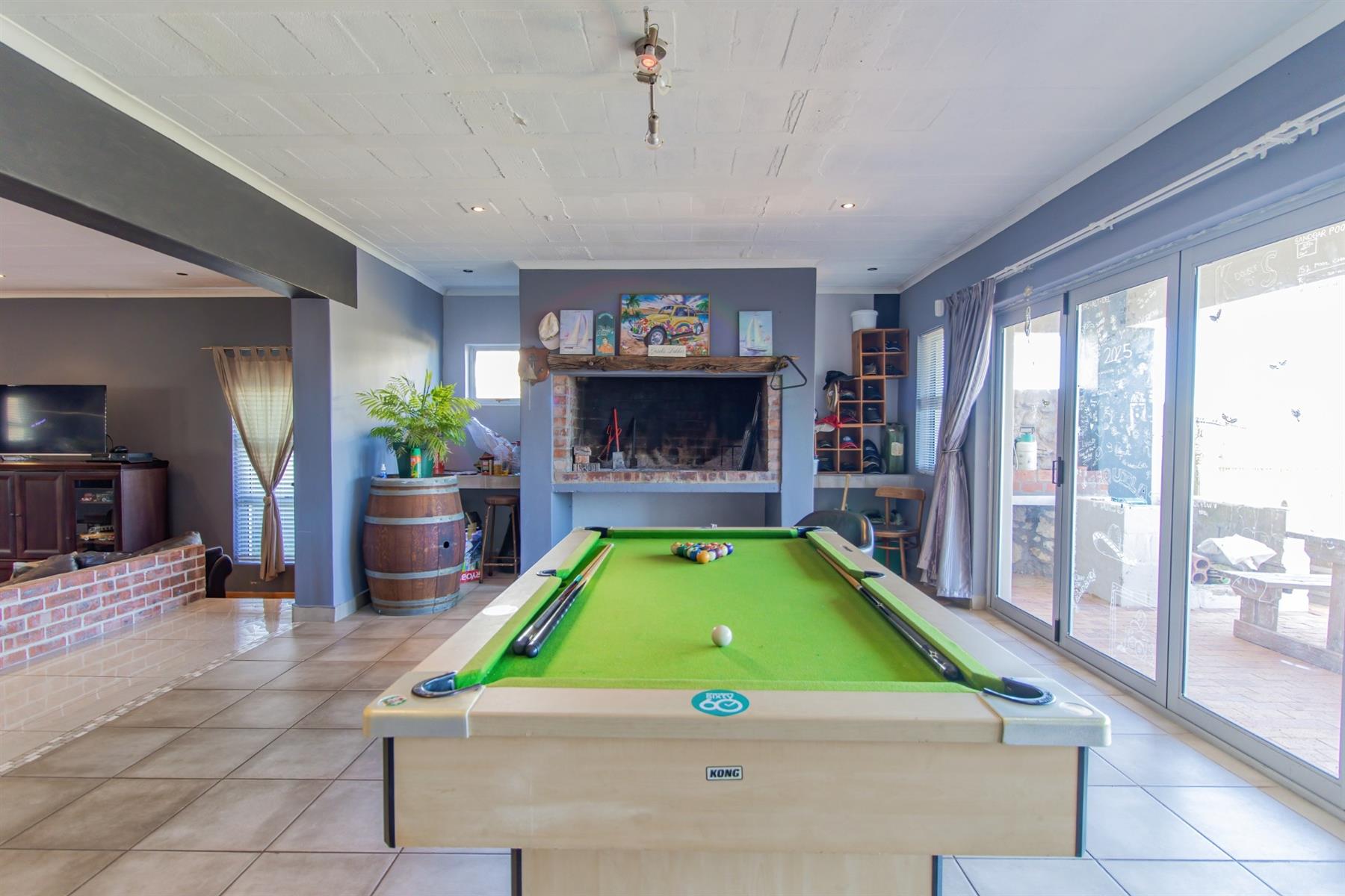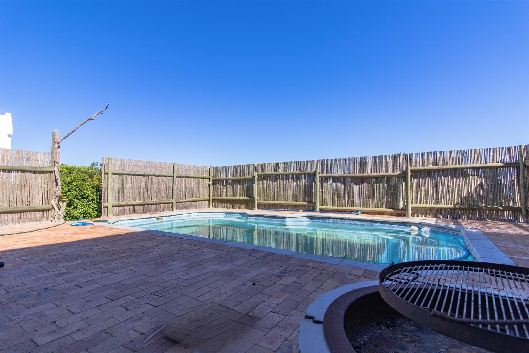 The ground floor entertainment area includes a guest toilet, built-in bar, and an indoor braai area with stacking doors that open onto a large patio—perfect for seamless indoor-outdoor living. Sunset views here are simply breathtaking, offering the perfect backdrop for evening relaxation.