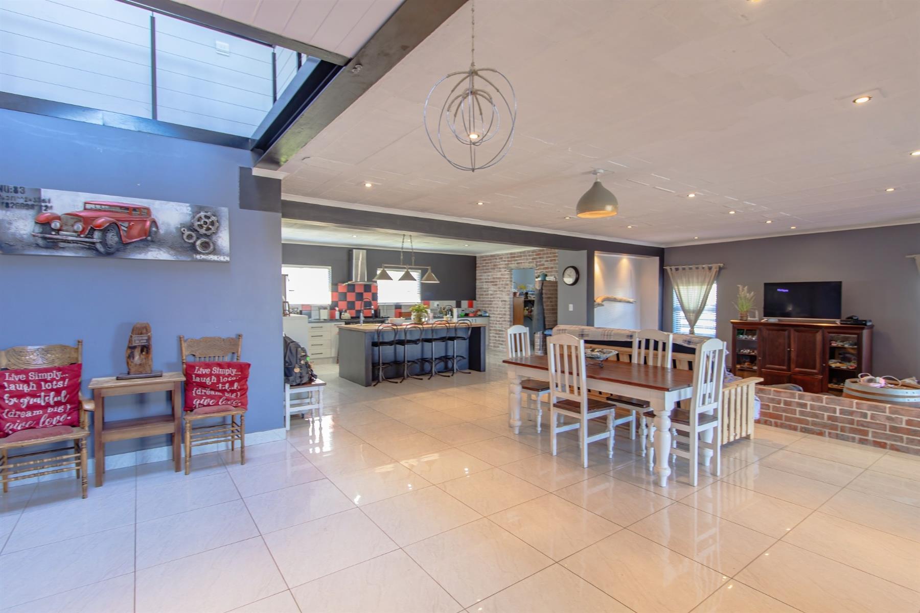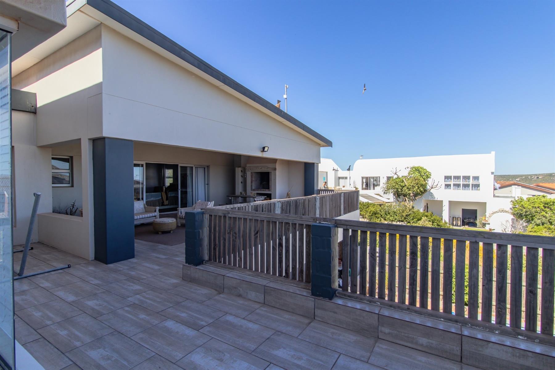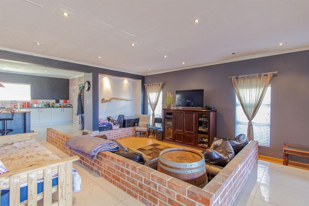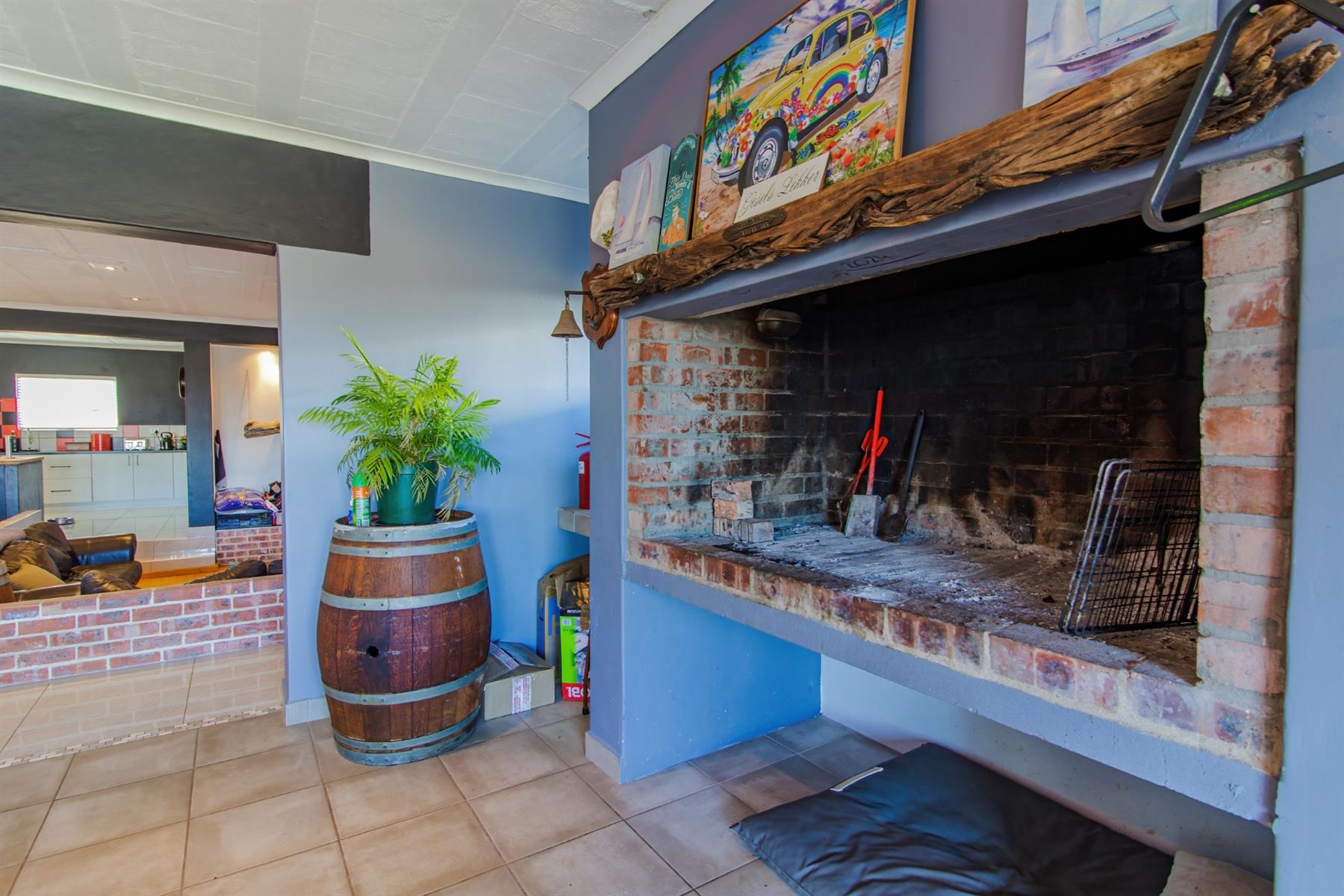 The ground floor entertainment area includes a guest toilet, built-in bar, and an indoor braai area with stacking doors that open onto a large patio—perfect for seamless indoor-outdoor living. Sunset views here are simply breathtaking, offering the perfect backdrop for evening relaxation.