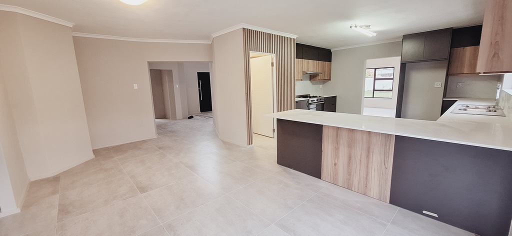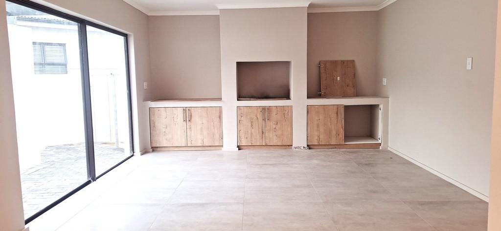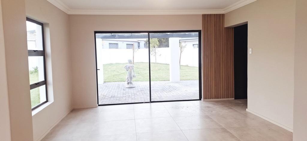 The dining room, with sliding doors leading to a large patio, is ideal for hosting gatherings and enjoying the beautiful Langebaan weather.