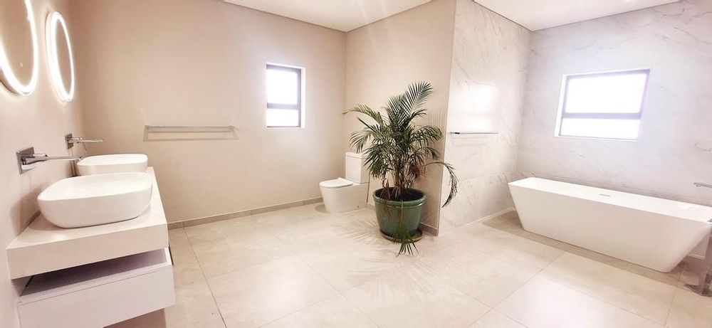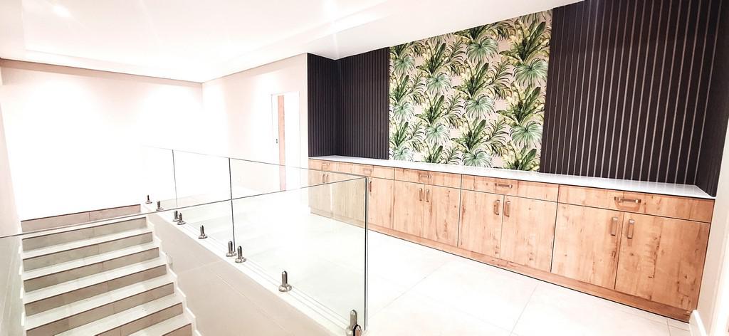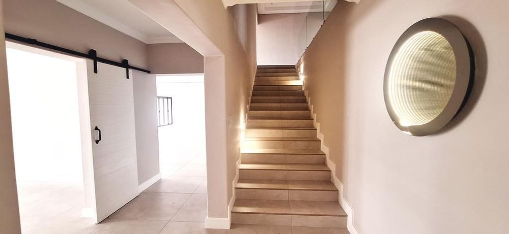 The five-car garage offers extensive parking and storage options, ideal for car enthusiasts or large families. Top-notch security features include a comprehensive security system, while the well-established garden with an irrigation system adds to the property's appeal. The fully walled yard ensures privacy, and the SunSynk backup power system enhances energy efficiency, making this home as practical as it is beautiful.