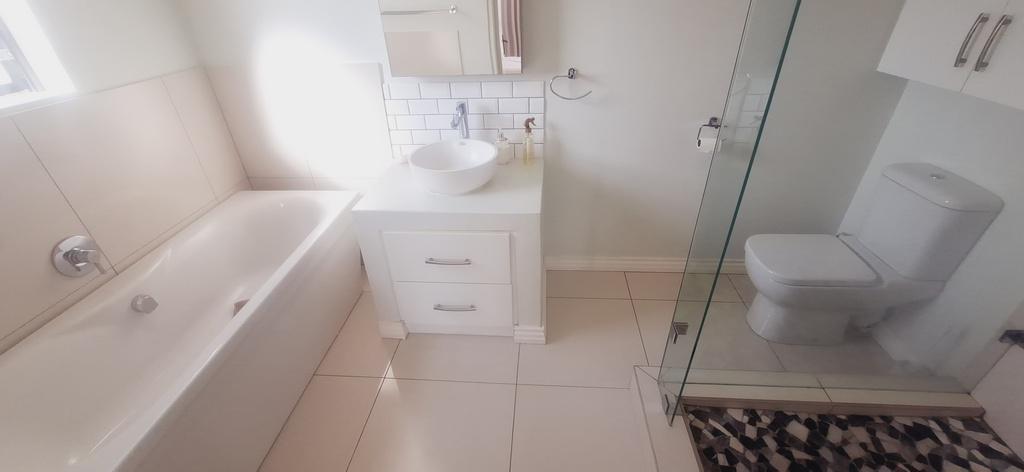 The spacious second bedroom is spacious with ample built-in cupboards. The second bathroom to serve the bedroom.