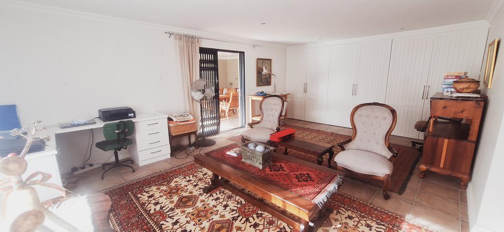 A spacious office with built-in cupboards in conjunction to the entertainment/ sunroom opens to the outdoor entertainment area, making it the ideal work-from-home space.